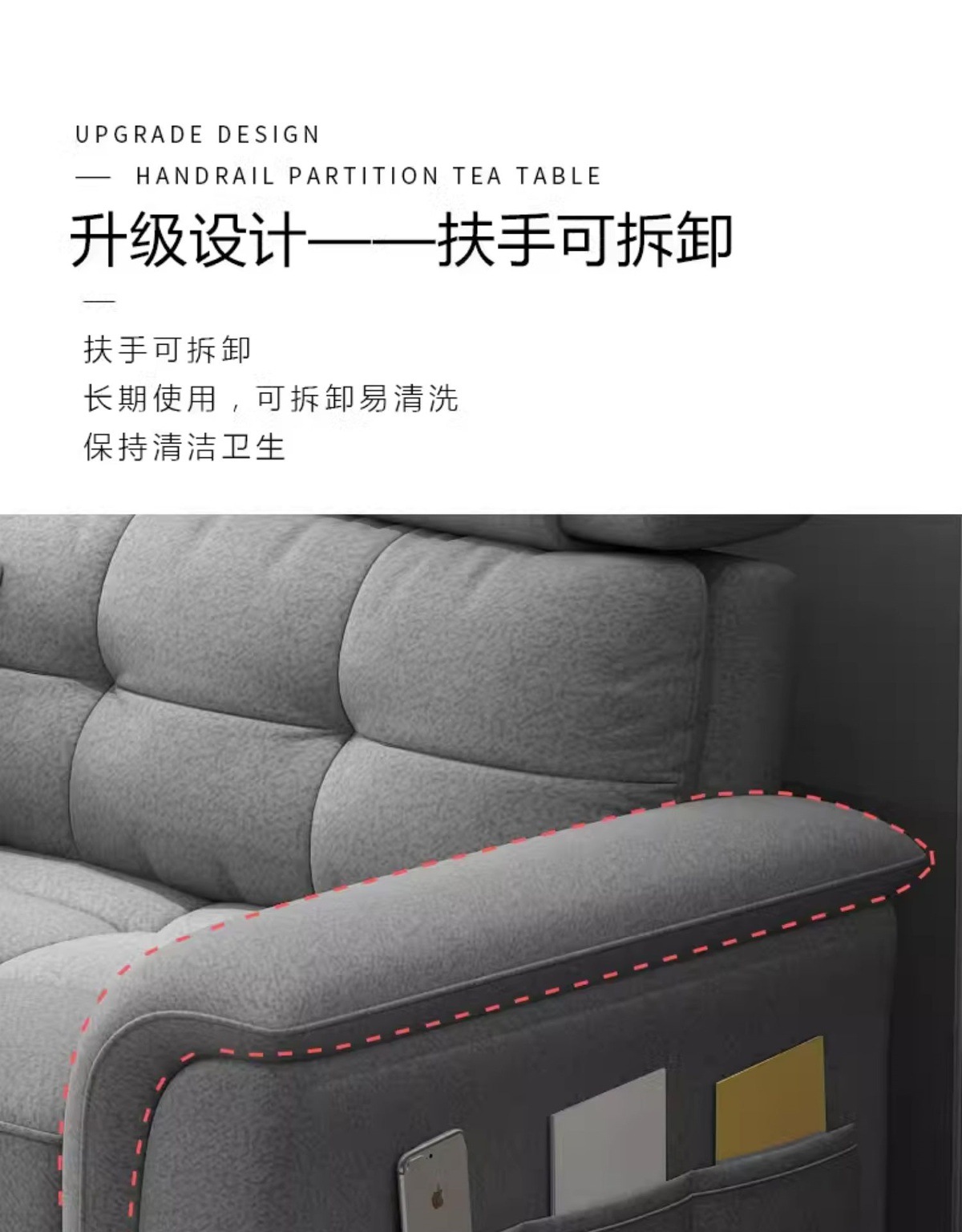 • 2.2m [업그레이드된 수면 라텍스 레이어] 이중 팔걸이가 일직선으로 늘어서 있습니다.