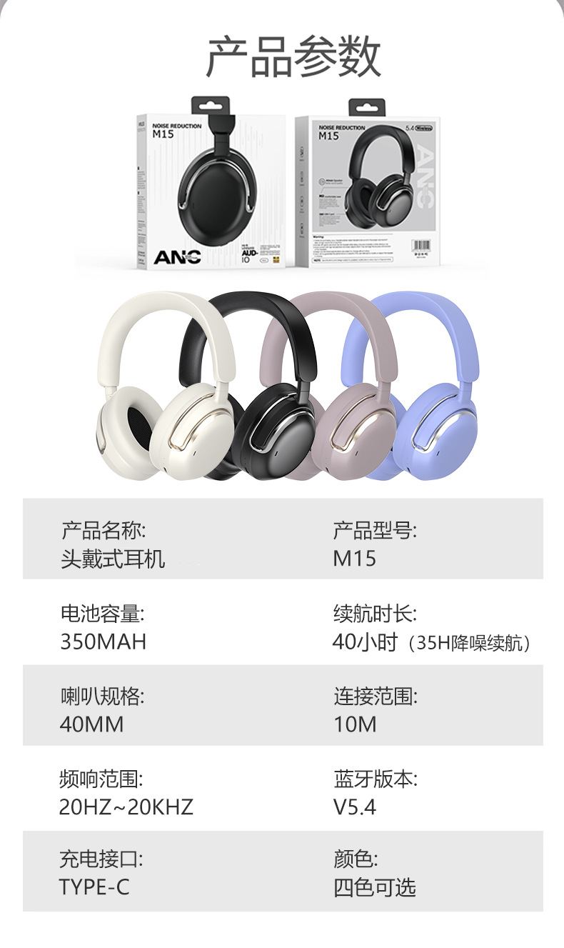 국경을 넘는 신제품 M15 능동 소음 감소 헤드셋 블루투스 무선 스포츠 장시간 배터리 휴대폰 이어폰 공장스토어 가기