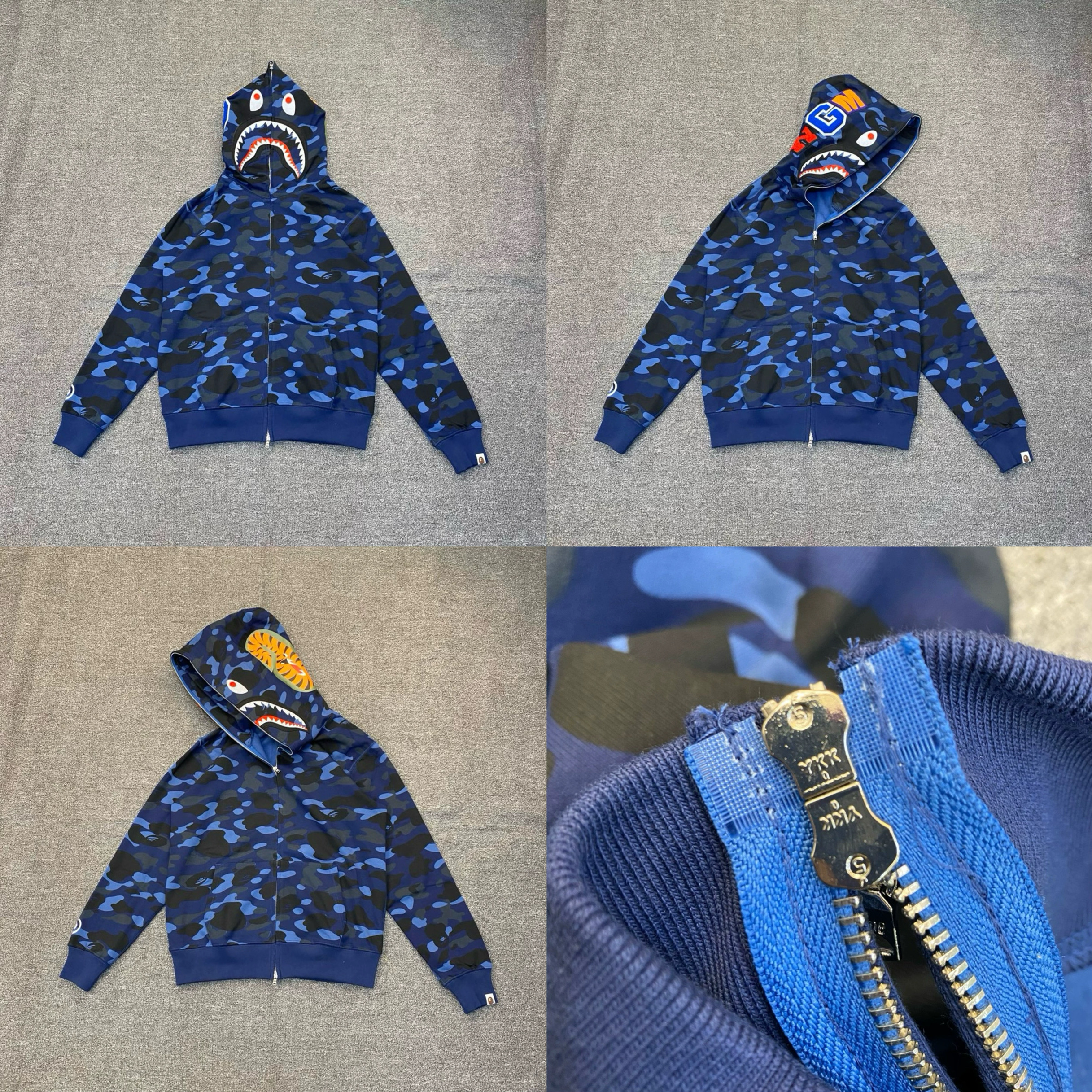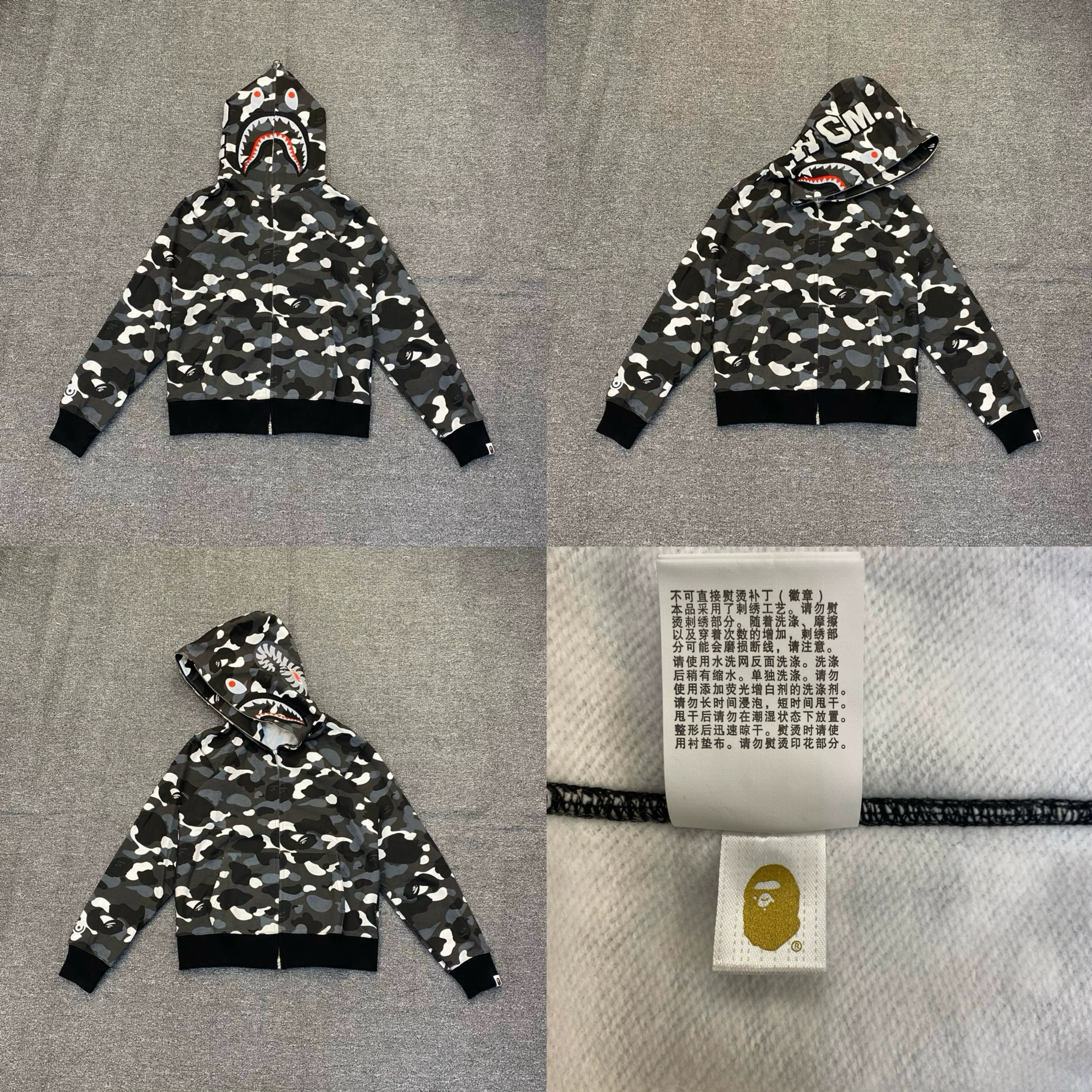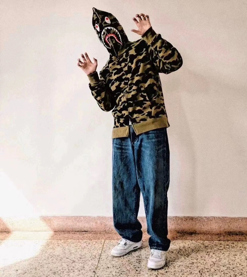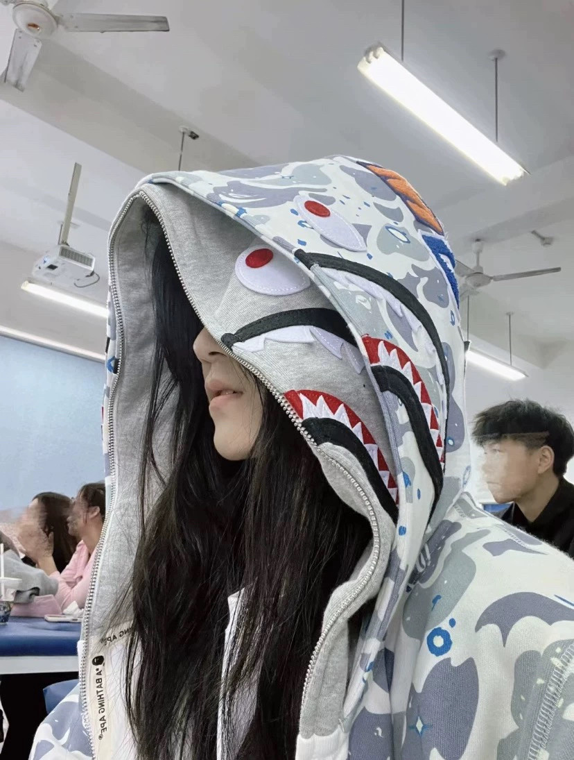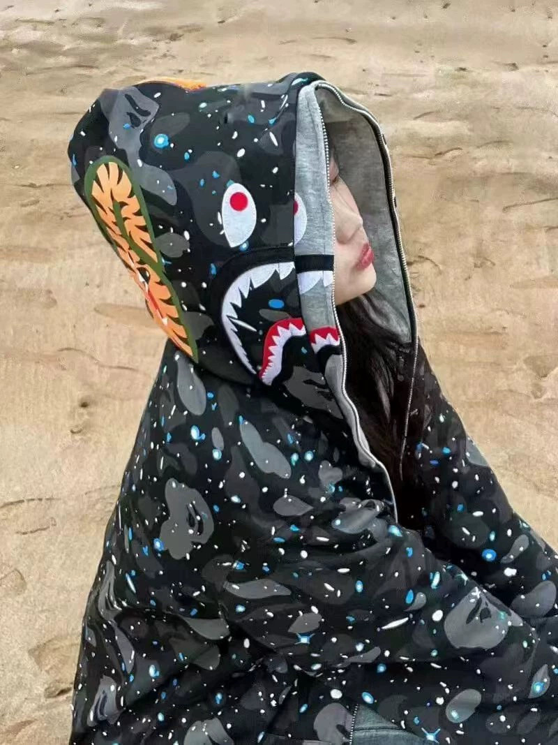 트렌디 브랜드 ins 오리지널 싱글 상어 헤드 카모 지퍼 후드 자켓 캐주얼 루즈 커플 스웨트 남성 카디건 2025스토어 가기
