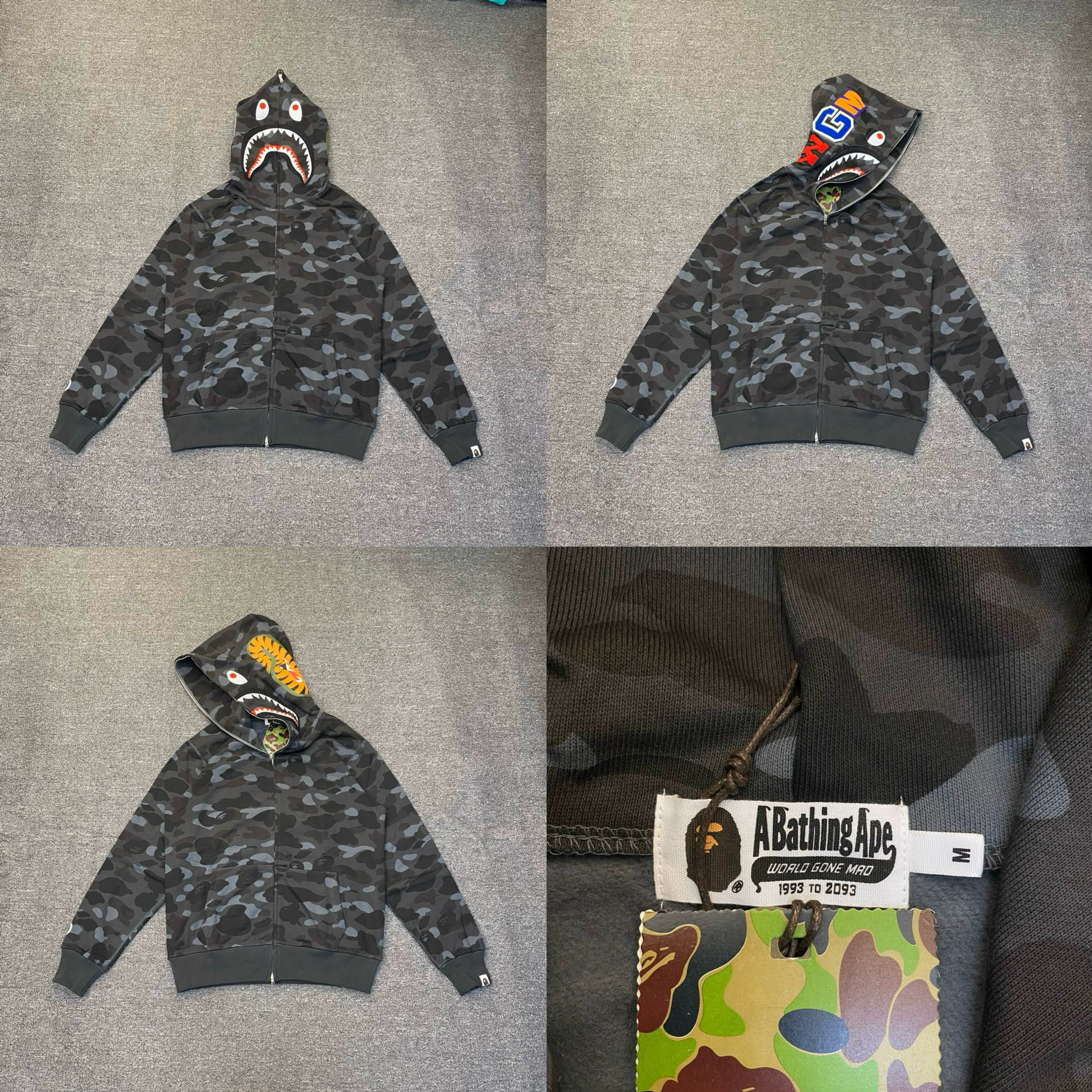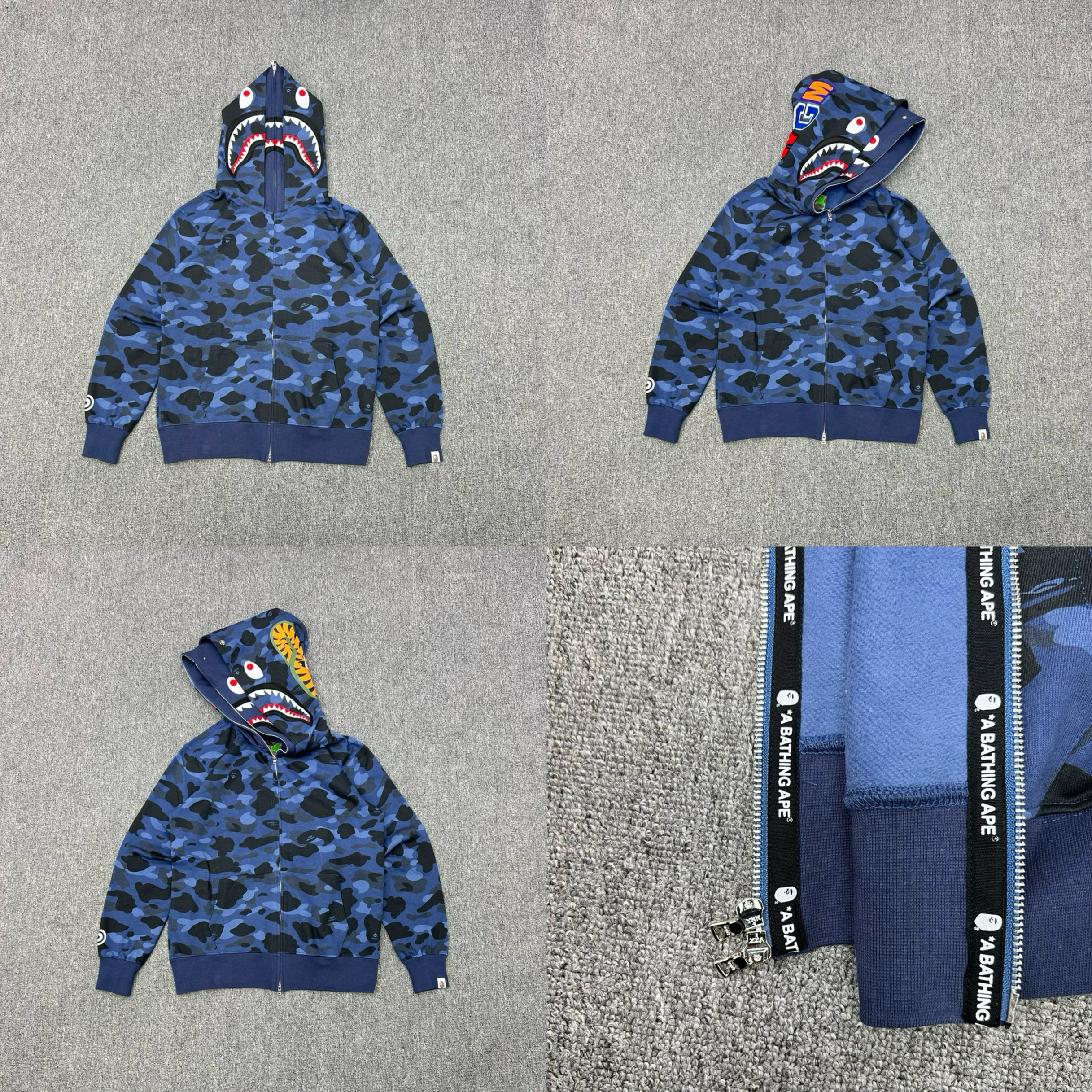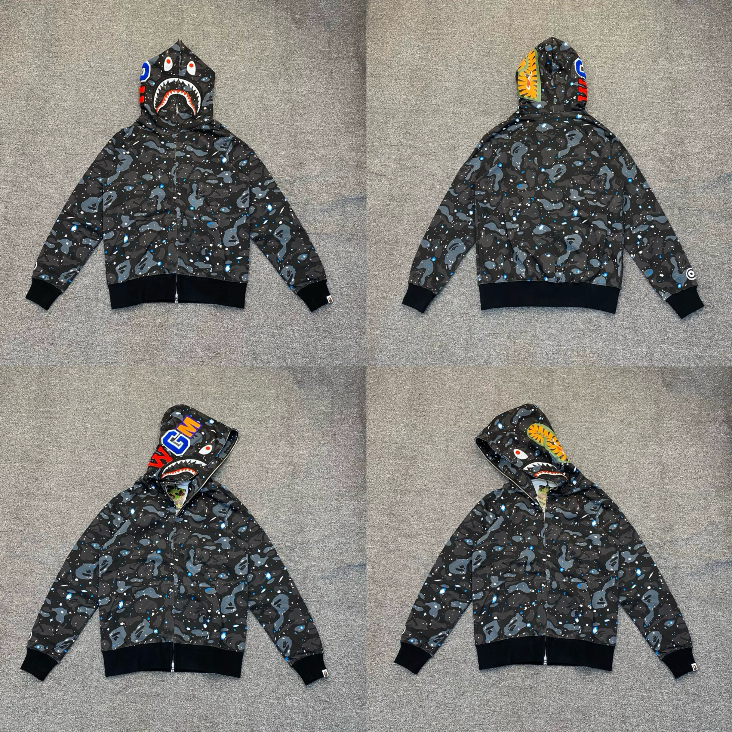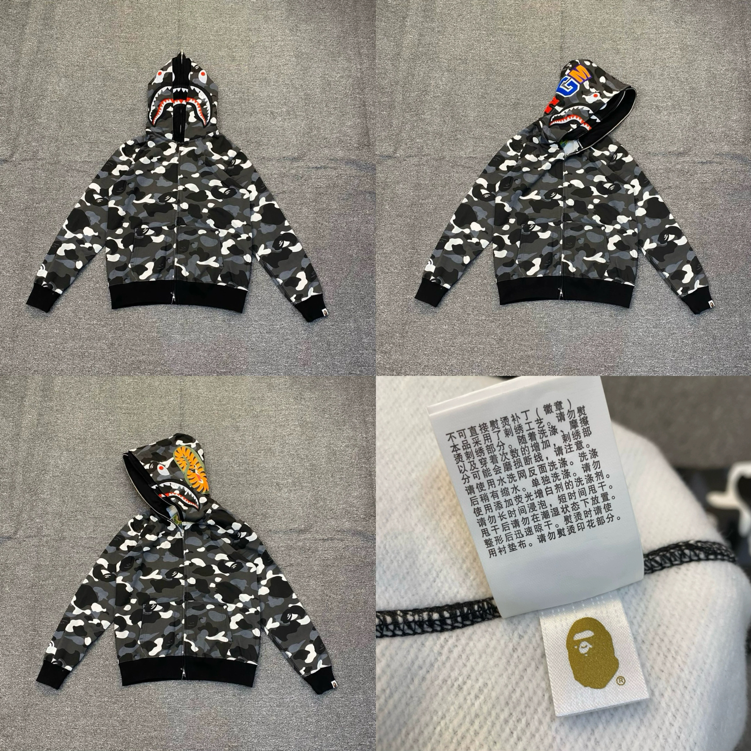 트렌디 브랜드 ins 오리지널 싱글 상어 헤드 카모 지퍼 후드 자켓 캐주얼 루즈 커플 스웨트 남성 카디건 2025스토어 가기