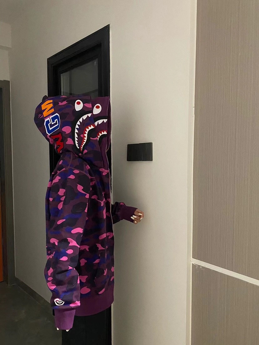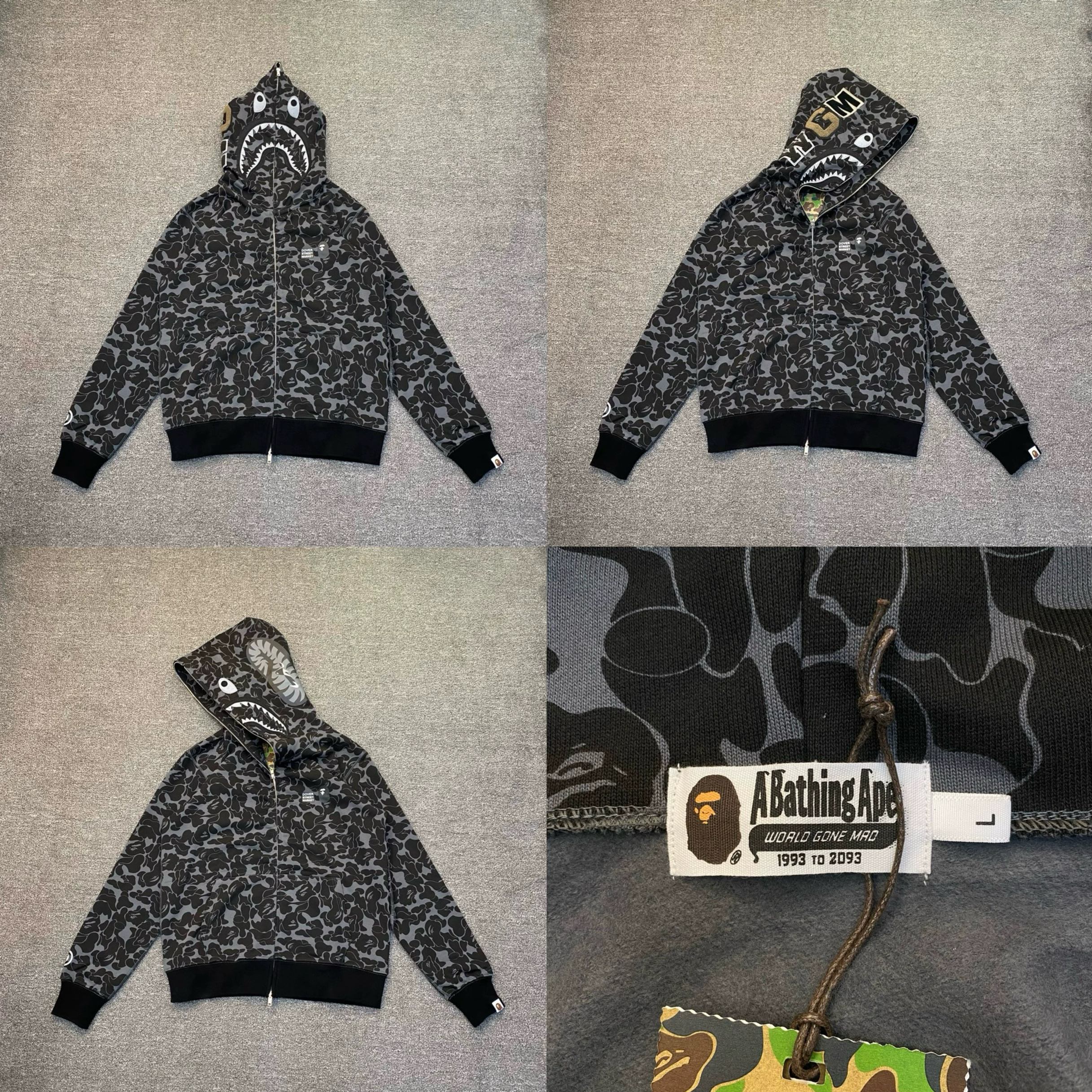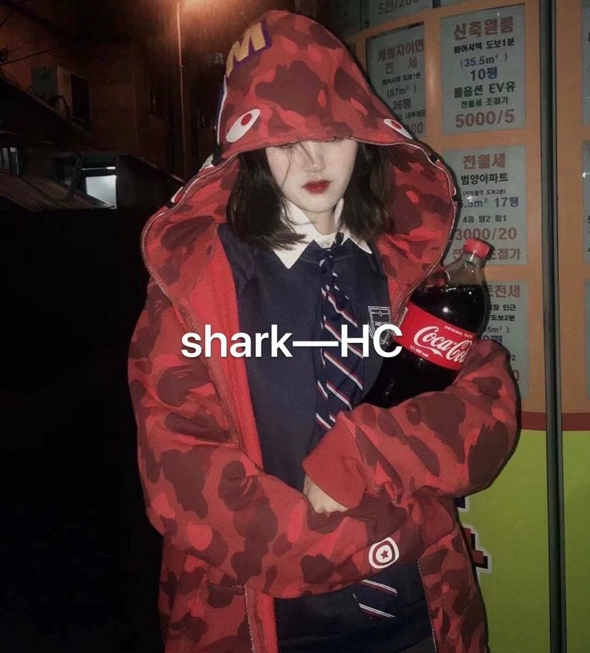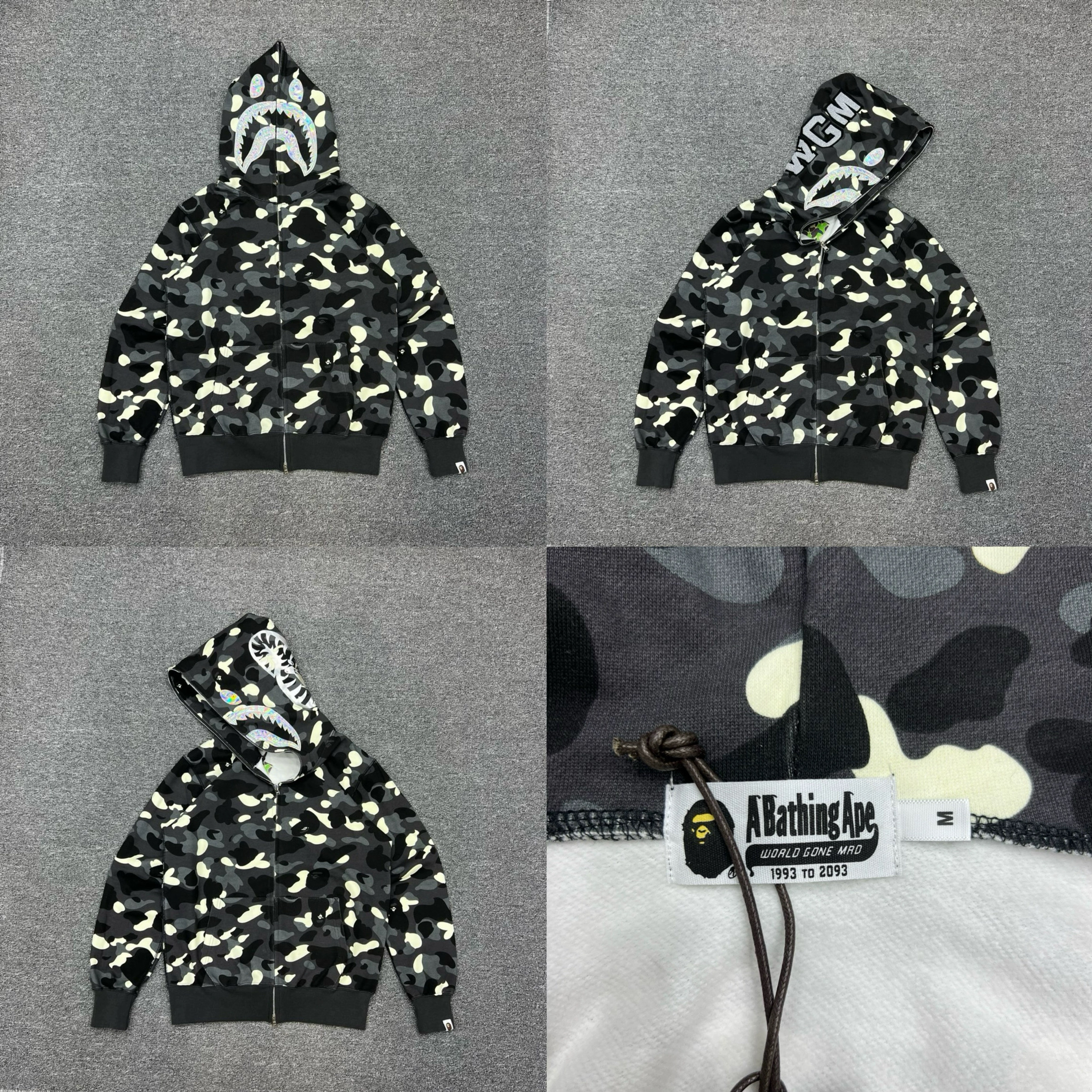 트렌디 브랜드 ins 오리지널 싱글 상어 헤드 카모 지퍼 후드 자켓 캐주얼 루즈 커플 스웨트 남성 카디건 2025스토어 가기