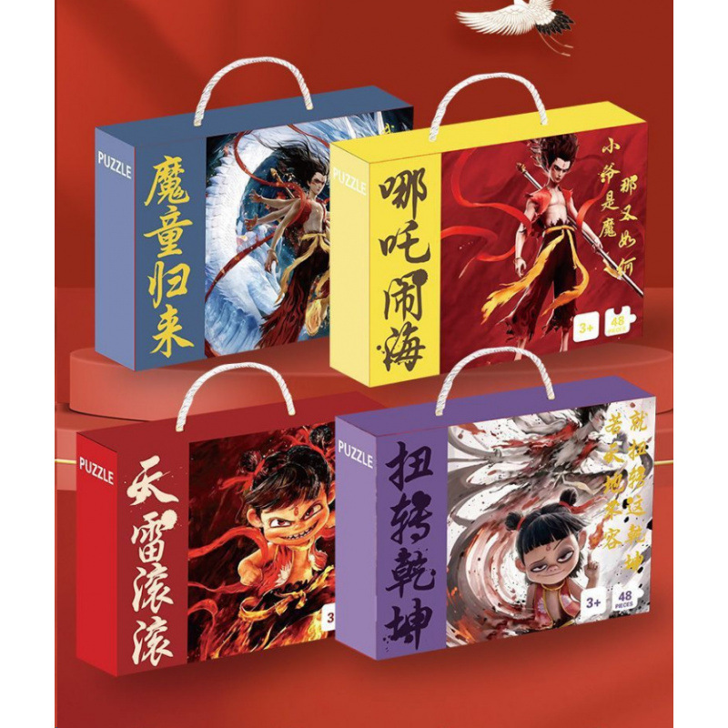 새로운 Nezha 2 마법의 아기 바다 퍼즐 480 조각 어린이 소년과 소녀 조기 교육 장난감 휴대용 선물 상자 선물 3 세 +스토어 가기
