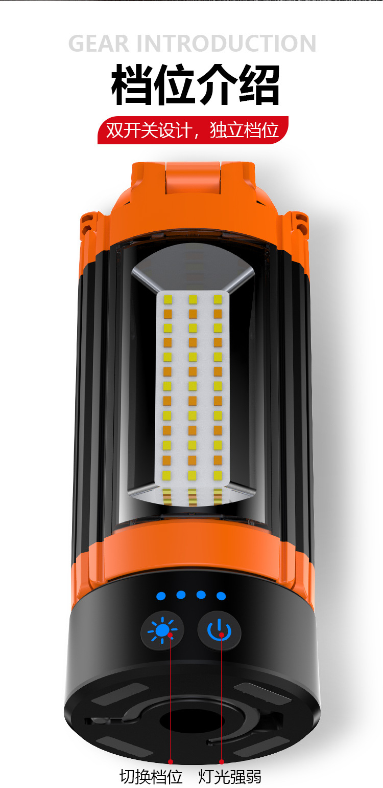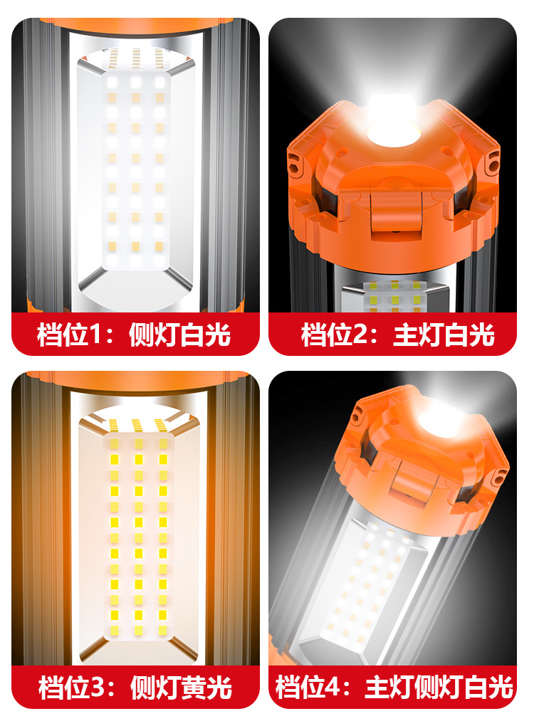 5、灯光亮度可调节,四种档位可调节:侧灯白光 —主灯白光—侧灯黄光—主灯侧灯白光