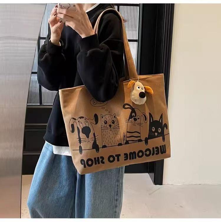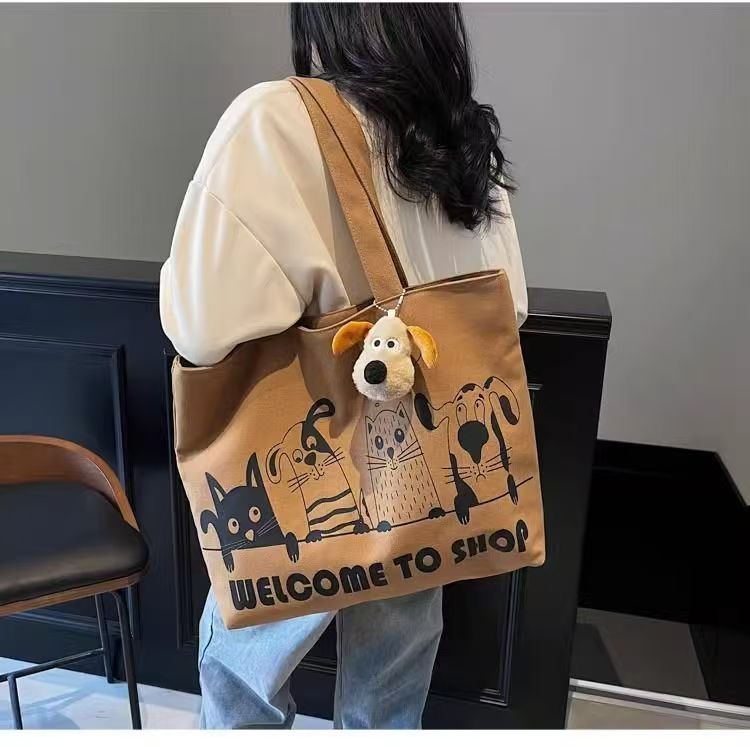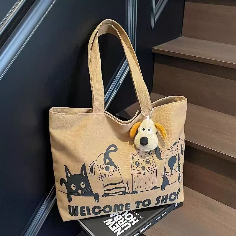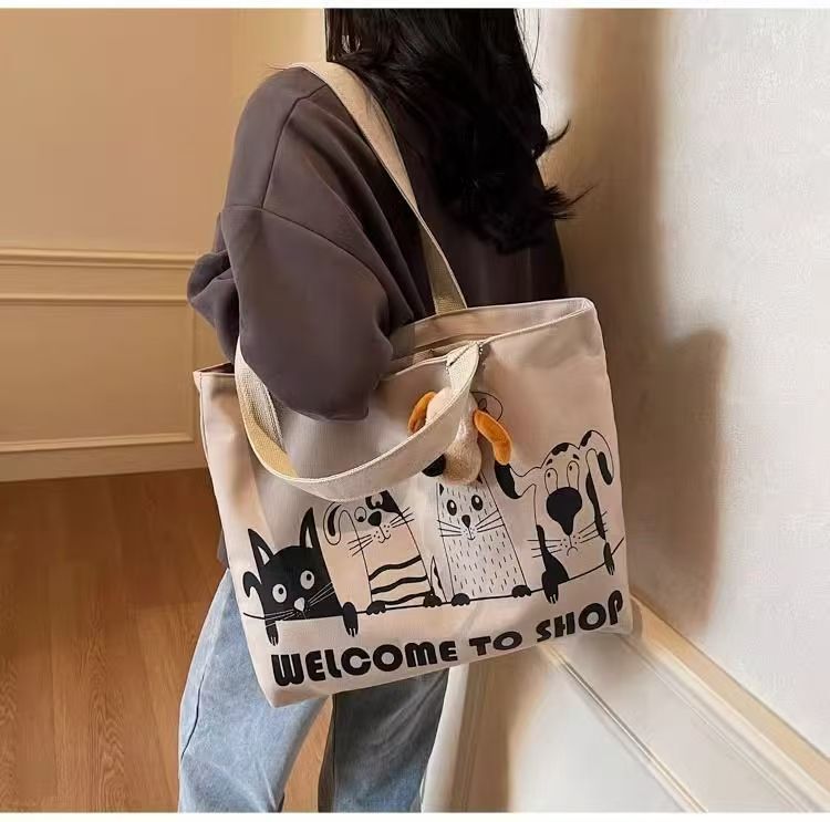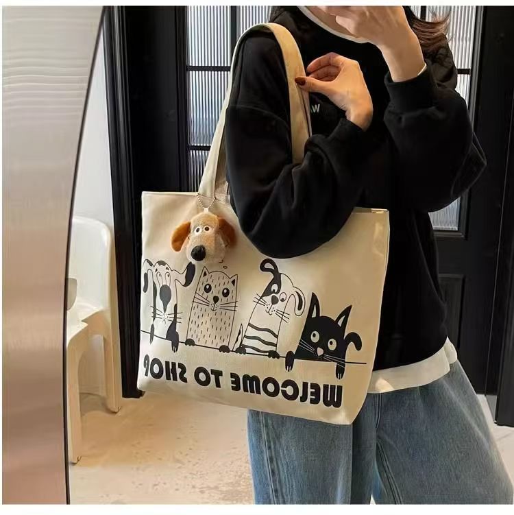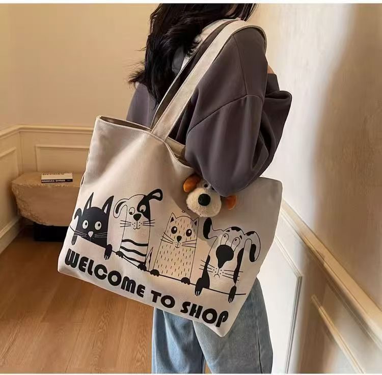 대용량 만화 캔버스 가방 여성의 새로운 캐주얼 다목적 어깨 가방 학생 클래스 휴대용 통근 토트 백스토어 가기