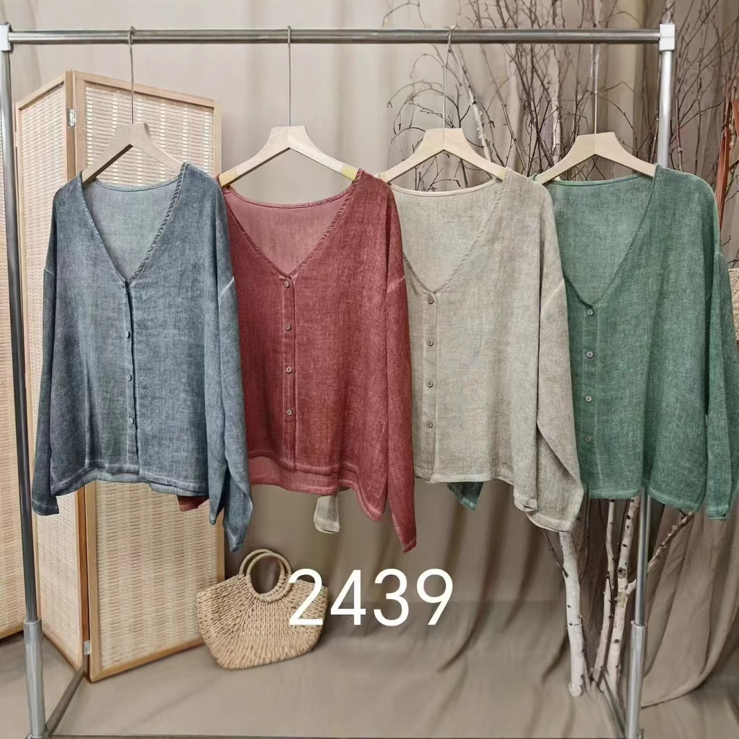 튀긴 모시 셔츠 2025 봄 여름 신작 레트로 디스트레스드 브이넥 긴팔 가디건 루즈하고 활용도가 높은 여성 상의스토어 가기