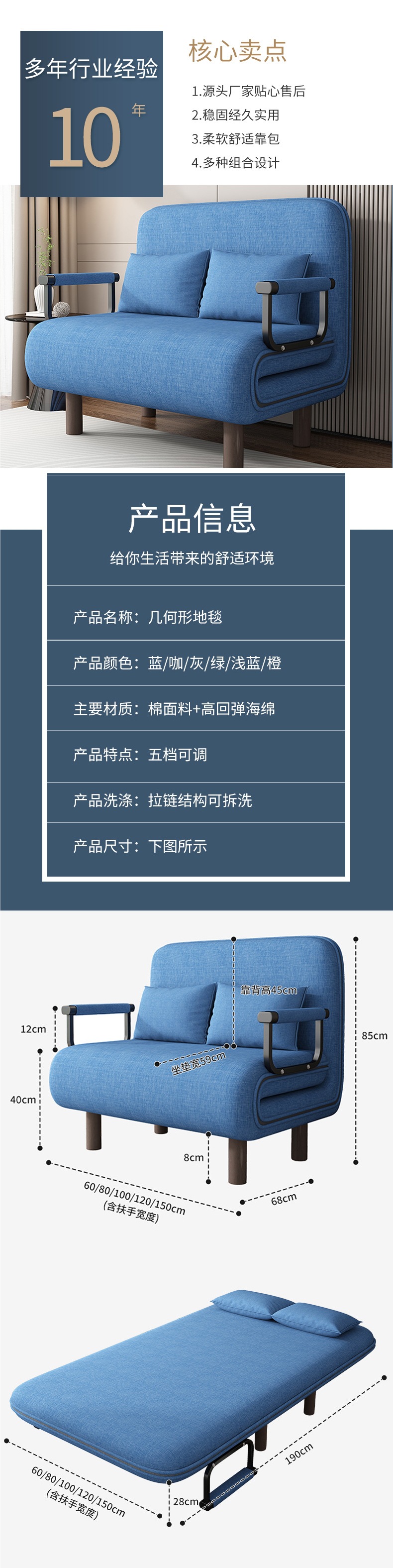 사무실 점심시간을 위한 레이지 소파 베드, 접이식 침대, 다양한 색상의 리클라이닝 및 앉을 수 있는 소파 베드, 패셔너블하고 심플한 소파