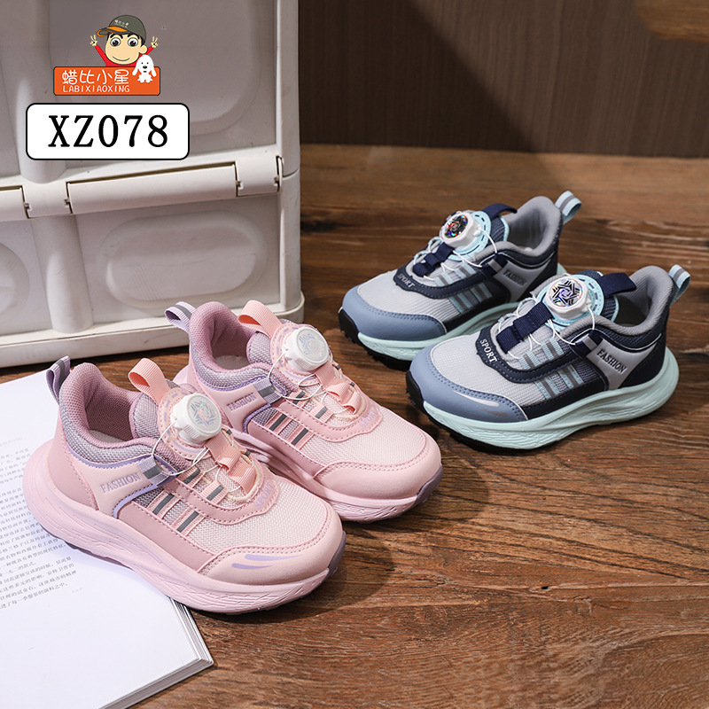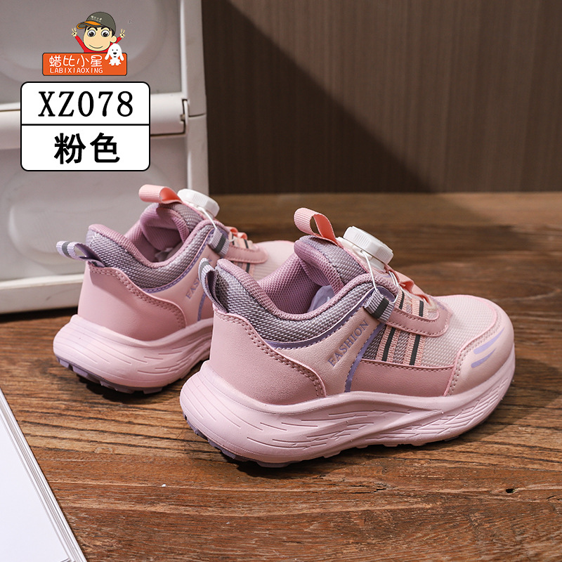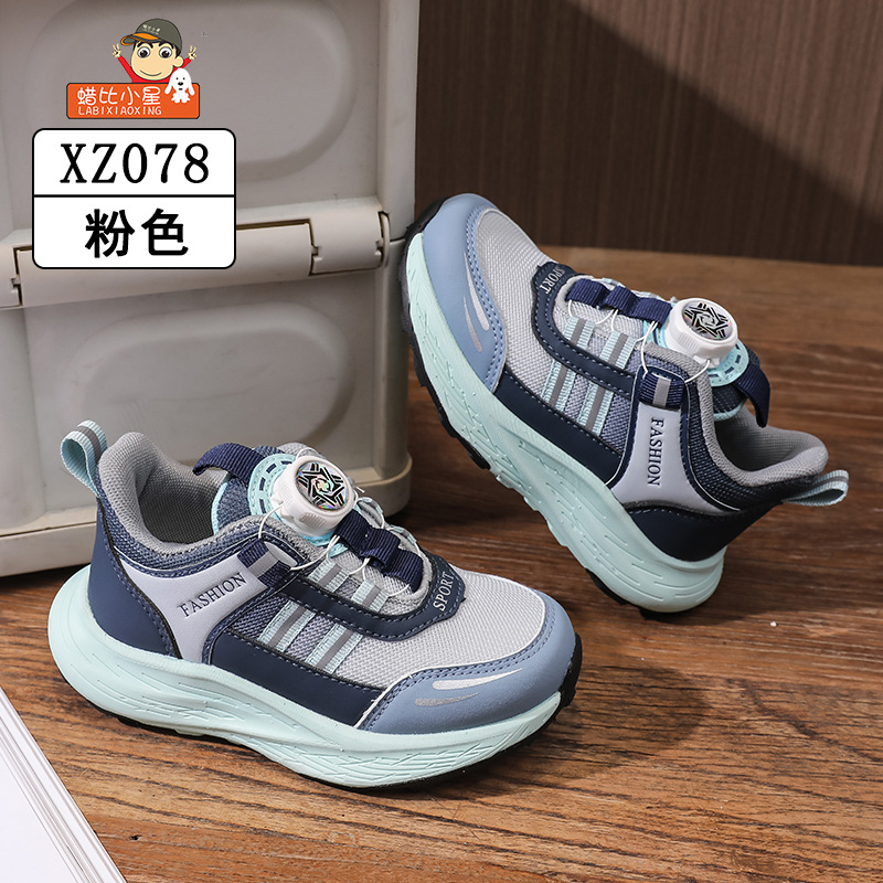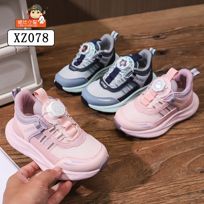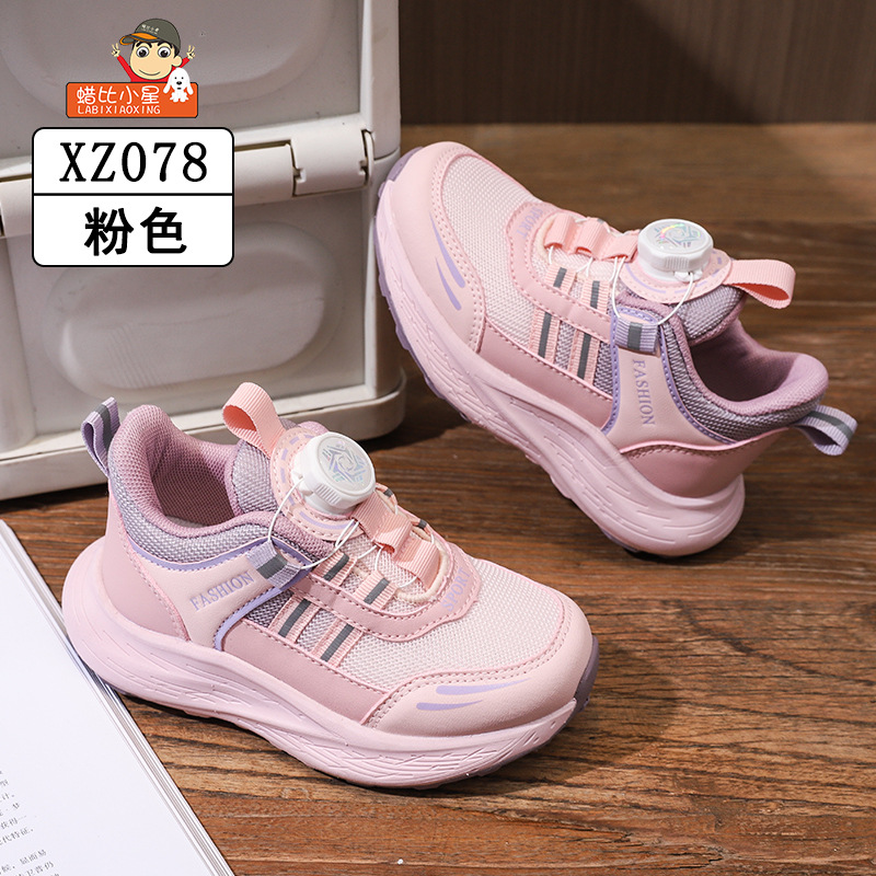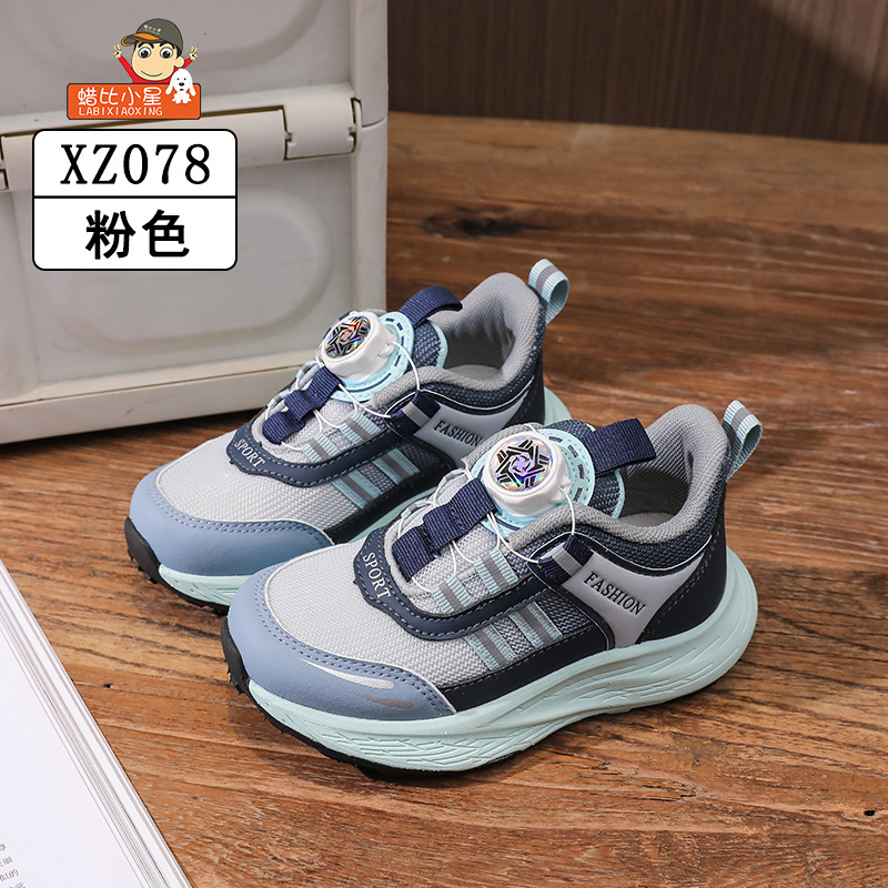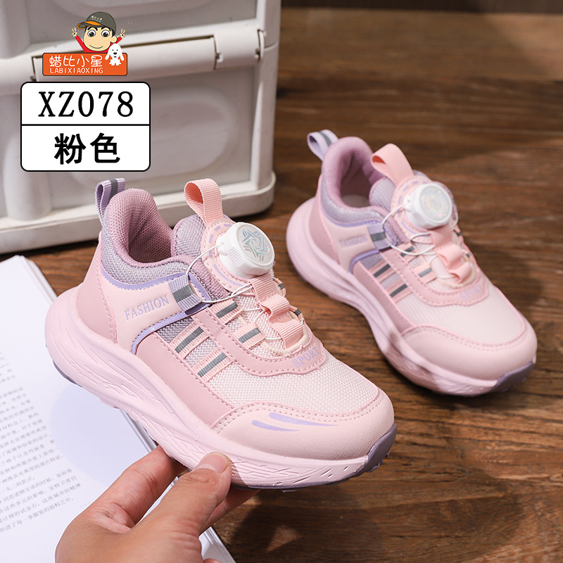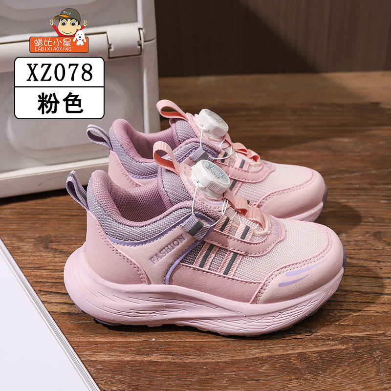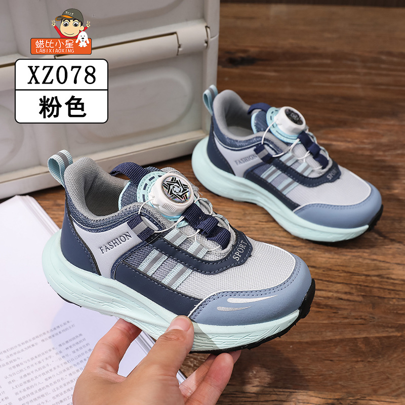 Wabi Xiaoxing 콜드 스틱 어린이 스포츠 가벼운 운동화 봄과 가을 소년 슈퍼 섬유 회전 버튼 소녀 캐주얼 어린이 신발
