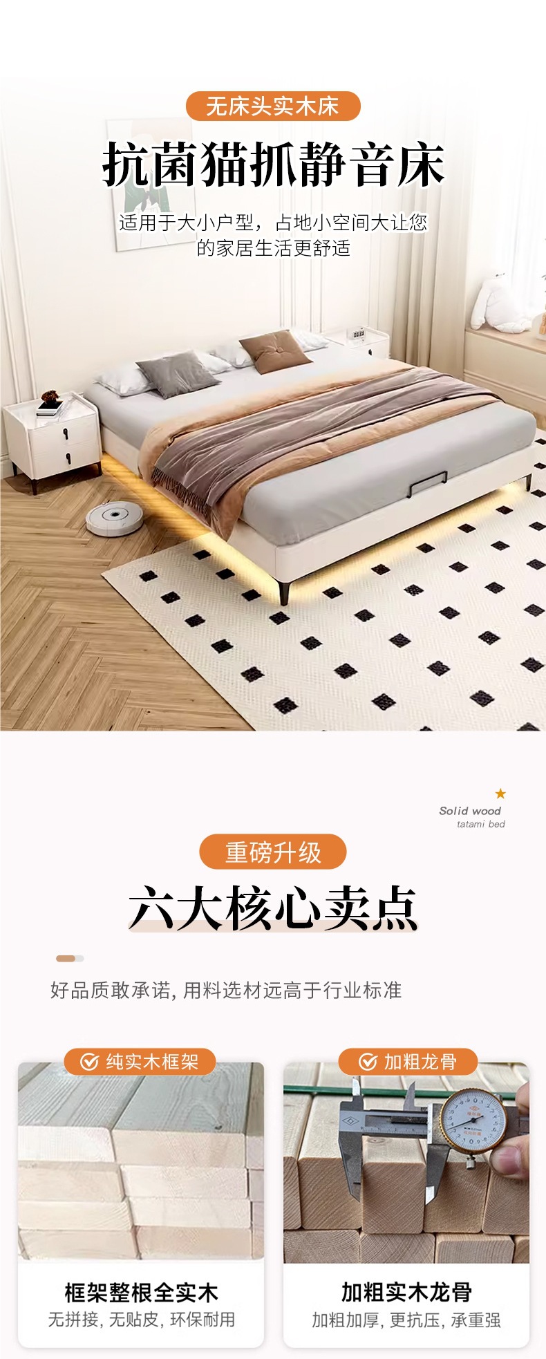 모든 원목 다다미 침대 없음 침대 프레임 싱글 및 더블 낮은 침대 1.5m 침실 중소형 침대스토어 가기