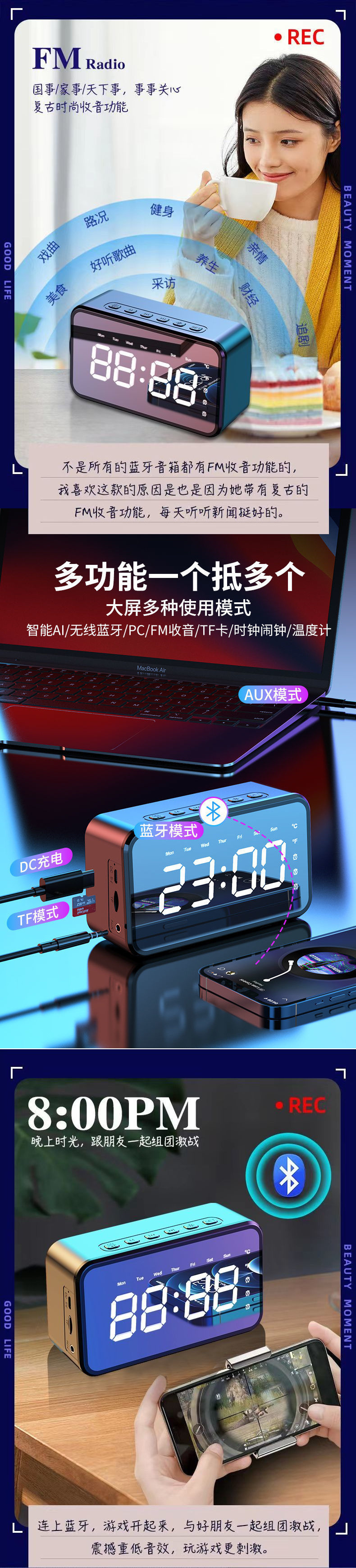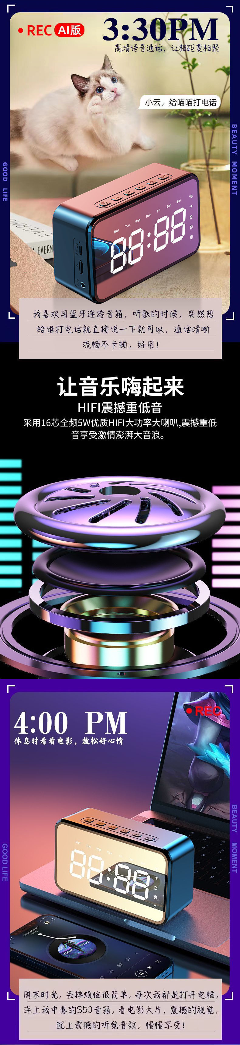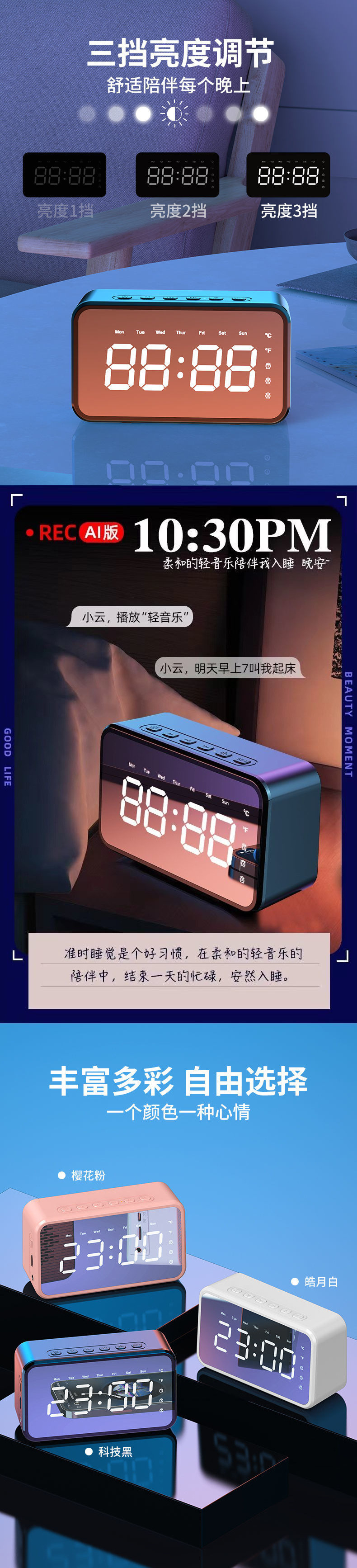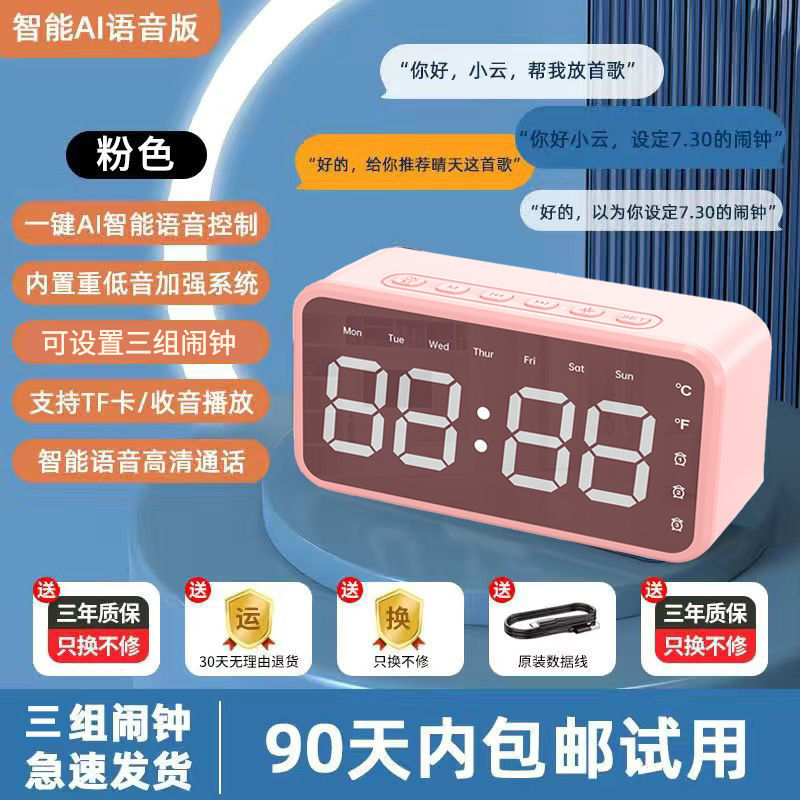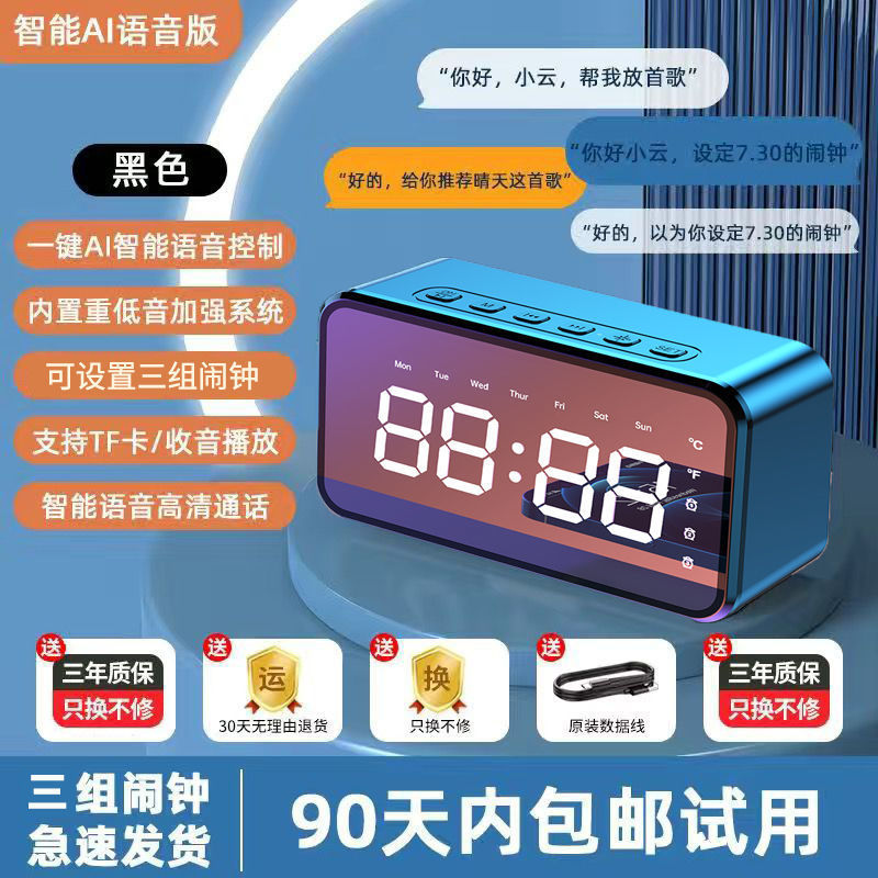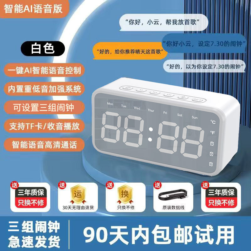 AI 스마트 블루투스 스피커 소형 스피커 미니 서브우퍼 알람 시계 학생 알람 시계 웨이크 업 라디오 생일 선물