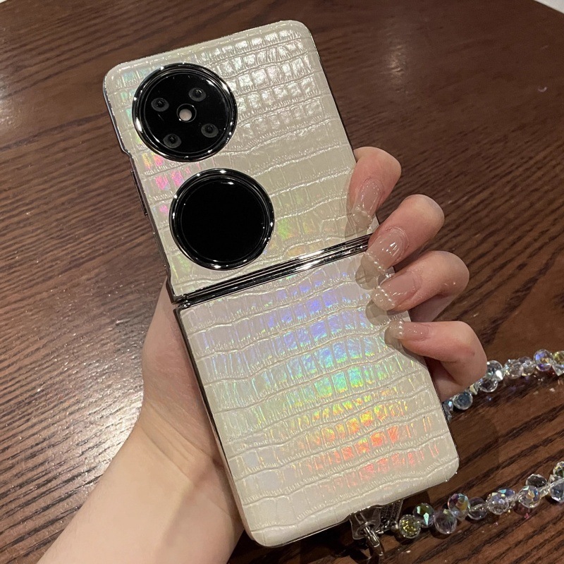 Huawei pocke 80% off 스택 스크린 휴대폰 케이스 P50Pocket 그라데이션 대나무 핑크 행잉 체인에 적합한 트렌디한 브랜드 악어 패턴스토어 가기