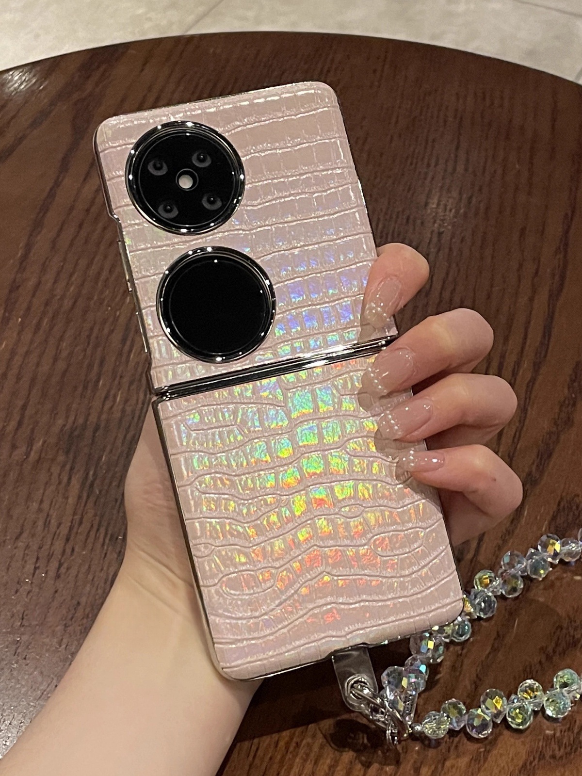 Huawei pocke 80% off 스택 스크린 휴대폰 케이스 P50Pocket 그라데이션 대나무 핑크 행잉 체인에 적합한 트렌디한 브랜드 악어 패턴