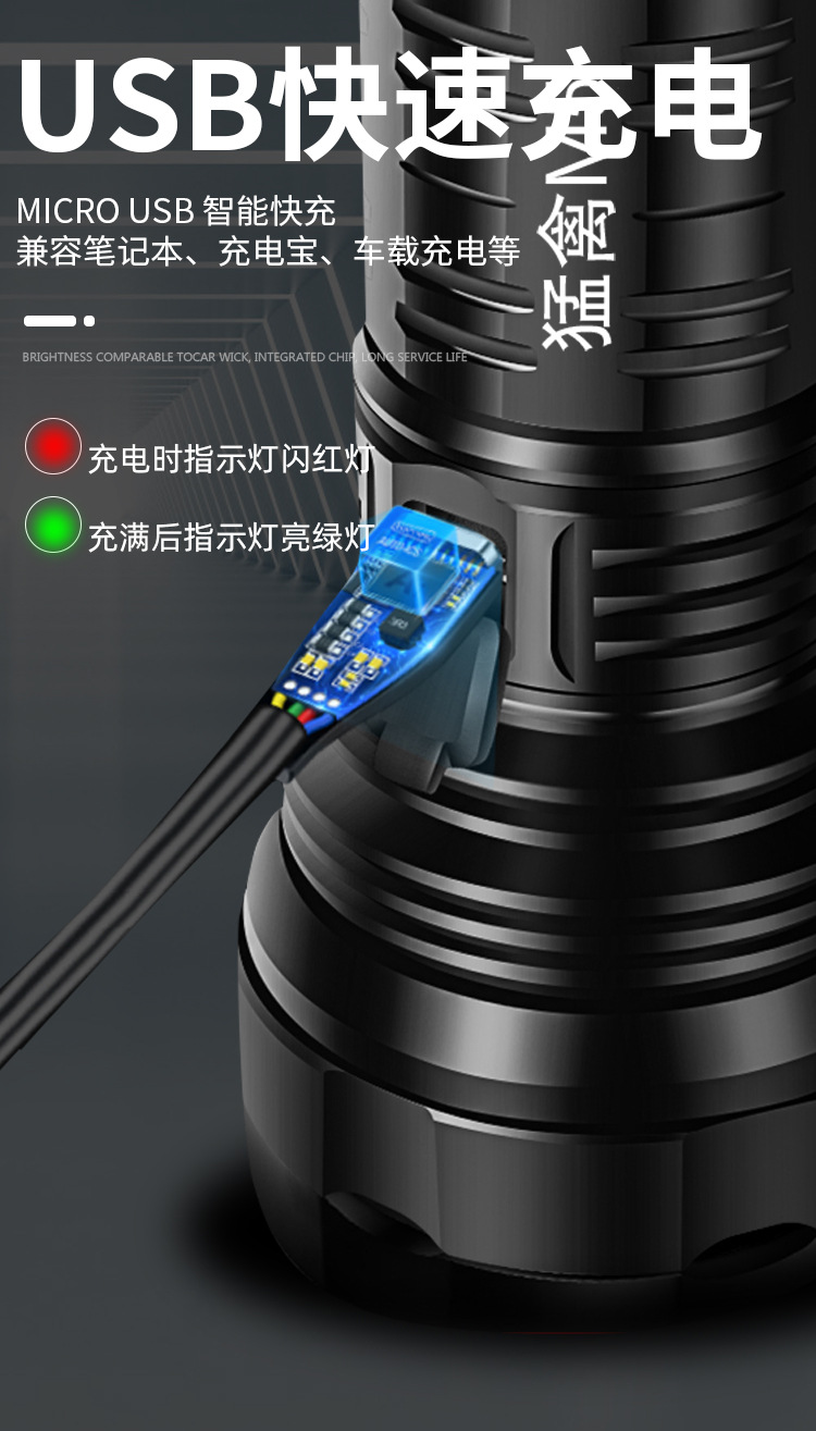 국경 간 인기 판매 SST40 밝은 손전등 USB 충전식 알루미늄 합금 고출력 스포트라이트 방수 LED 조명스토어 가기