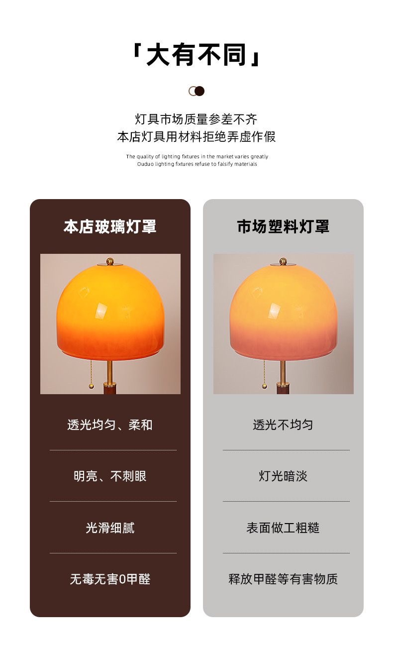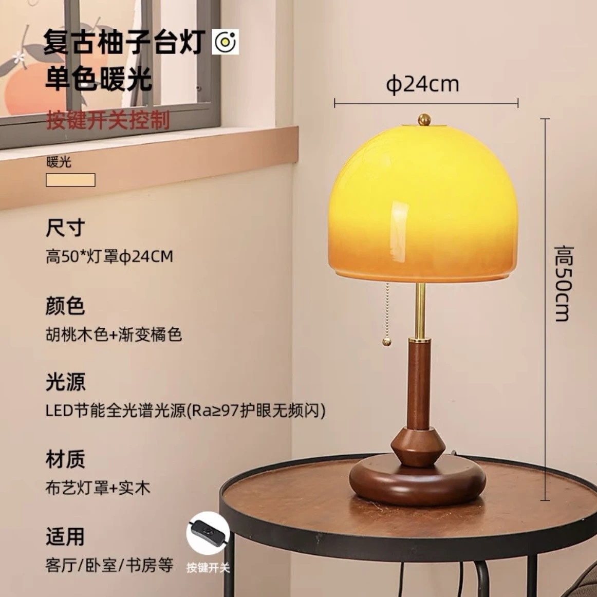 • FS 호두나무 원목 테이블 램프: 유리 커버
