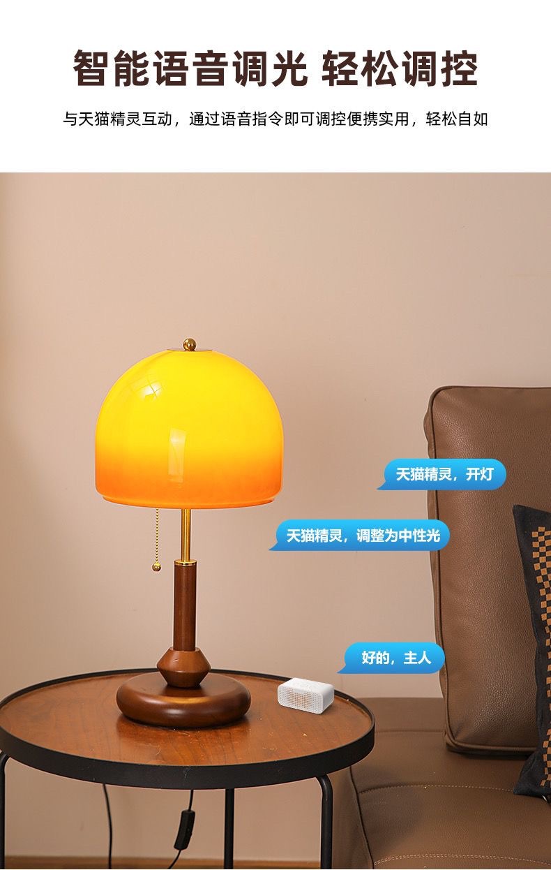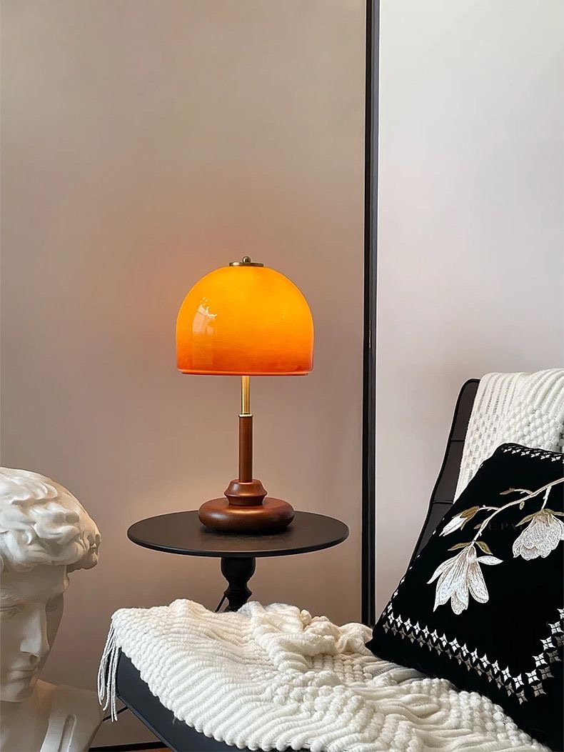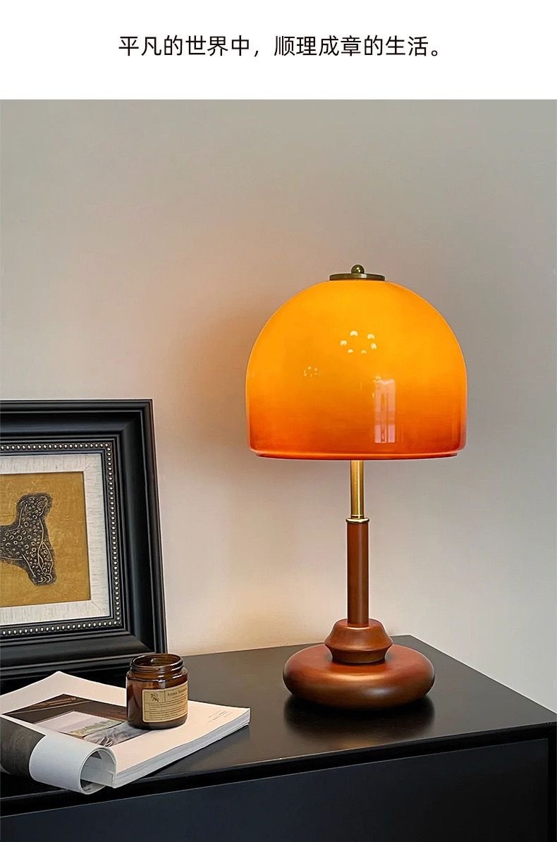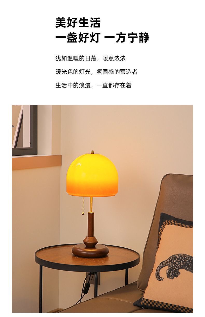 버섯 테이블 램프 침실 머리맡 램프 복고풍 바우하우스 올드 상하이 연구 장식 장식품 분위기 램프 단단한 나무 램프스토어 가기