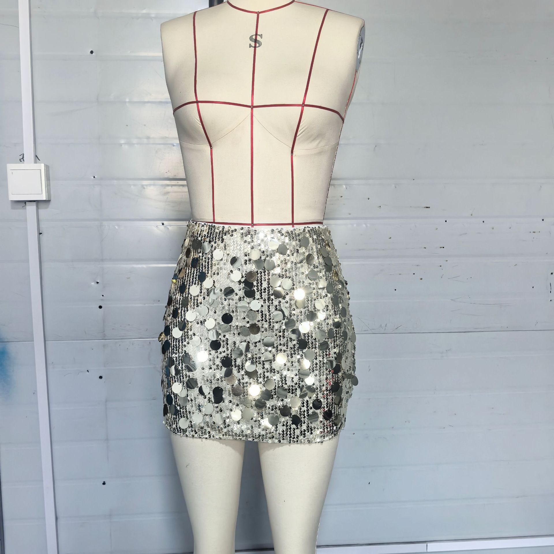 유럽과 미국 스타일의 새로운 대외 무역 국경 스커트 섹시한 반사 스팽글 A 라인 하프 길이 엉덩이 덮는 뜨거운 소녀 울트라 짧은 미니 스커트스토어 가기