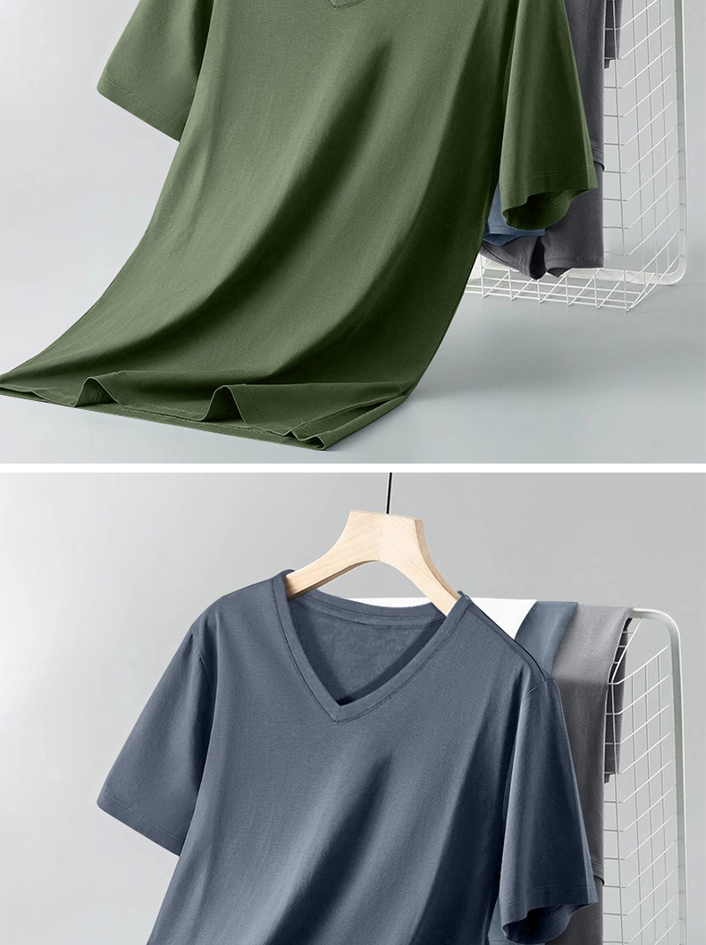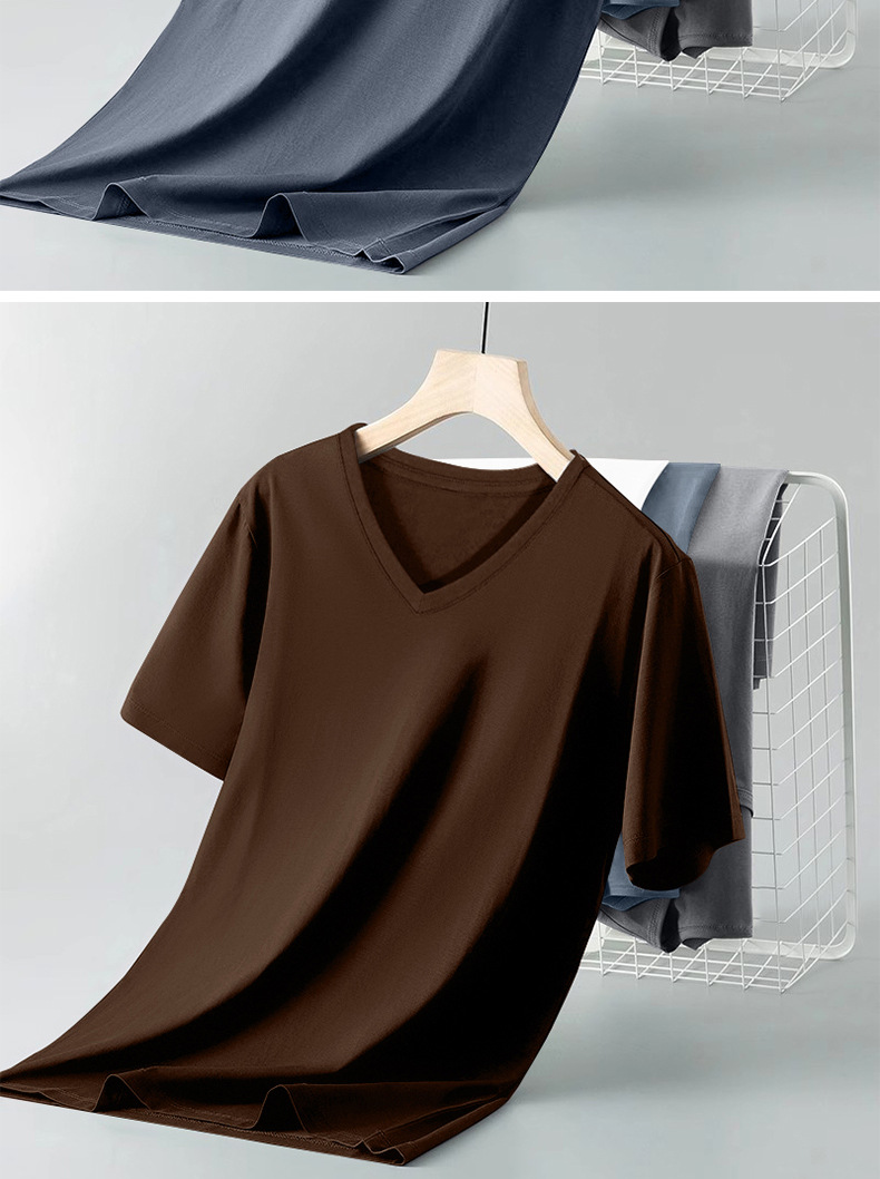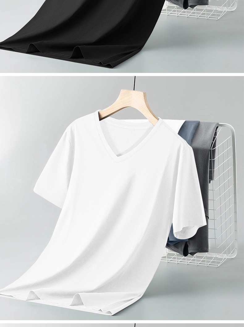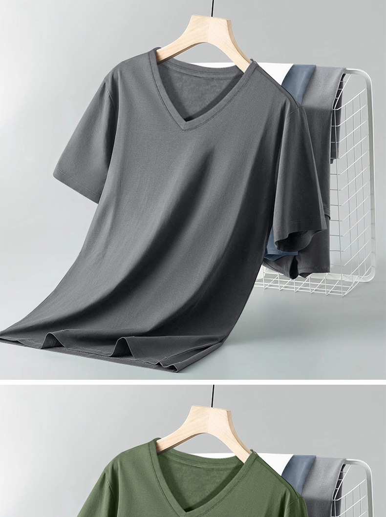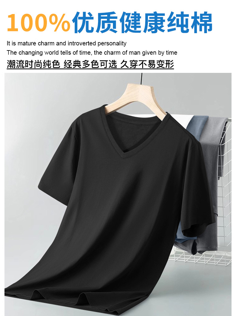 순면 반팔 남성 여름 신작 슬림하고 다재다능한 솔리드 컬러 트렌디한 젊은 및 중년 V 넥 이너 레이어링 셔츠 탑스토어 가기