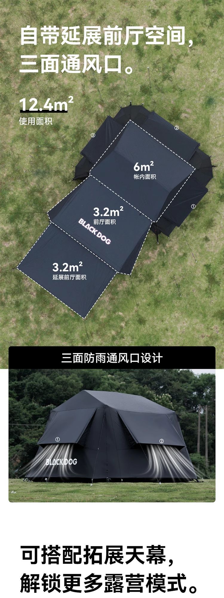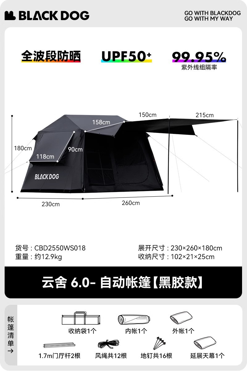 Blackdog Black Dog Yunshe 6.0 플래그십 비닐 빠른 오픈 텐트 야외 캠핑 캠핑 휴대용 밤새 장비