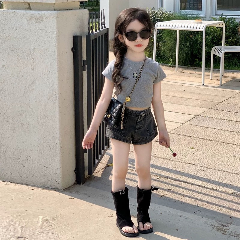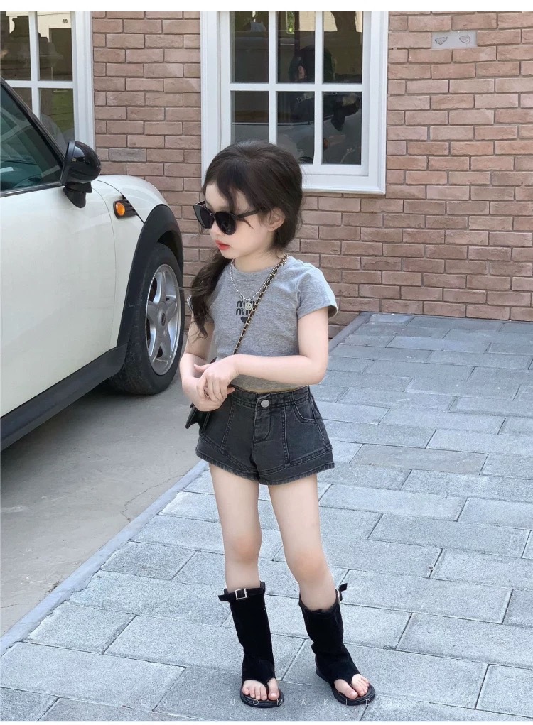 • 그레이 티셔츠 + 데님 반바지