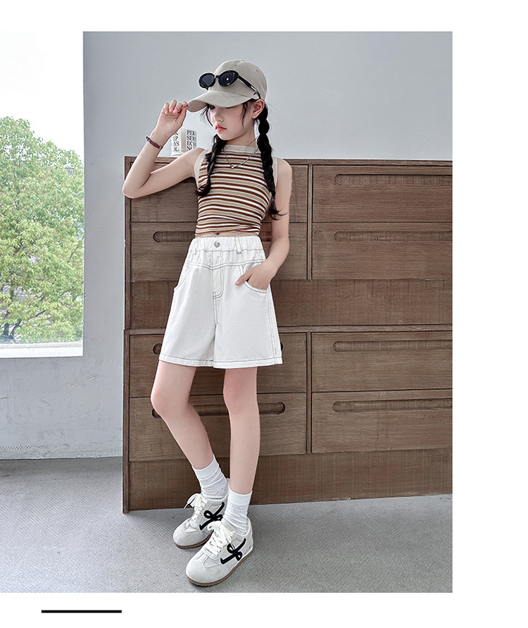 여아 순면 반바지, 여름 중대형 아동 패션, 여아용 다용도 5부 바지, 달콤하고 시원한 캐주얼 중간 바지, 국경 간 도매