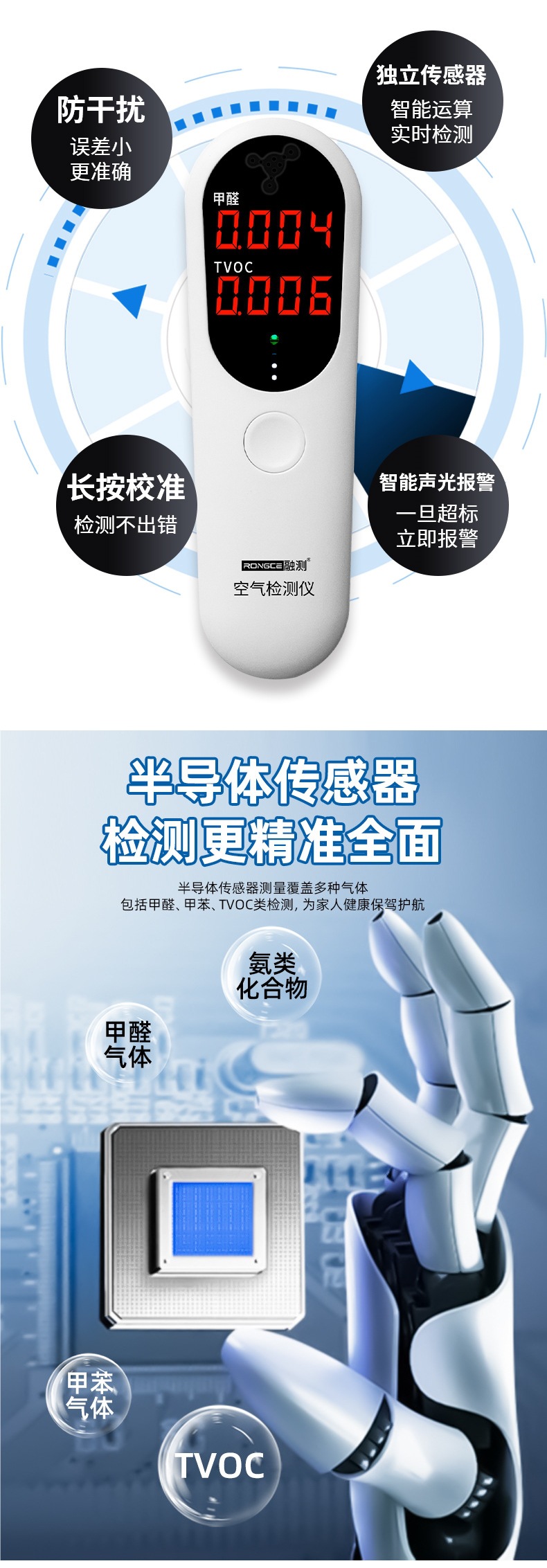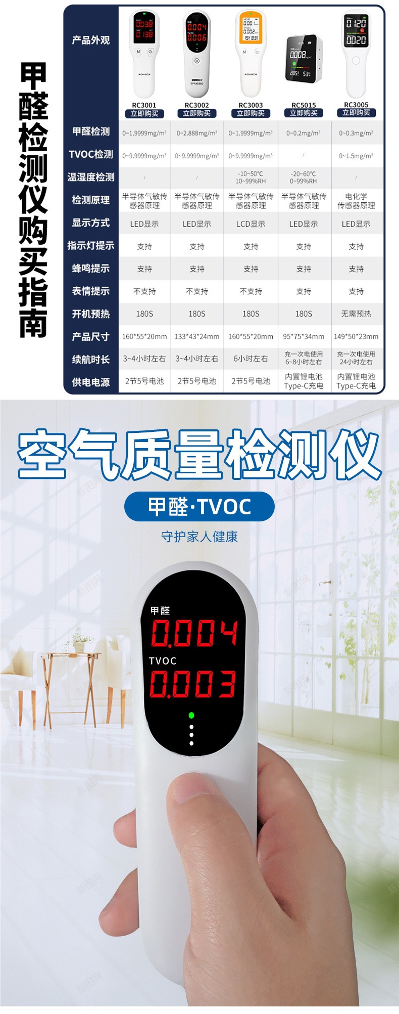 • RC3002 포름알데히드 tvoc 검출기(일반 배터리 포함)