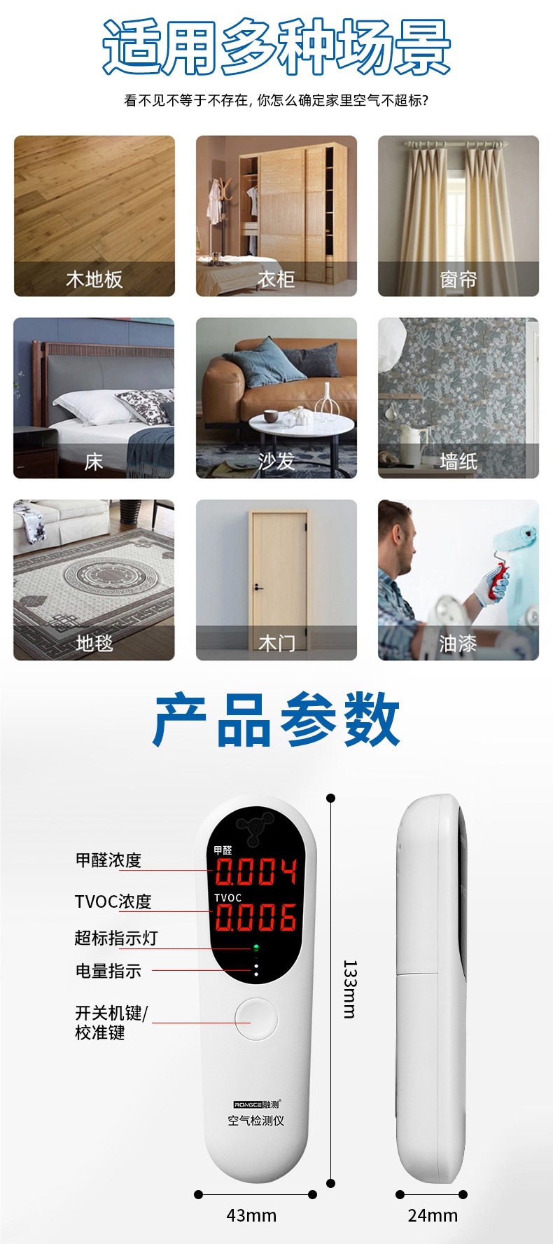 공기 품질 감지기 포름알데히드 자체 테스트 장비 실내 가정용 전문 포름알데히드 감지기 제조 업체 도매