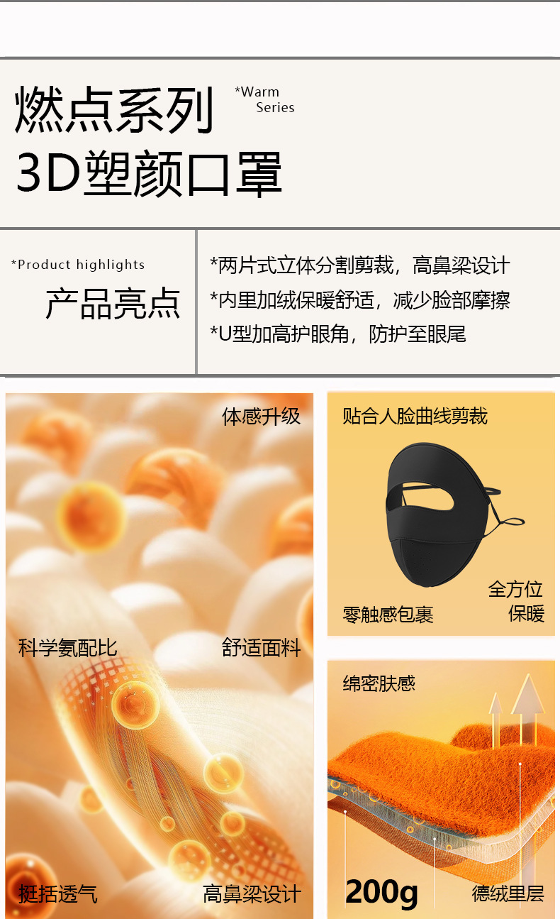 새로운 물고기뼈 모양 보온 마스크, 가을 겨울 방한 방풍 야외용 전면 보호 사이클링 마스크, 벨벳 안감 보온 마스크스토어 가기