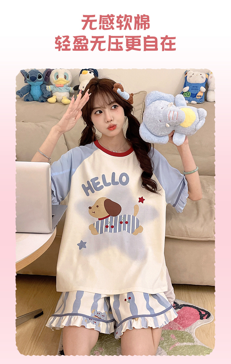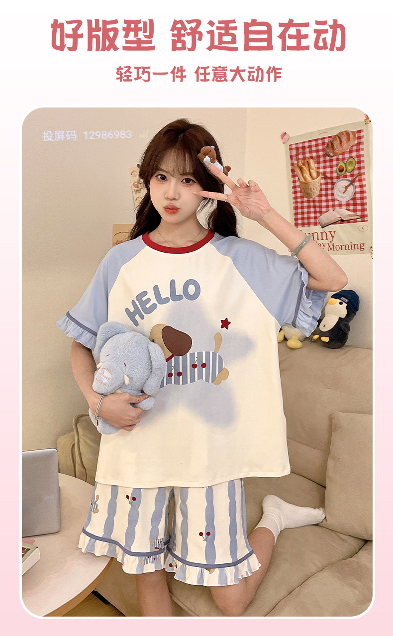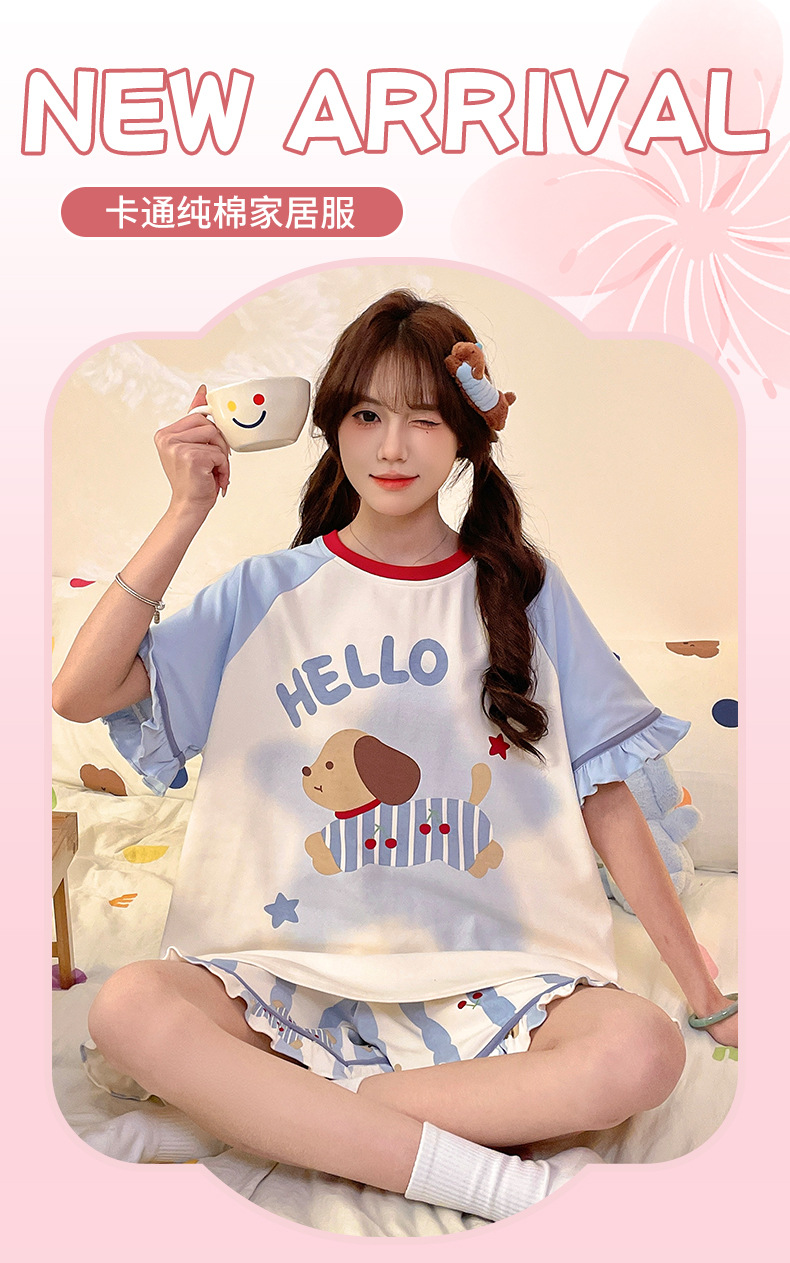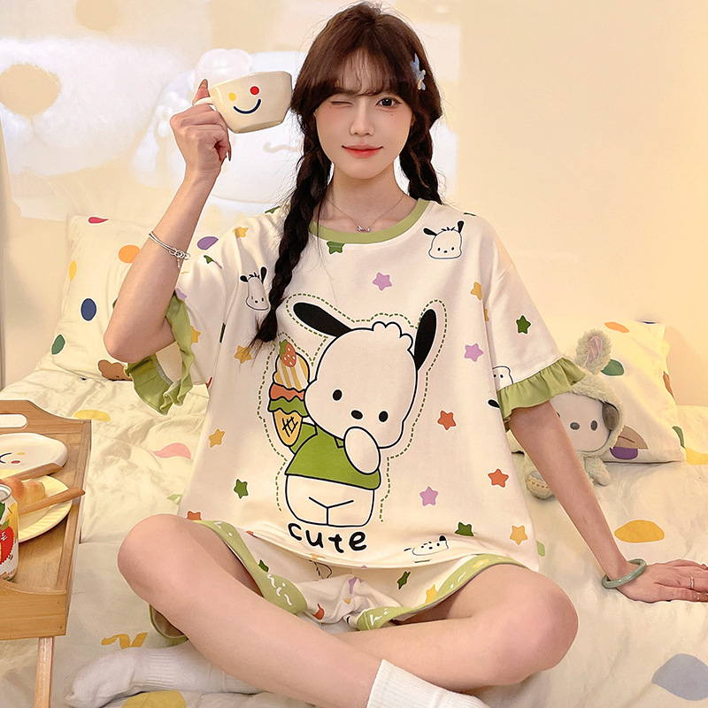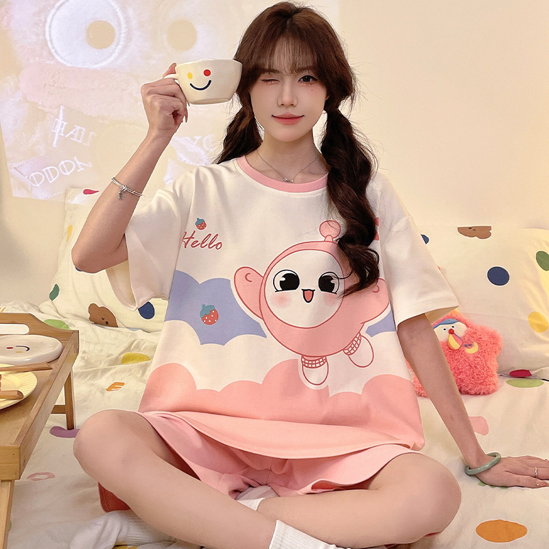 여름 만화 소녀 달콤한 잠옷 반팔 반바지 순수 코튼 소녀 플러스 사이즈 여성 인터넷 연예인 홈웨어 세트스토어 가기