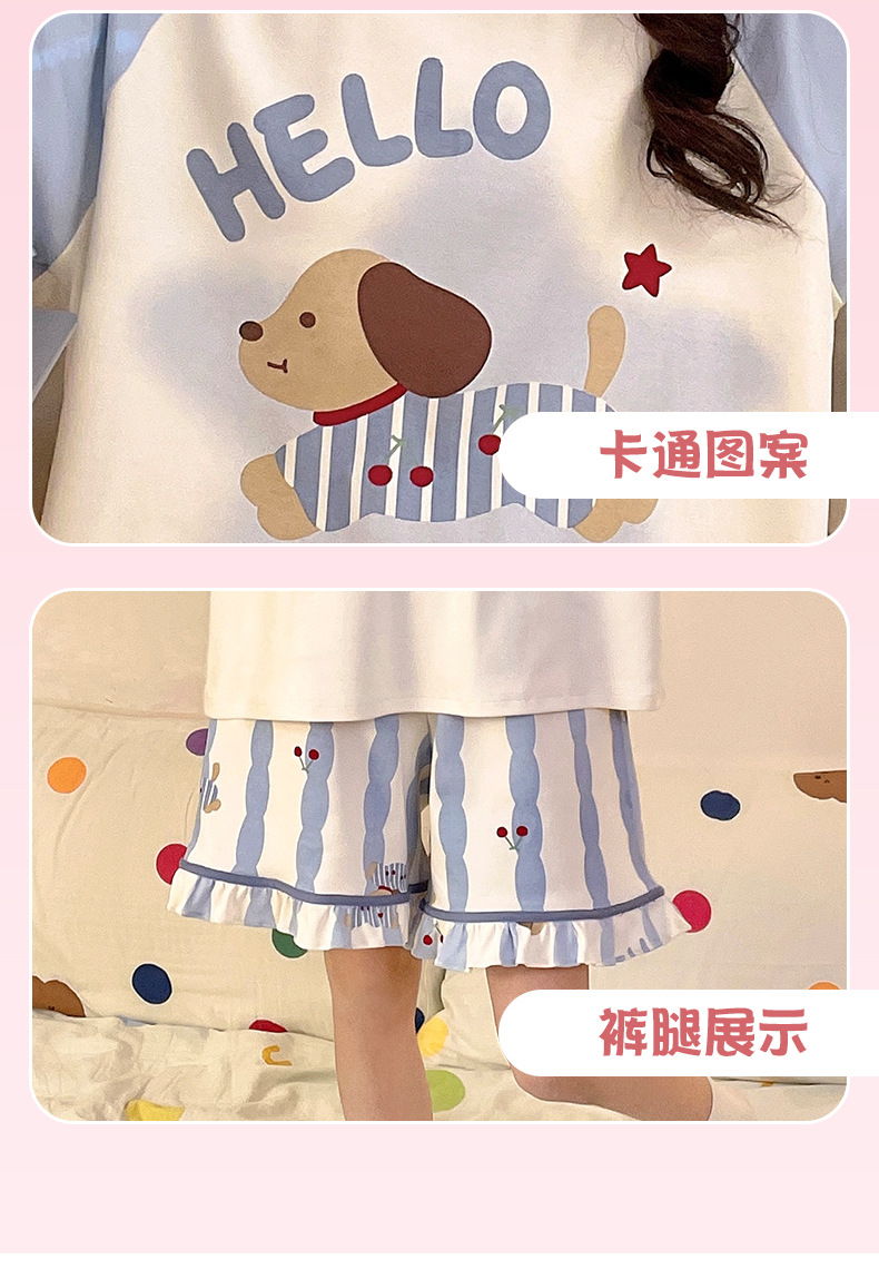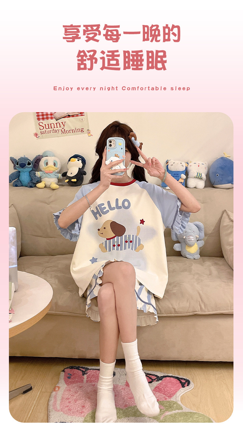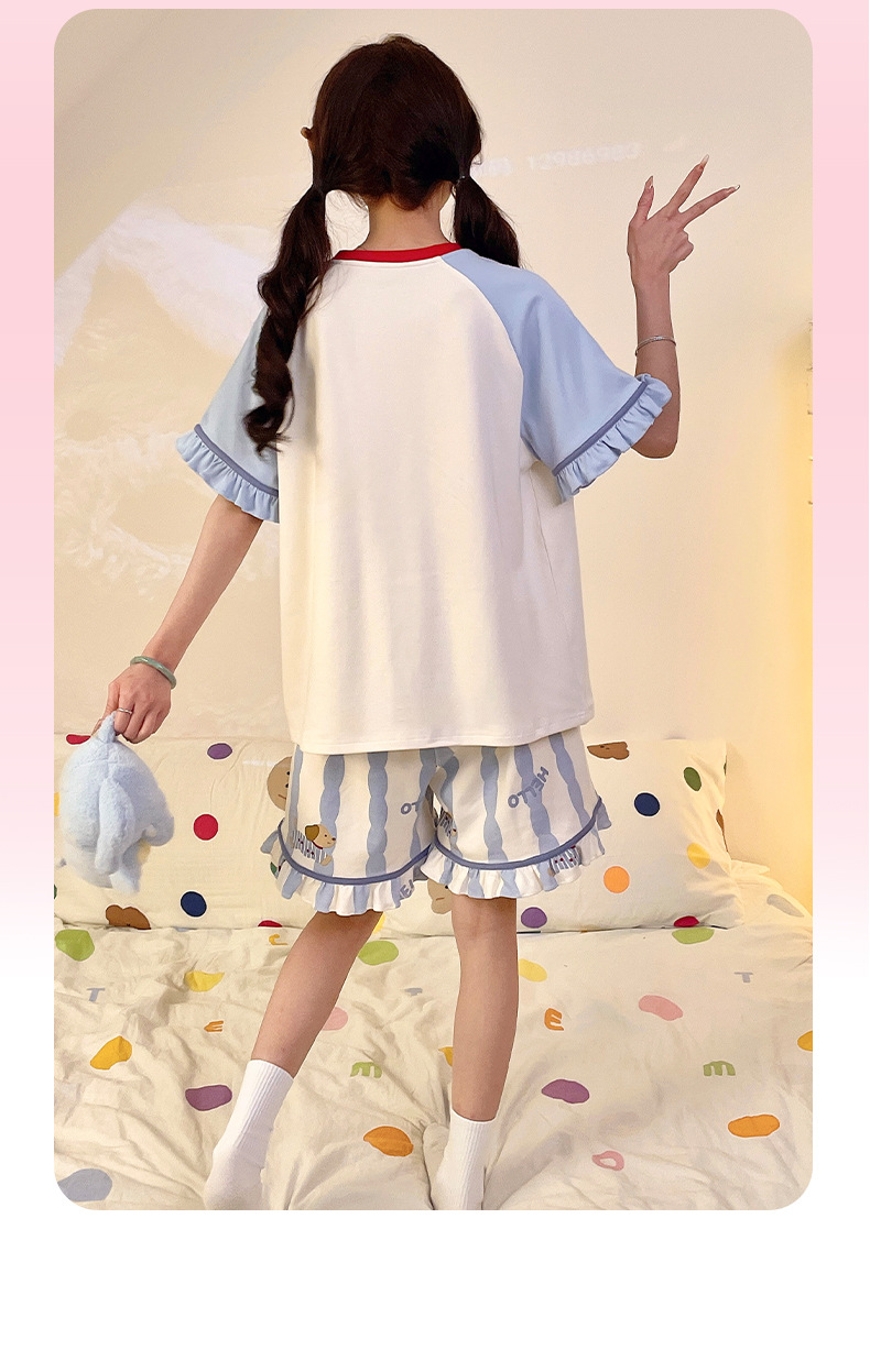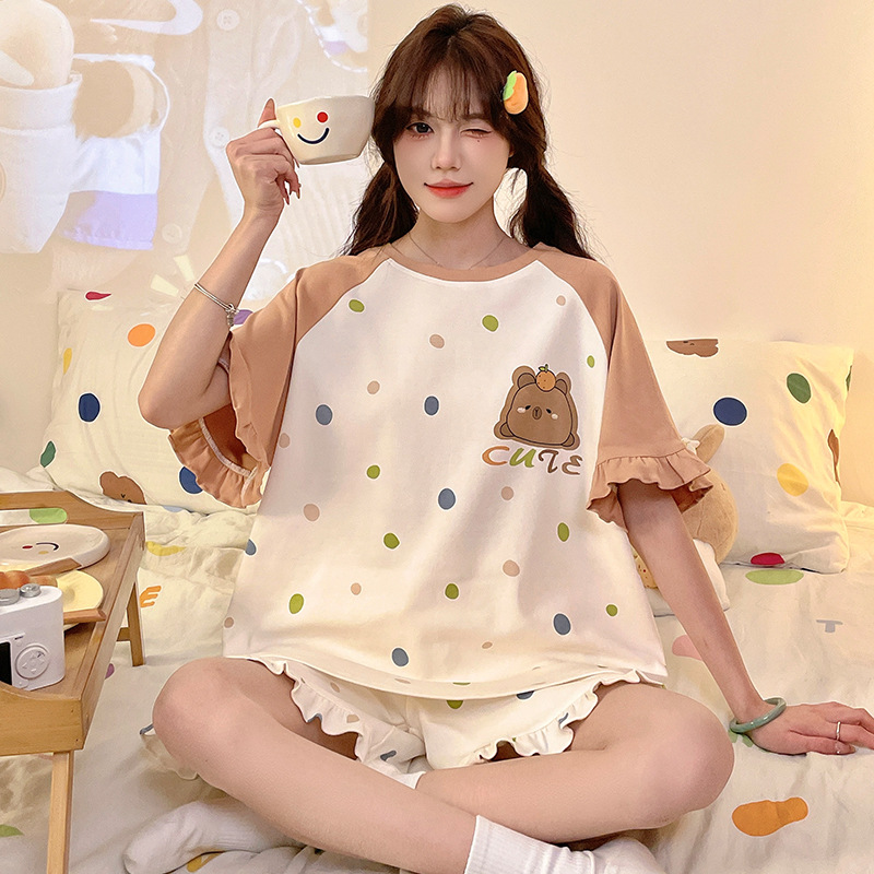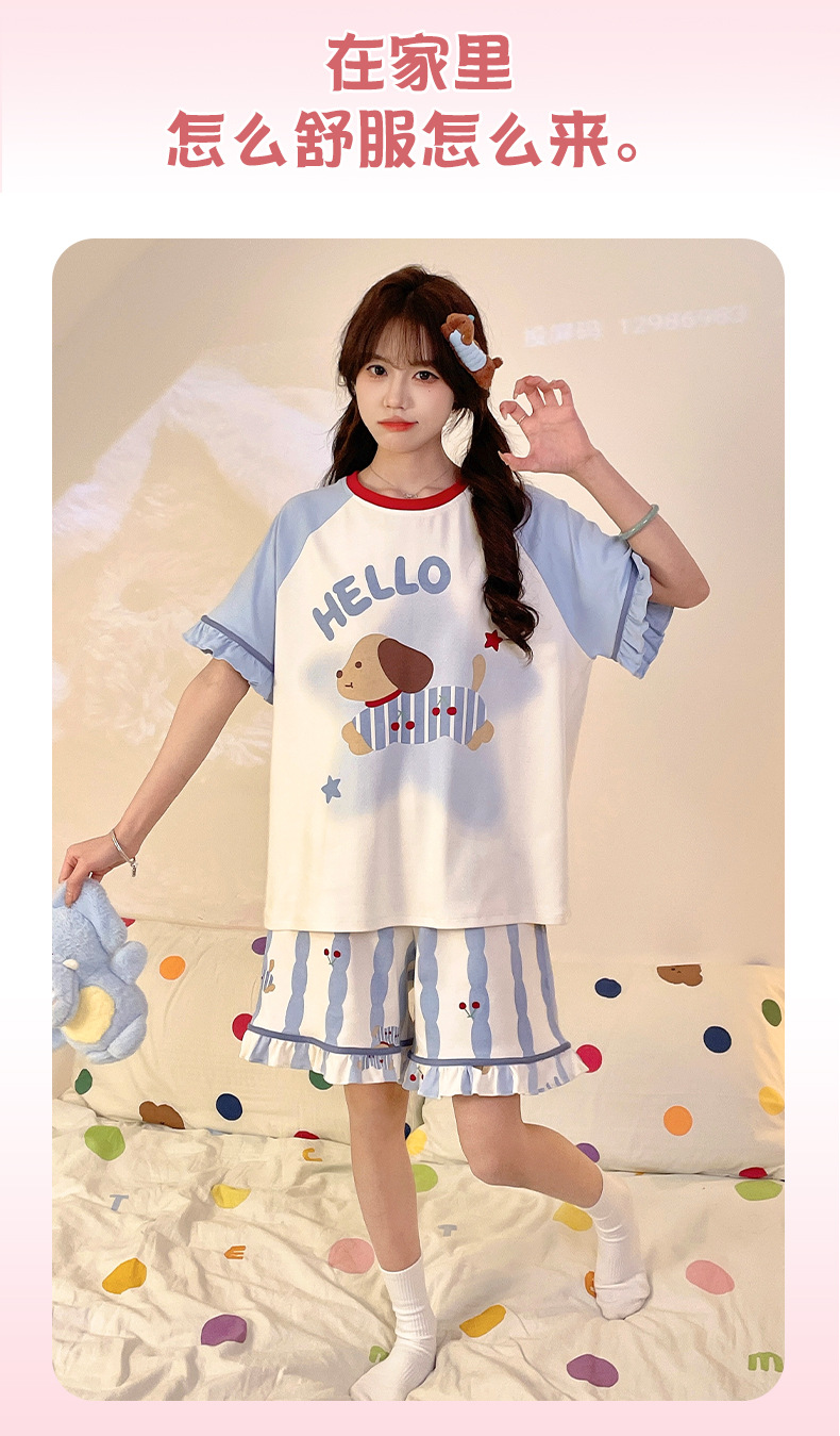 여름 만화 소녀 달콤한 잠옷 반팔 반바지 순수 코튼 소녀 플러스 사이즈 여성 인터넷 연예인 홈웨어 세트스토어 가기