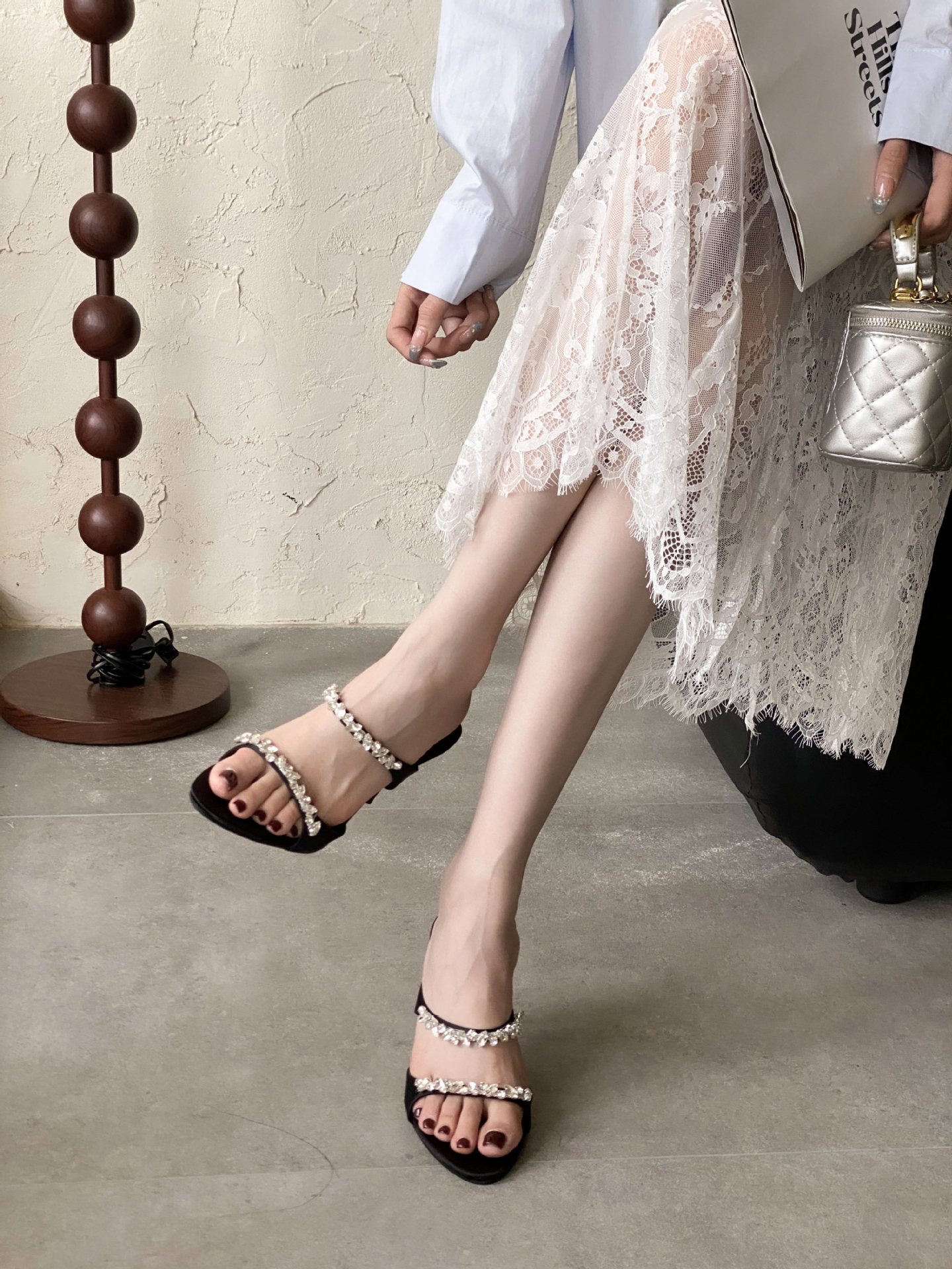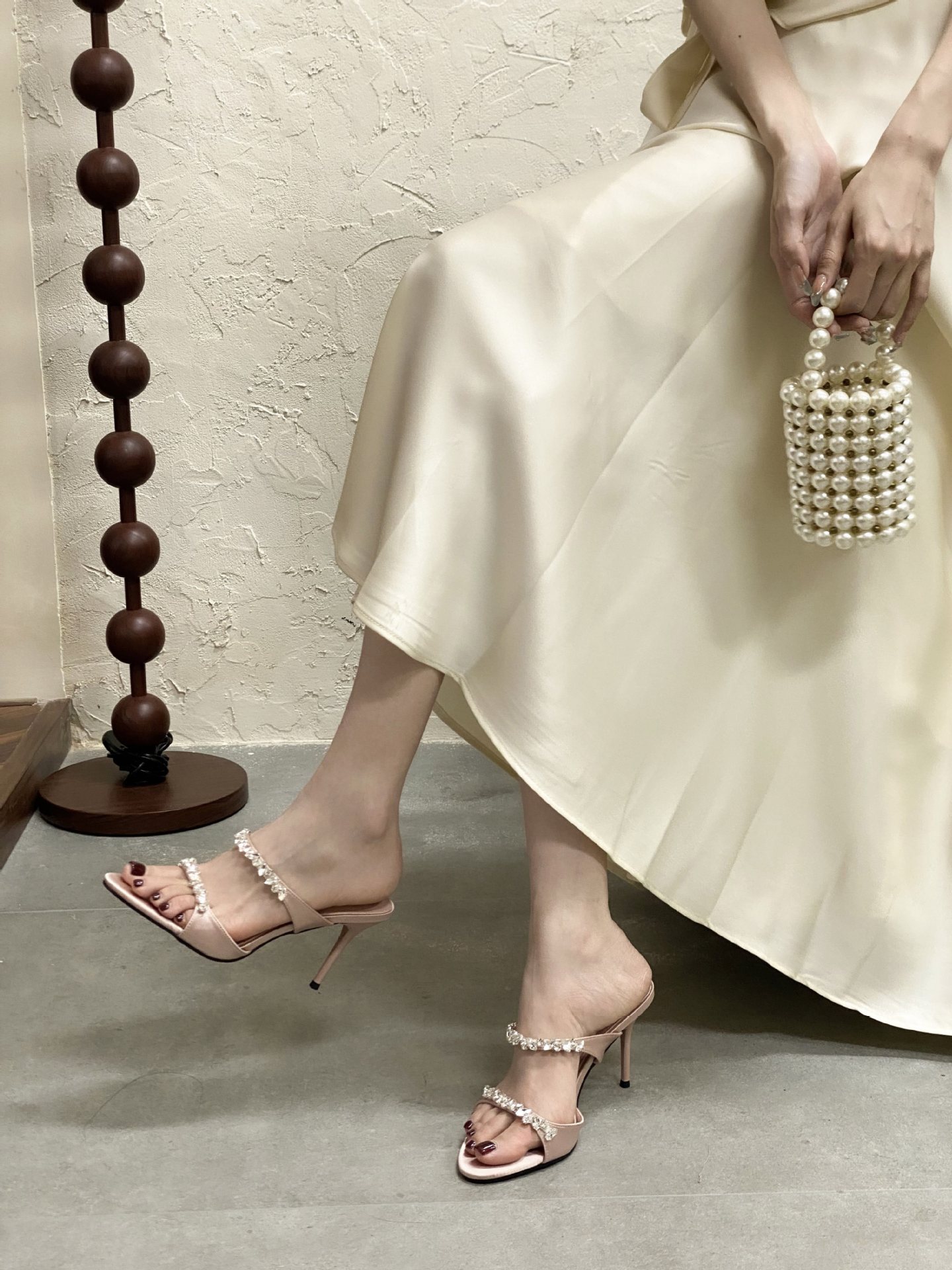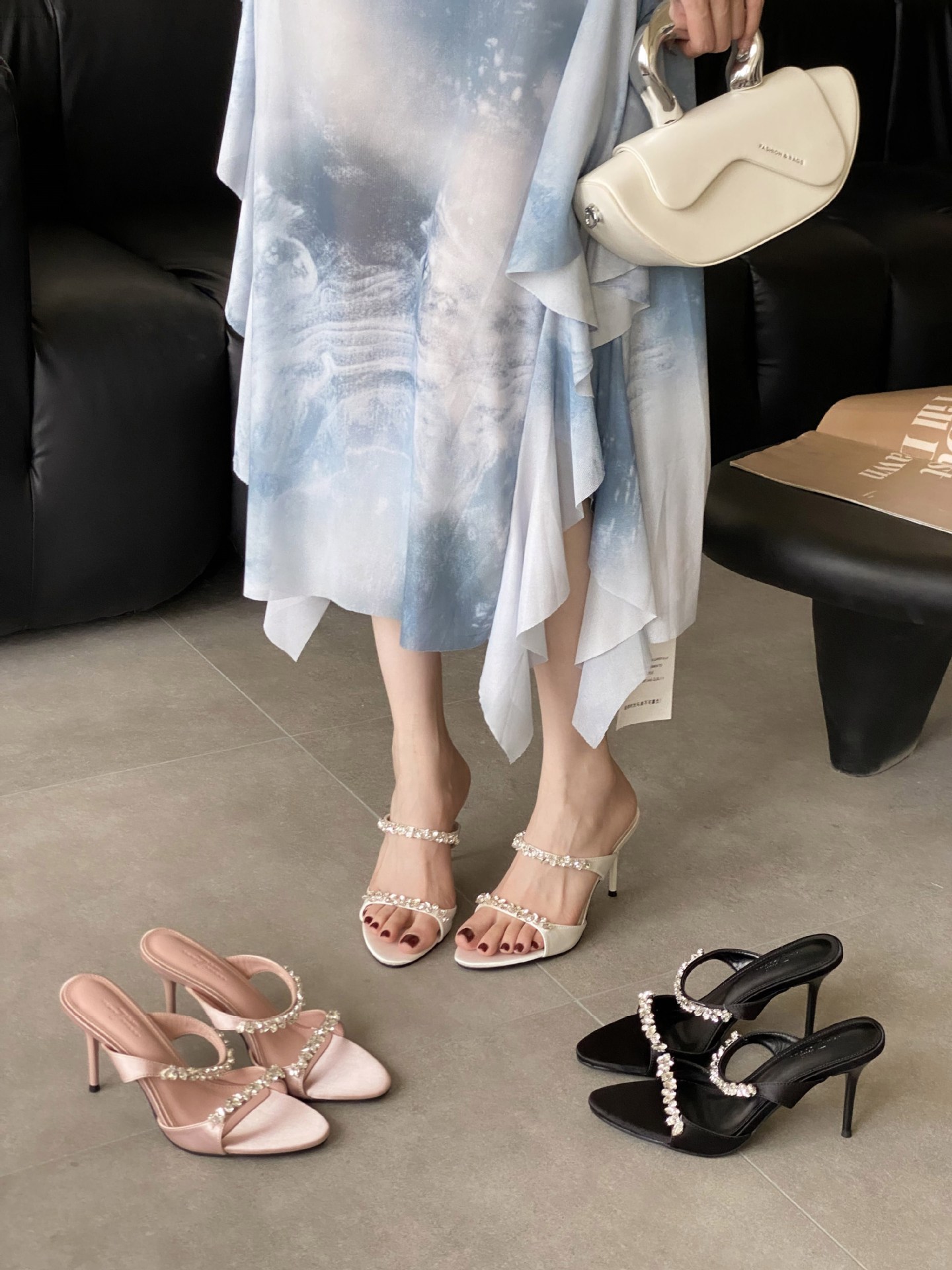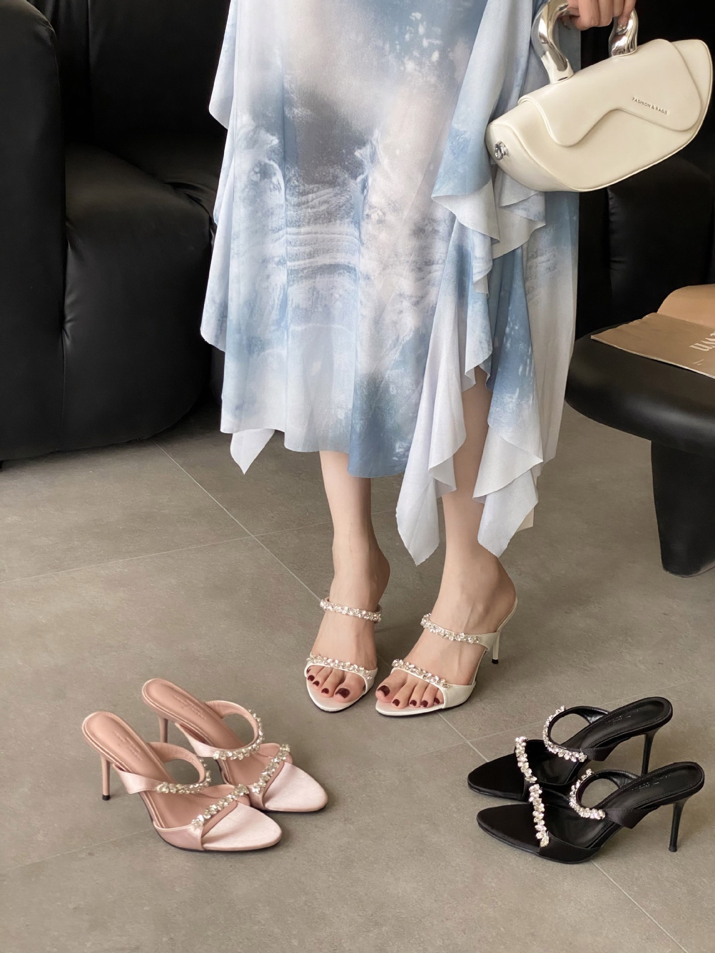 2025 봄 신상 라운드 토 스틸레토 하이힐, 슬림한 프렌치 패션, 아름다운 오픈 토 여성 슬리퍼스토어 가기