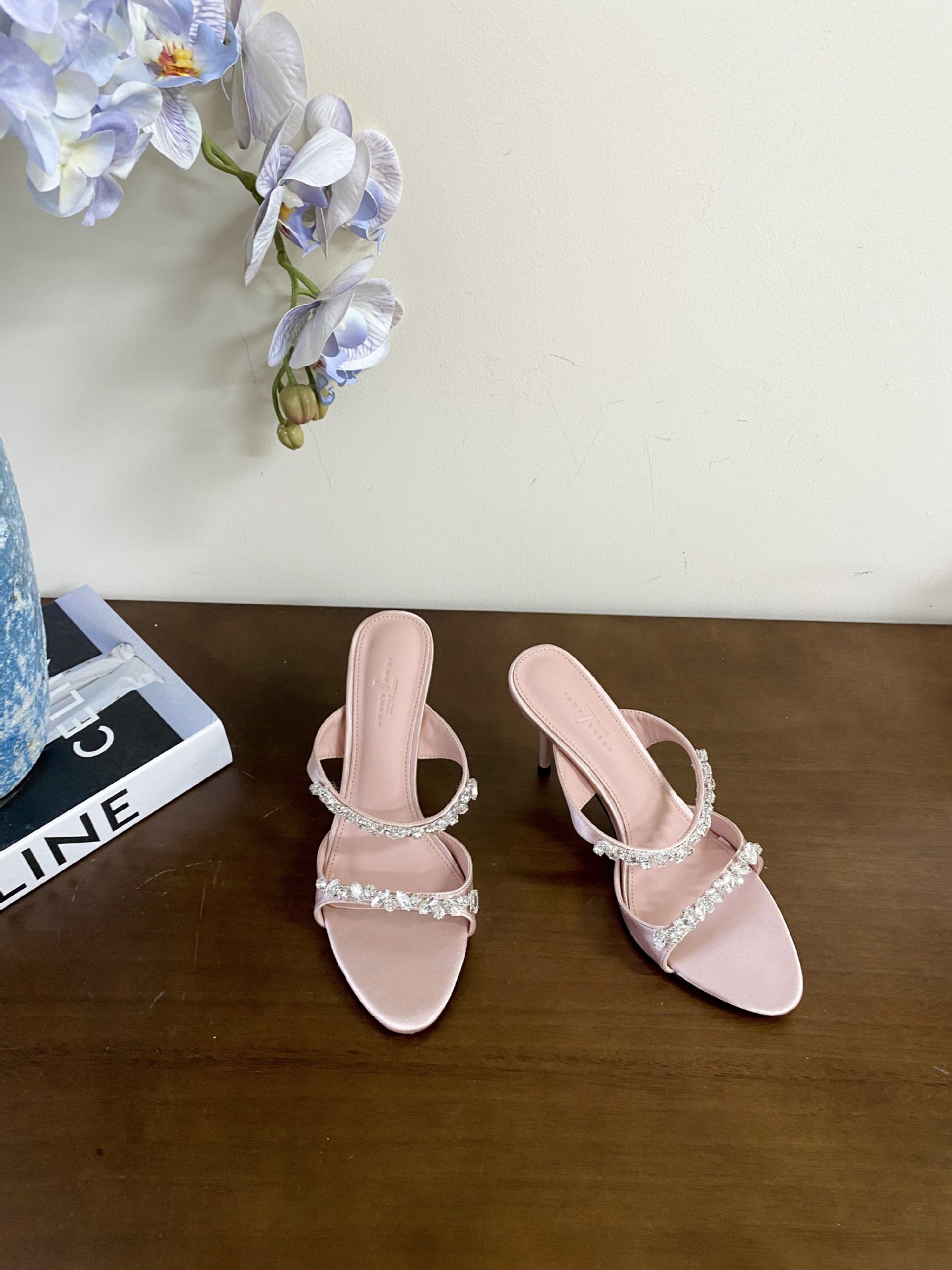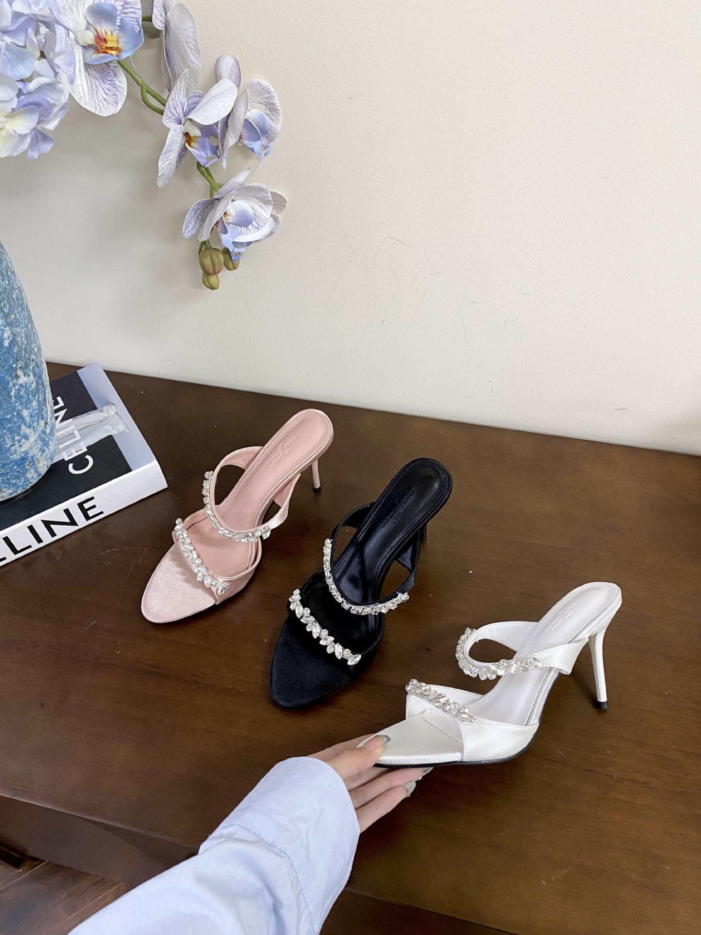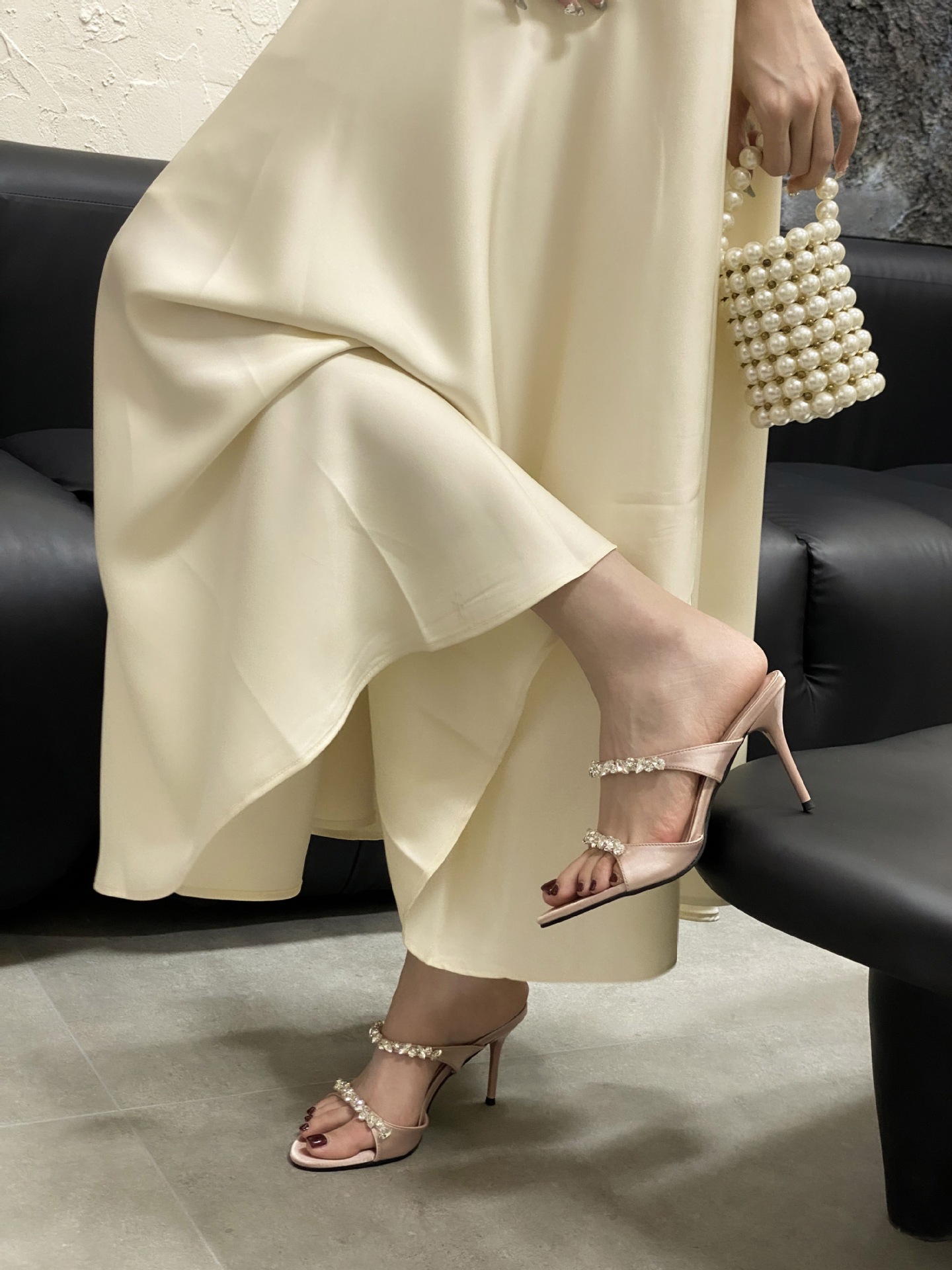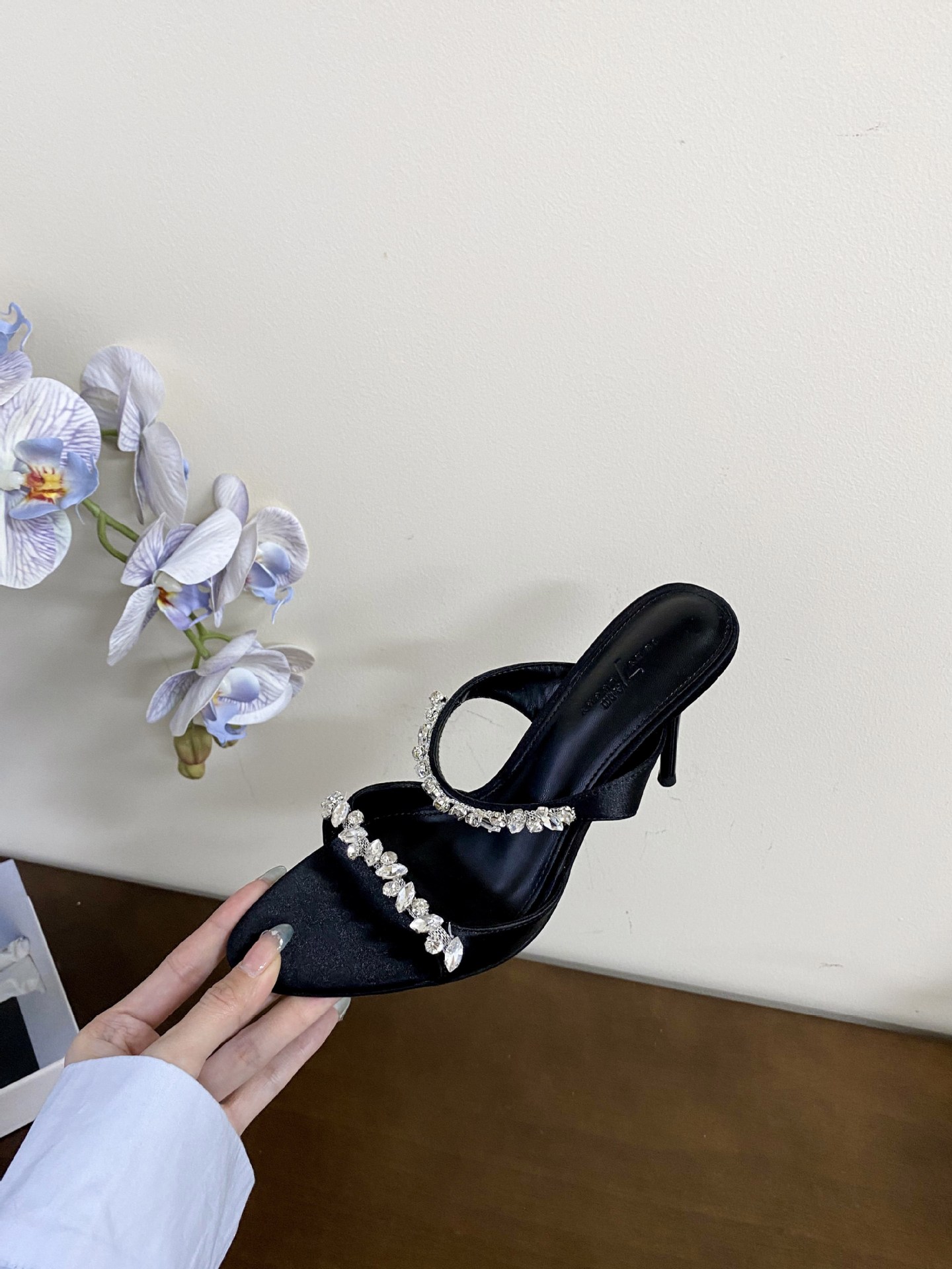 2025 봄 신상 라운드 토 스틸레토 하이힐, 슬림한 프렌치 패션, 아름다운 오픈 토 여성 슬리퍼스토어 가기