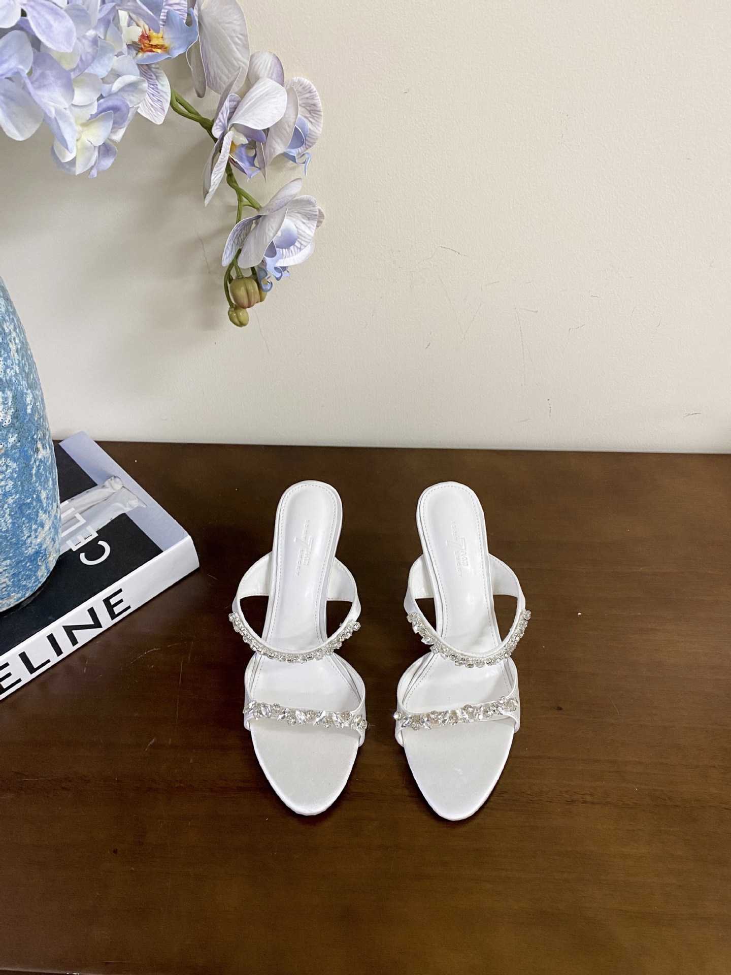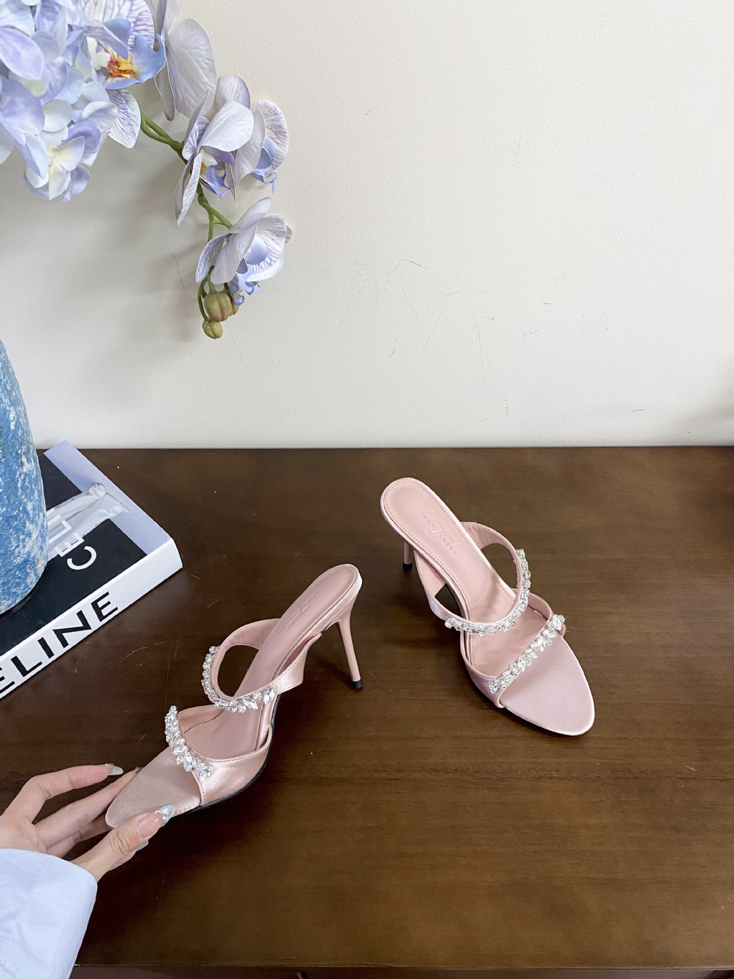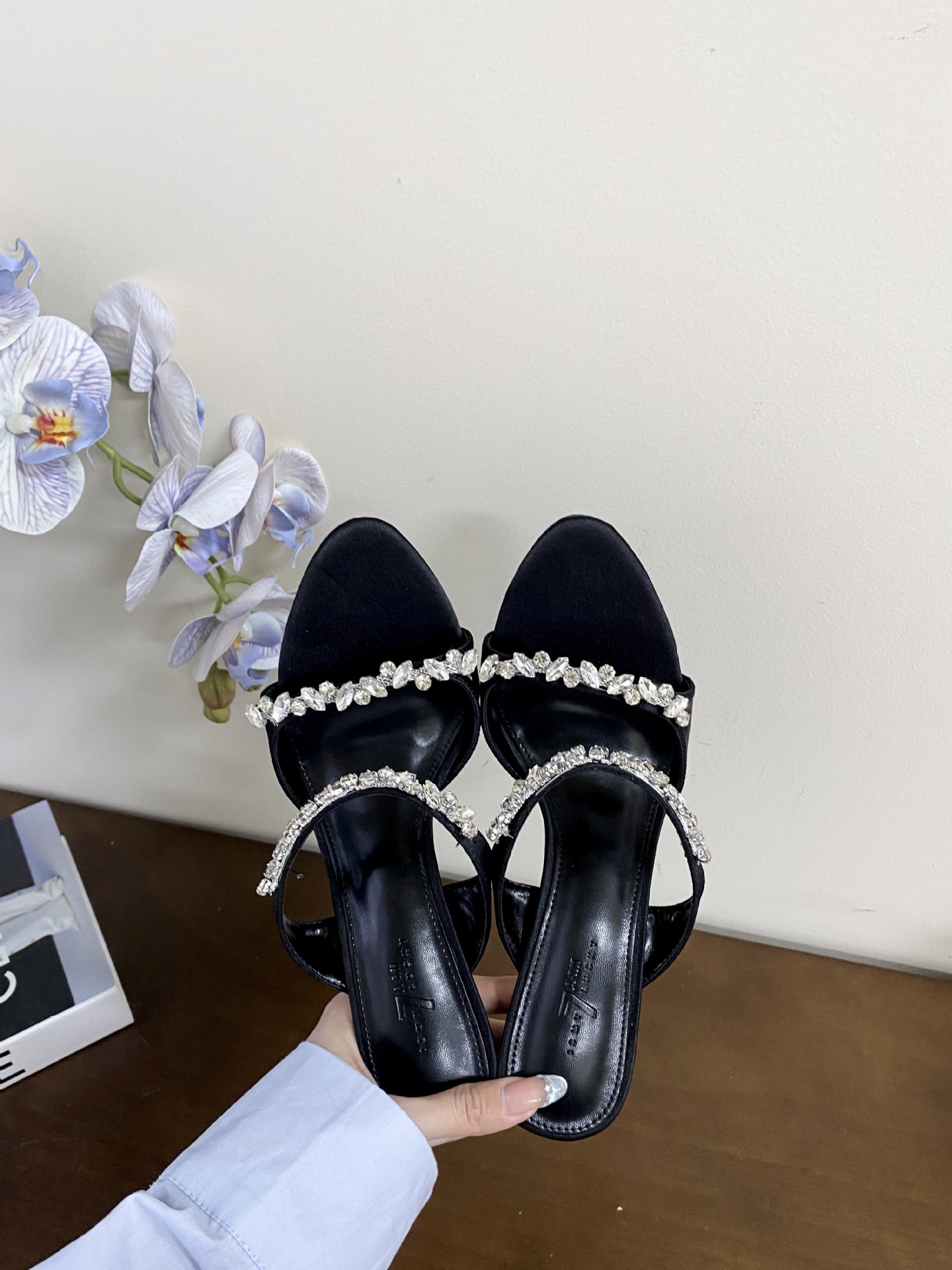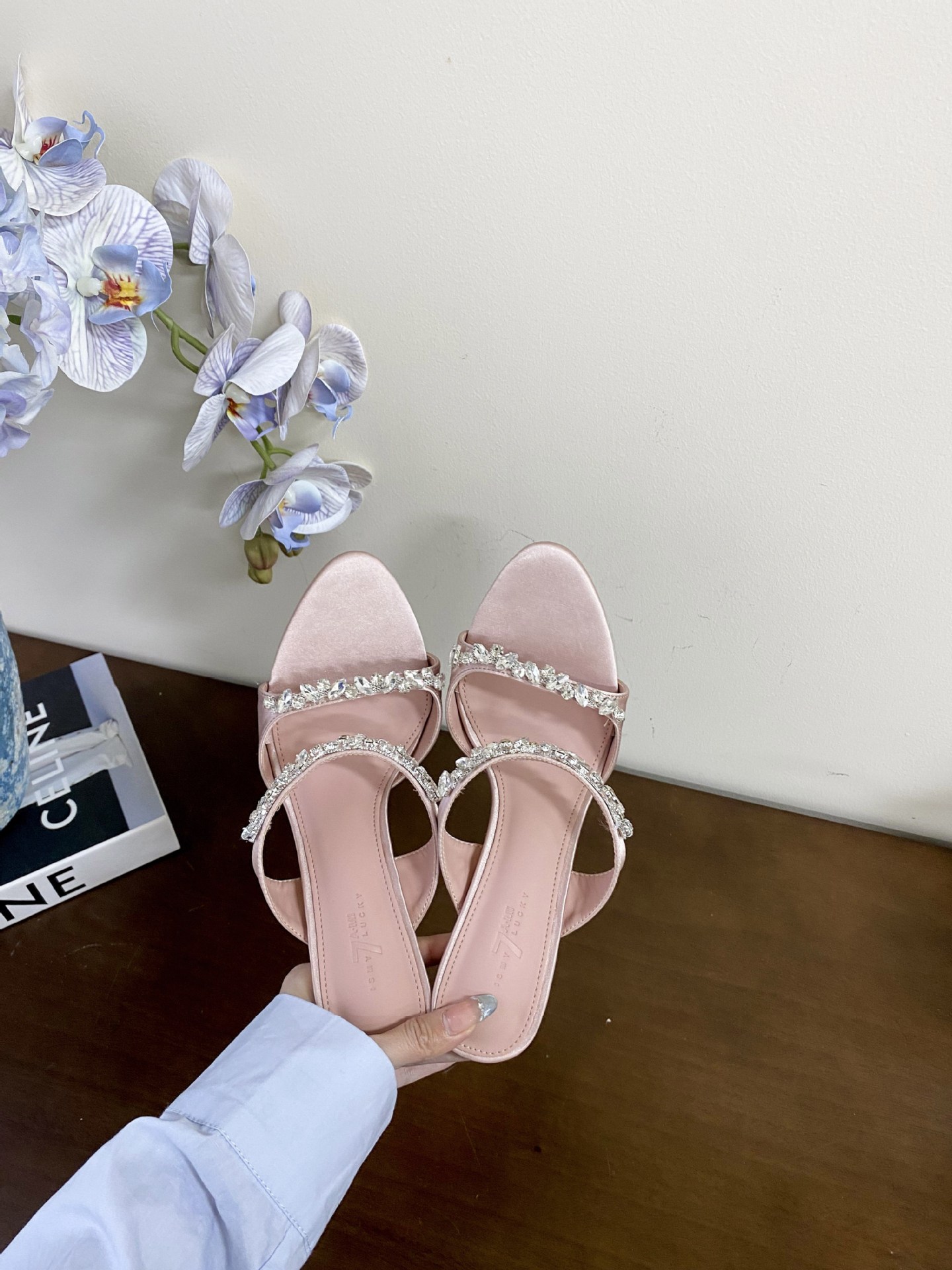 2025 봄 신상 라운드 토 스틸레토 하이힐, 슬림한 프렌치 패션, 아름다운 오픈 토 여성 슬리퍼스토어 가기