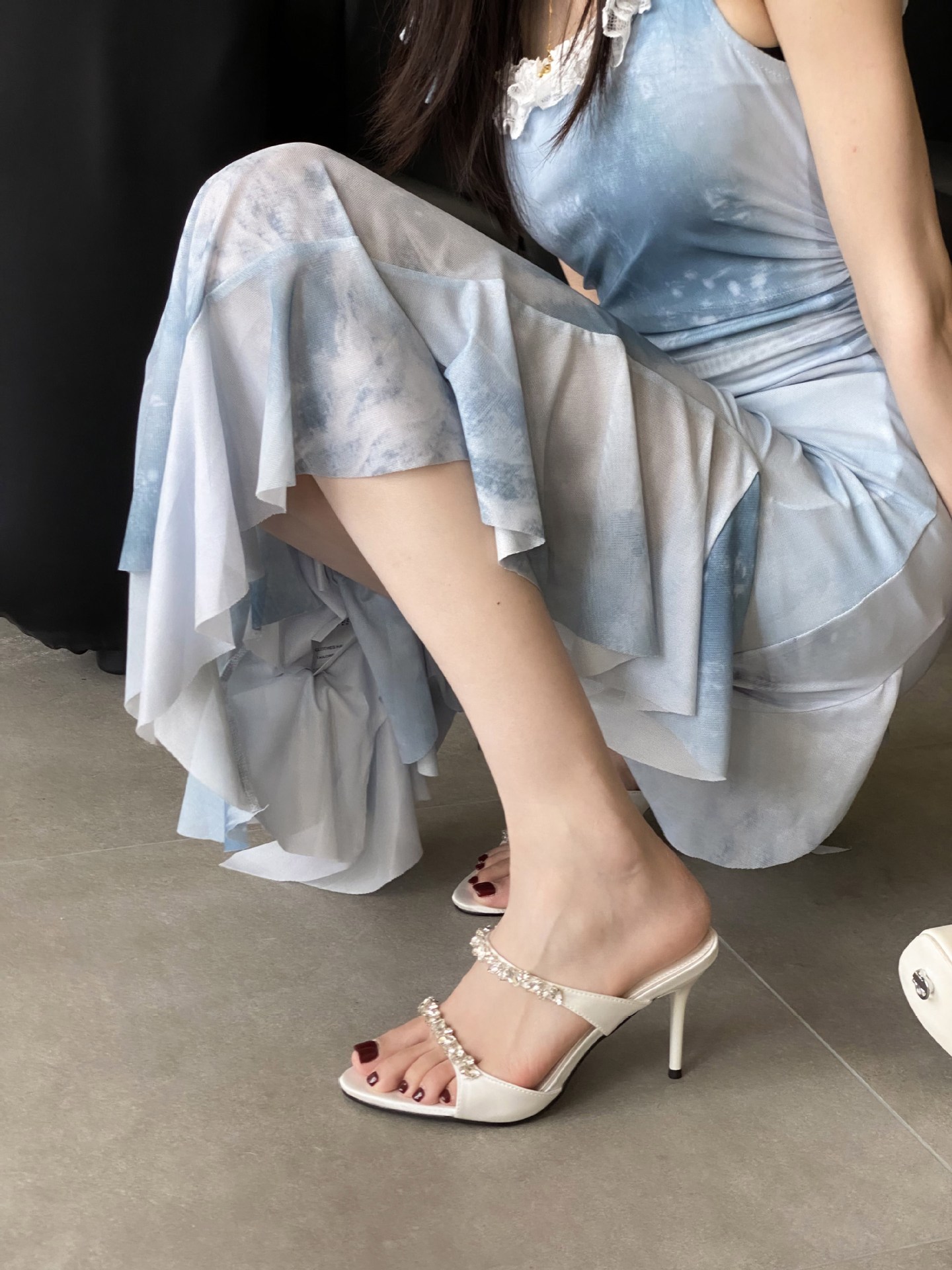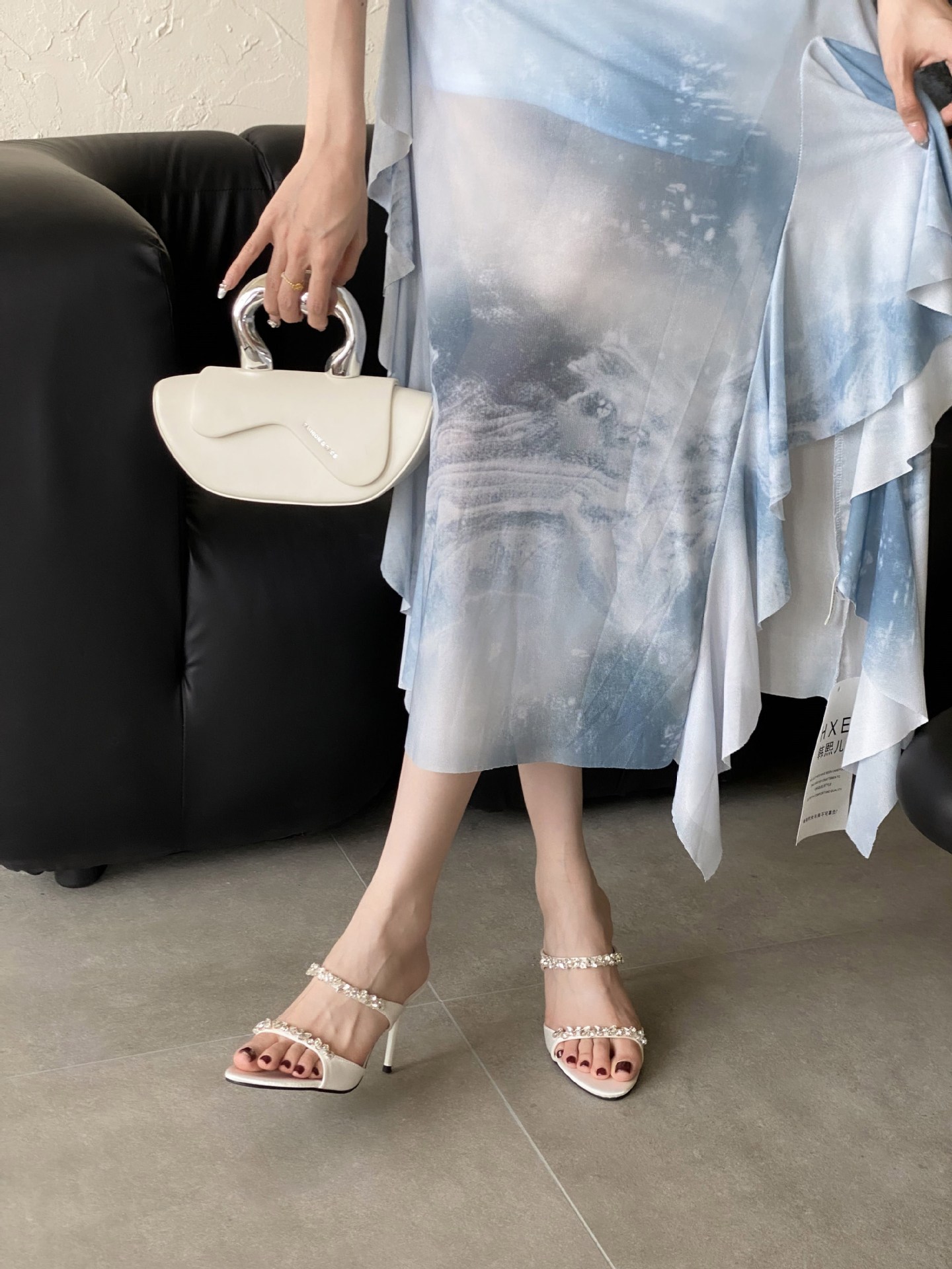 2025 봄 신상 라운드 토 스틸레토 하이힐, 슬림한 프렌치 패션, 아름다운 오픈 토 여성 슬리퍼