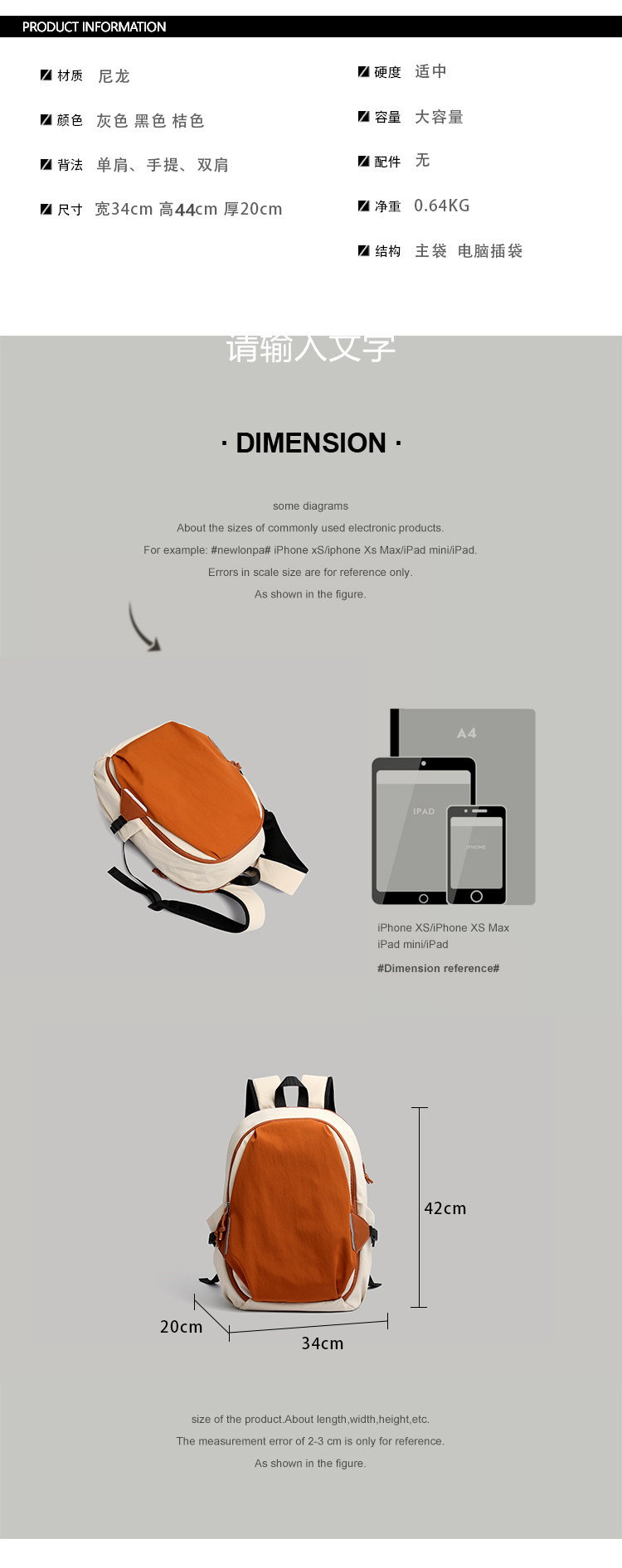 야외 배드민턴 백팩, 배색 대학 스타일 스포츠 백팩, 심플하고 가벼운 캠퍼스 인스 초등학생 가방스토어 가기