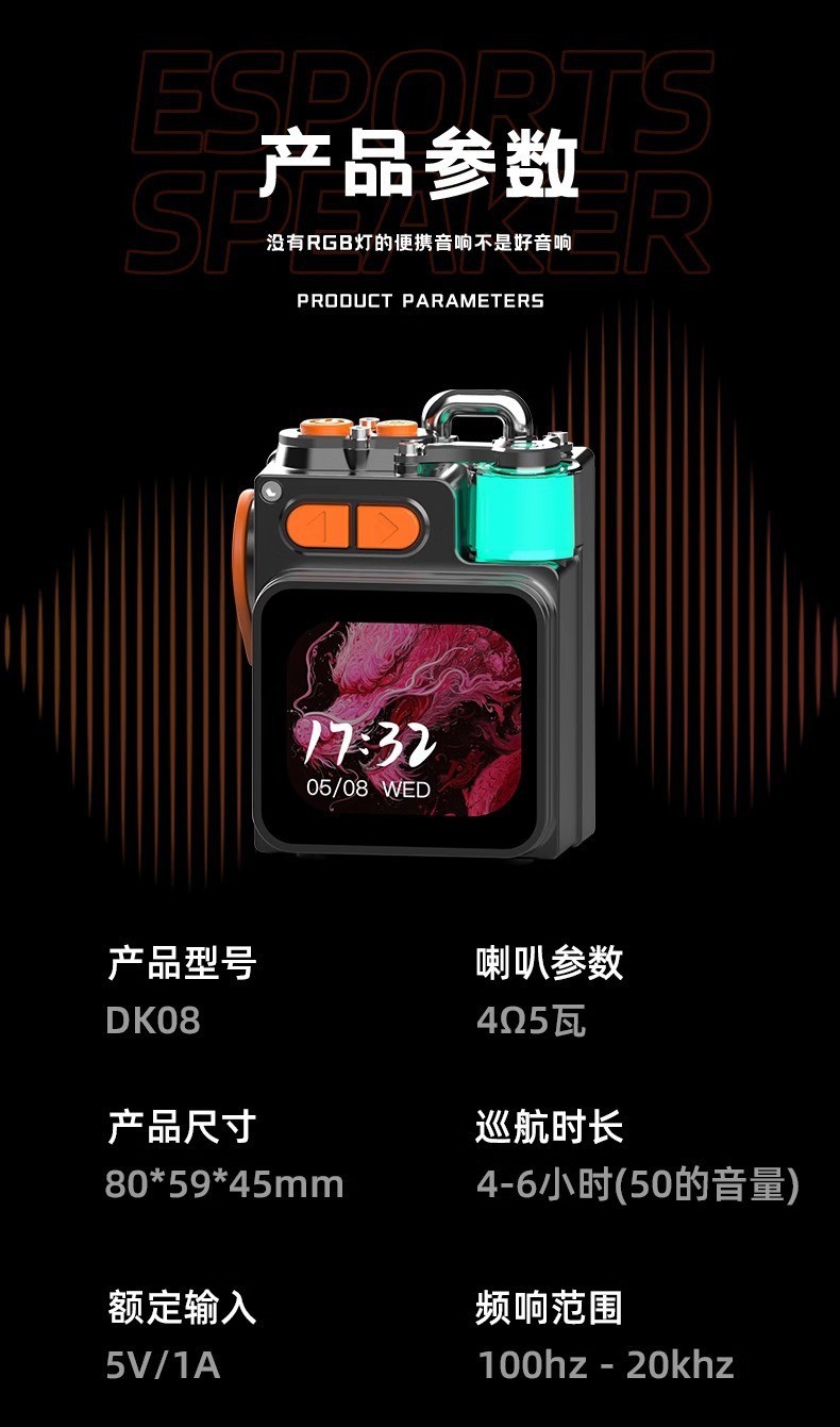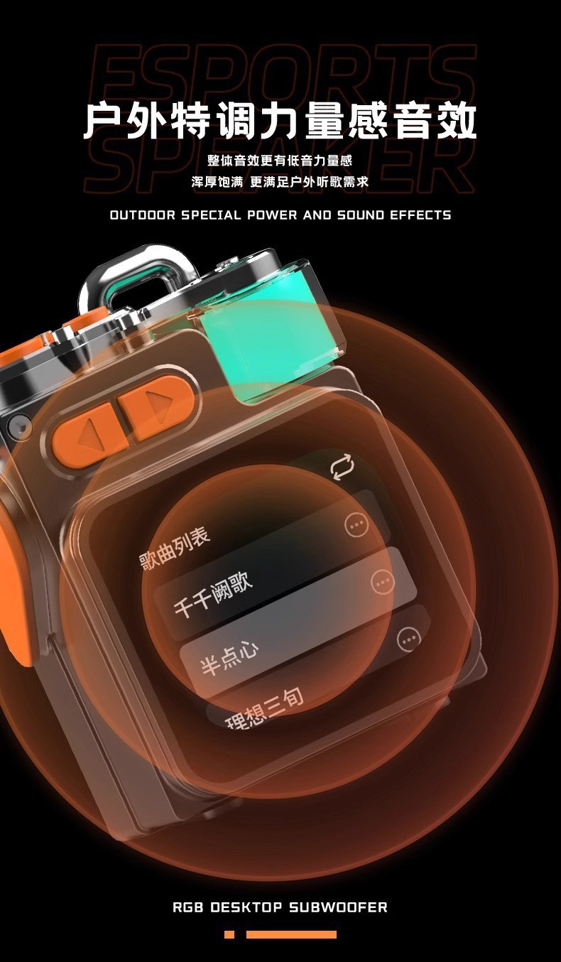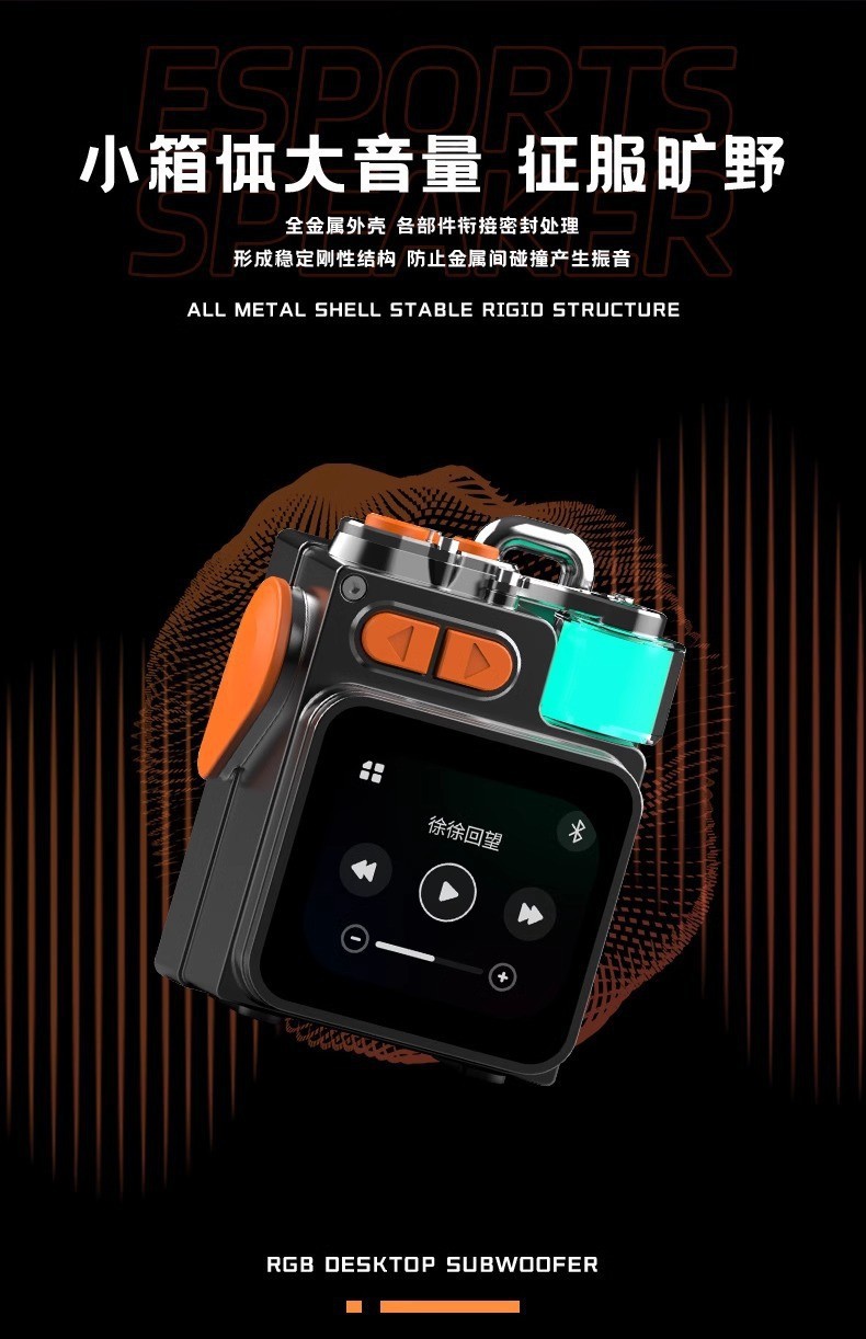 국경 간 신제품 K15 멋진 메카 스타일 LED 스크린, 작고 휴대 가능하며 TF 카드 삽입 가능, 금속 e-스포츠 RGB 조명 및 오디오