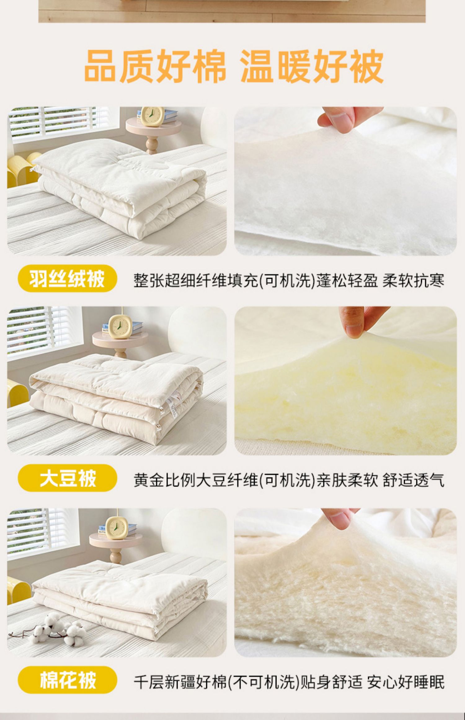 • 업그레이드된 누빔모델-봄가을 1.0kg 콩이불 6종세트 [면 3종세트 + 이불심 1.0kg + 쿠션심 0.75kg + 베개심] [무료 핸드백]