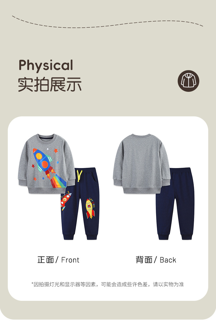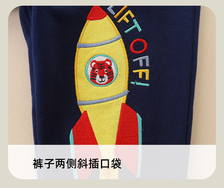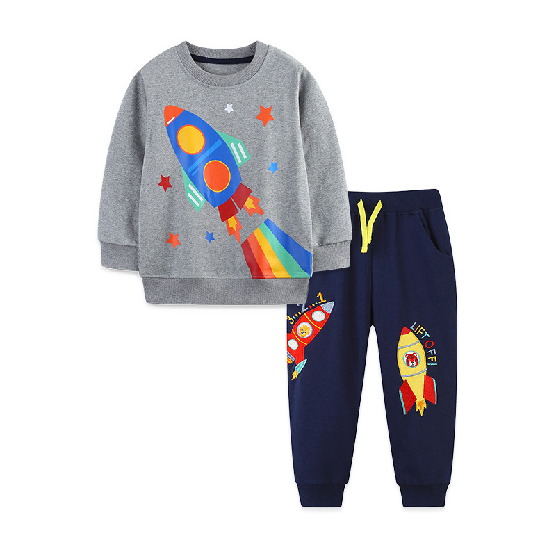 공장 직접 판매 소년 긴 소매 정장 패션 로켓 인쇄 라운드 넥 풀오버 패션 수 놓은 어린이 스포츠 바지스토어 가기