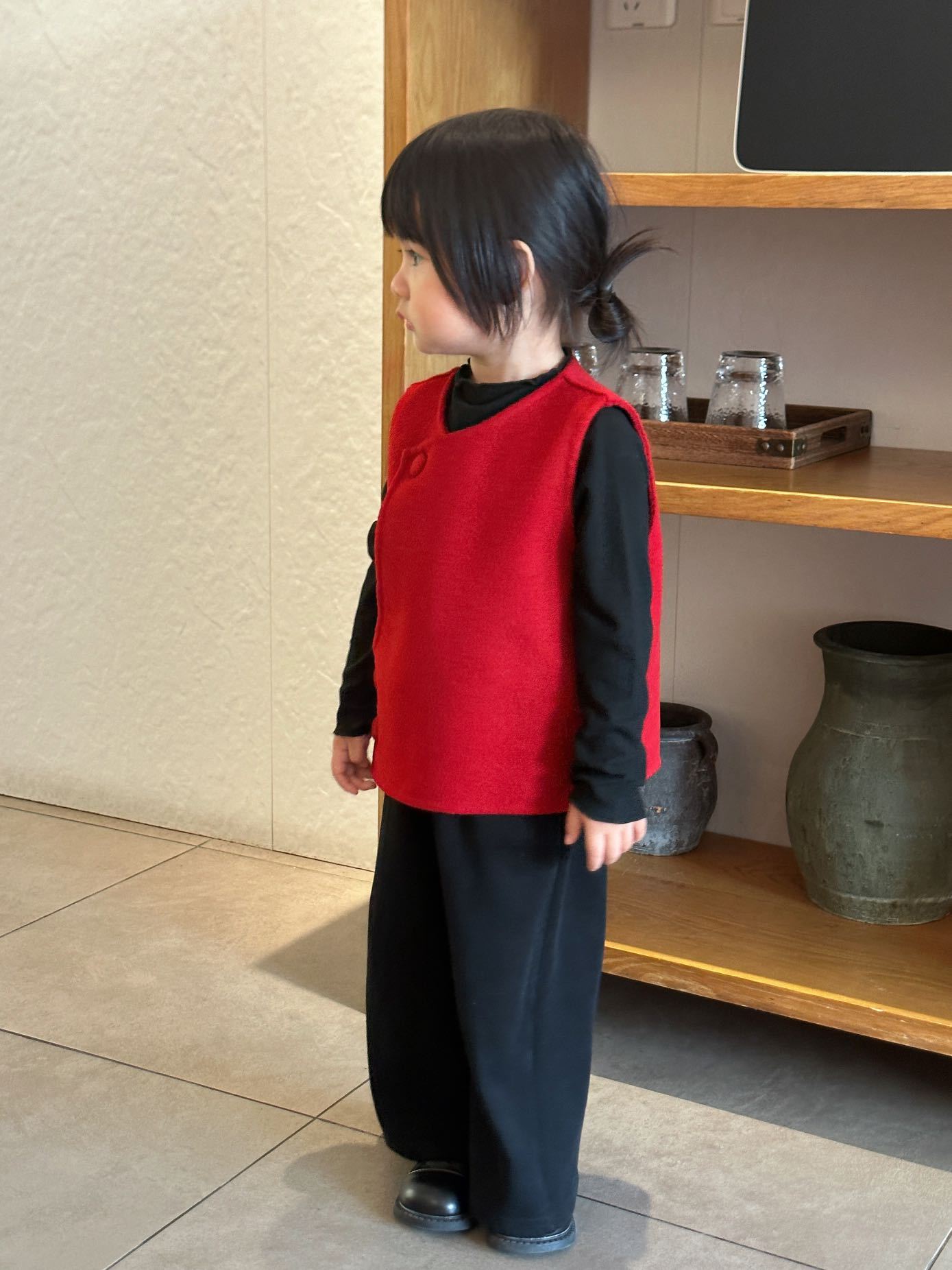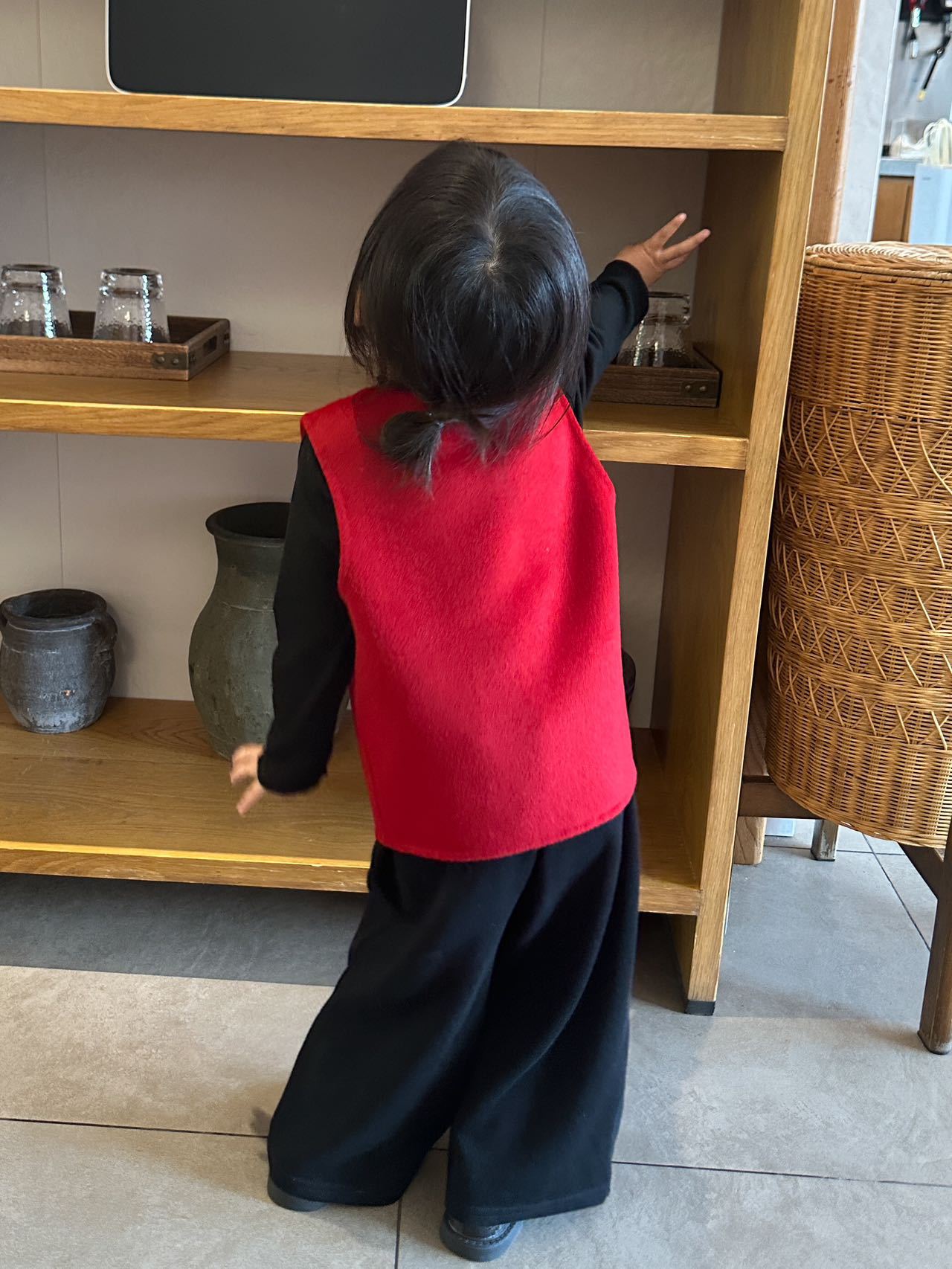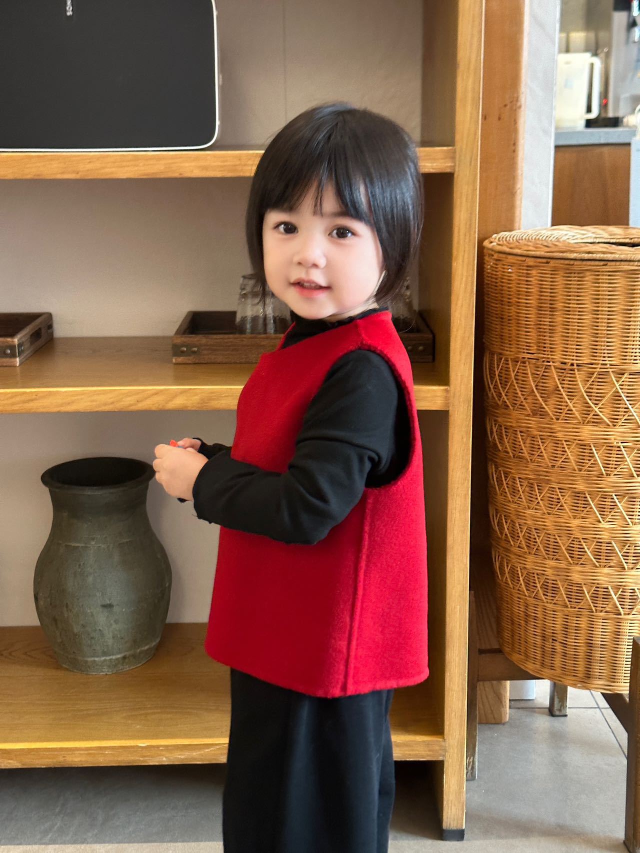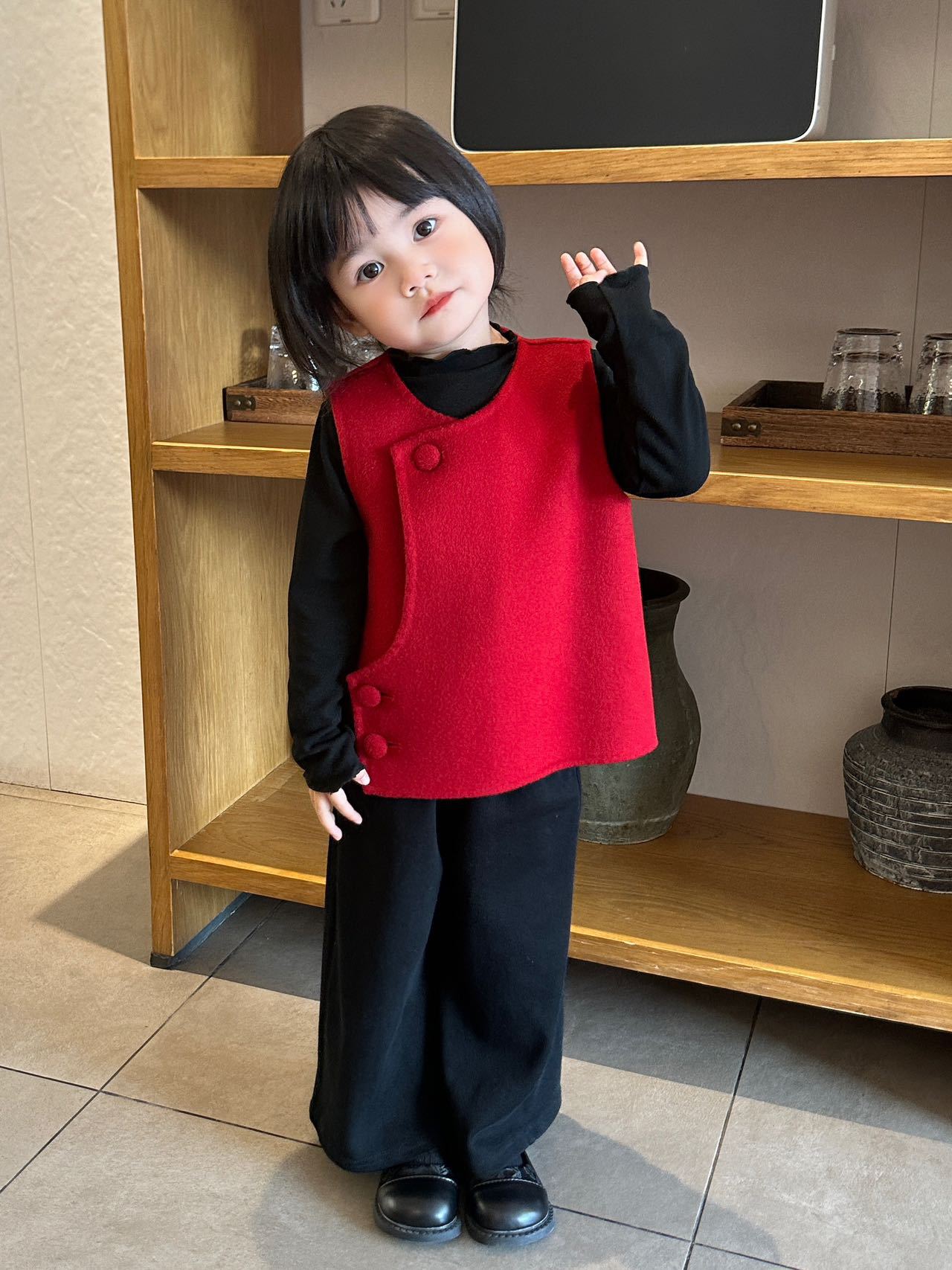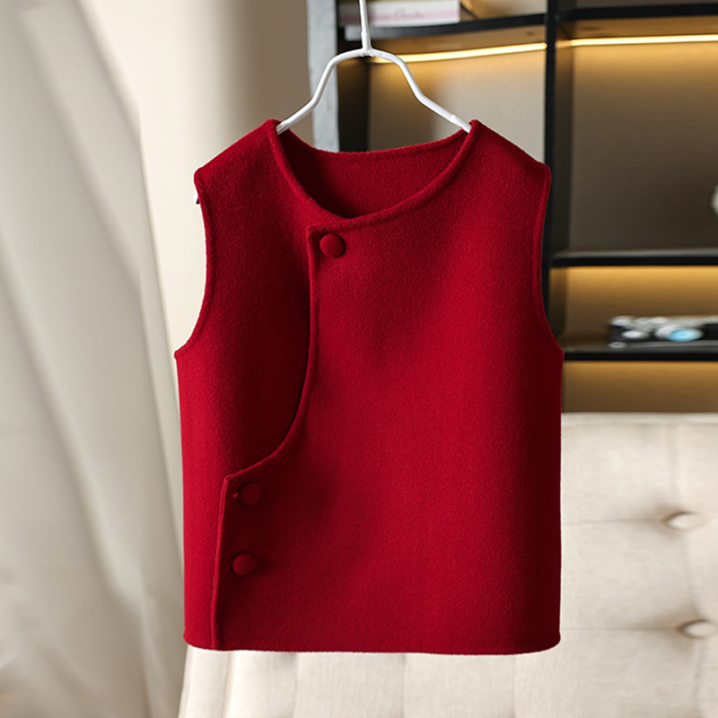 소년과 소녀를 위한 중국식 조끼, 가을 겨울 겉옷, 따뜻한 수제 중국 스타일 새해 옷, 올울 양면 모직 재킷