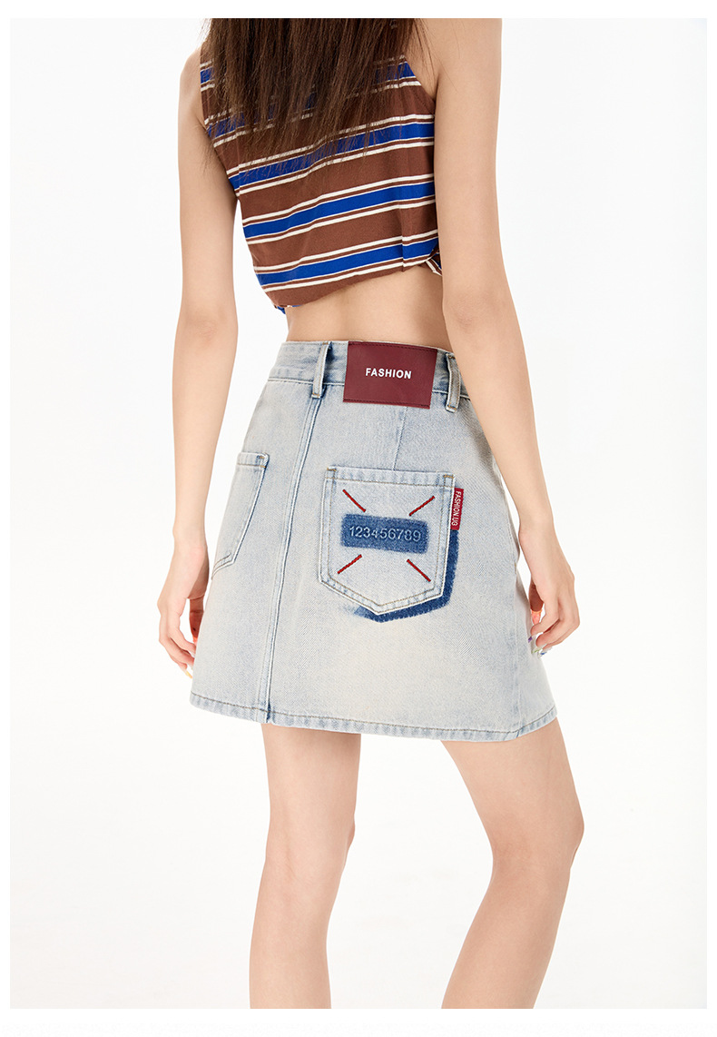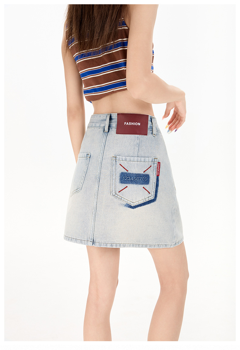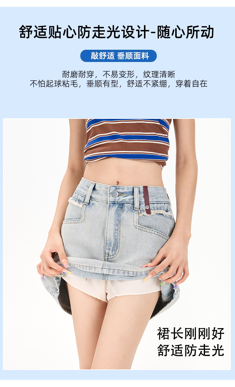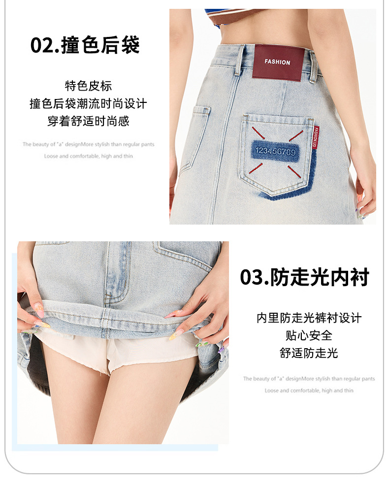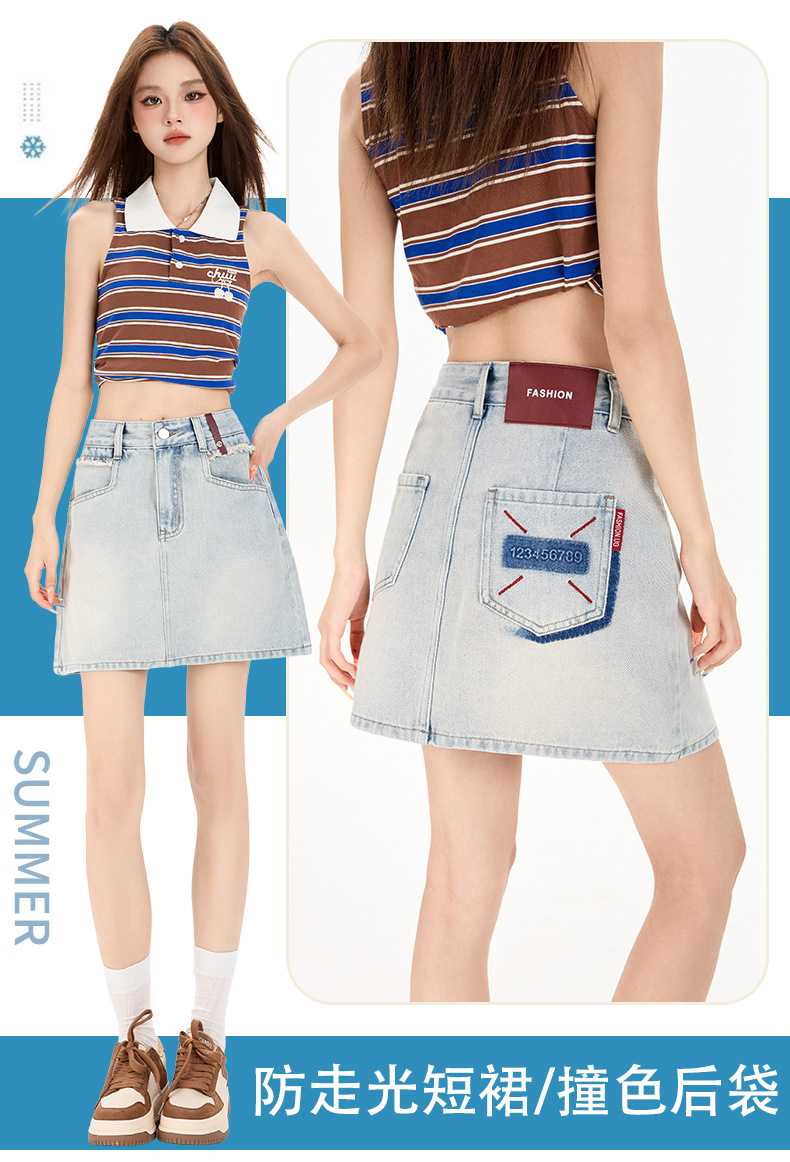 여성을 위한 대비색 데님 스커트 2025 여름 새로운 스타일 노출 방지 다용도 A라인 안감이 있는 슬리밍 힙 스커트 핫걸스토어 가기