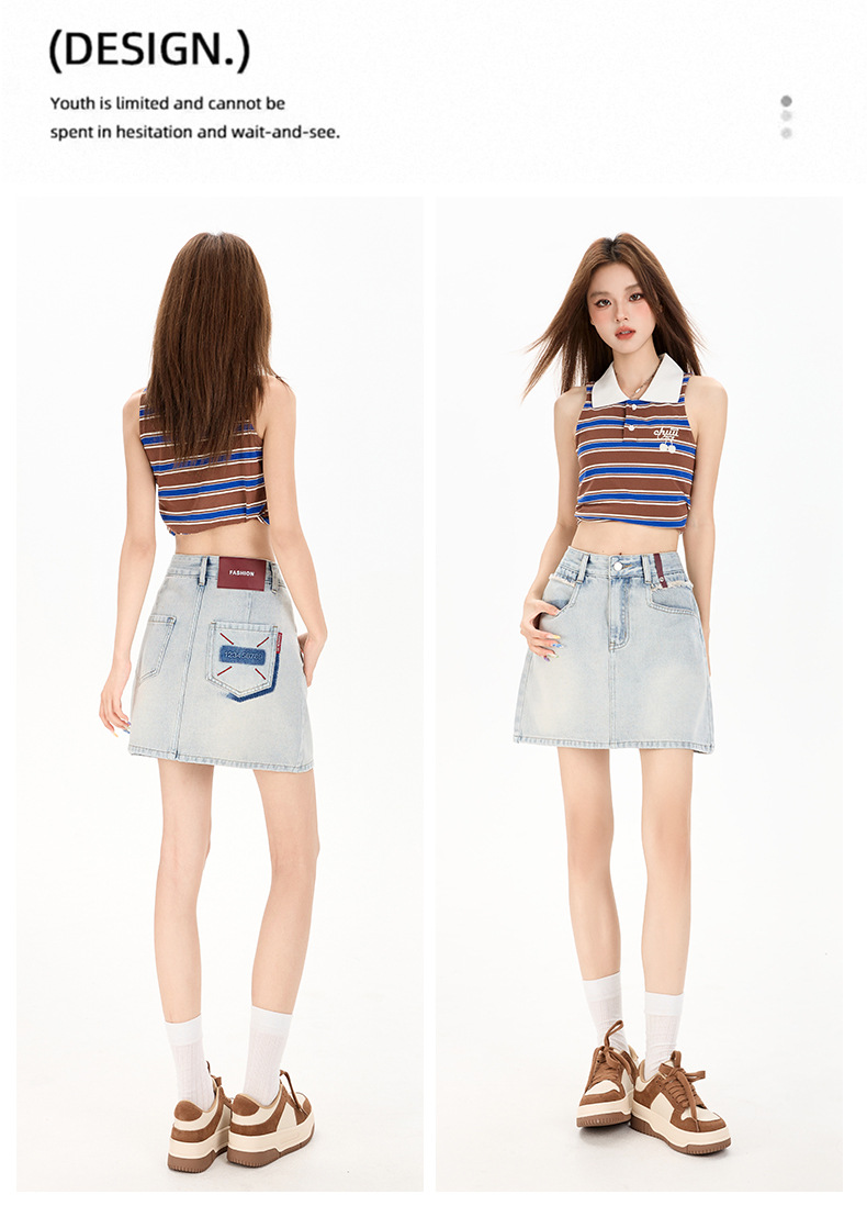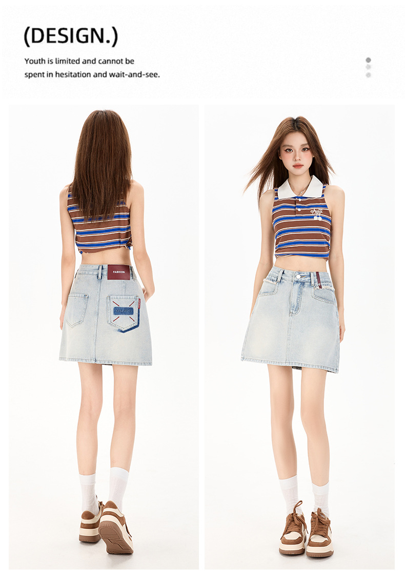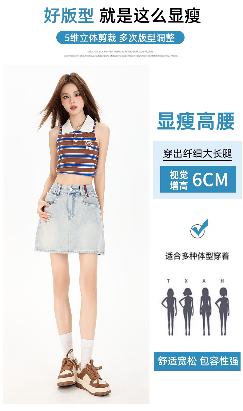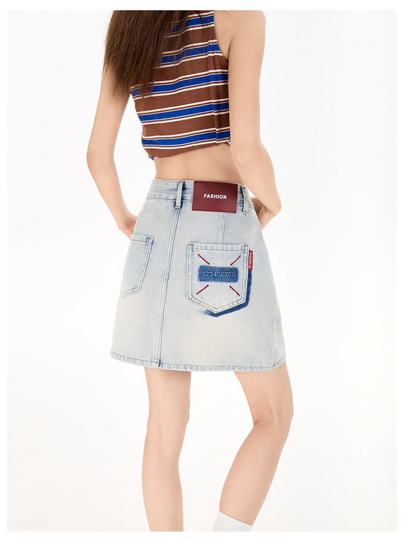 여성을 위한 대비색 데님 스커트 2025 여름 새로운 스타일 노출 방지 다용도 A라인 안감이 있는 슬리밍 힙 스커트 핫걸스토어 가기