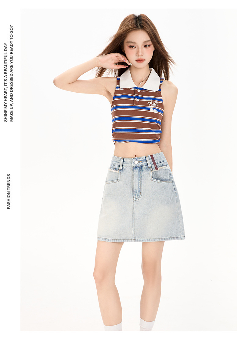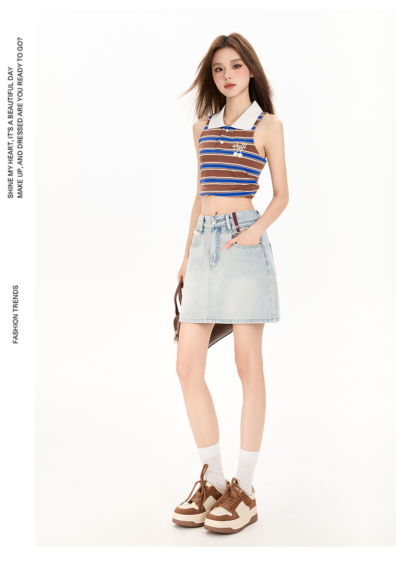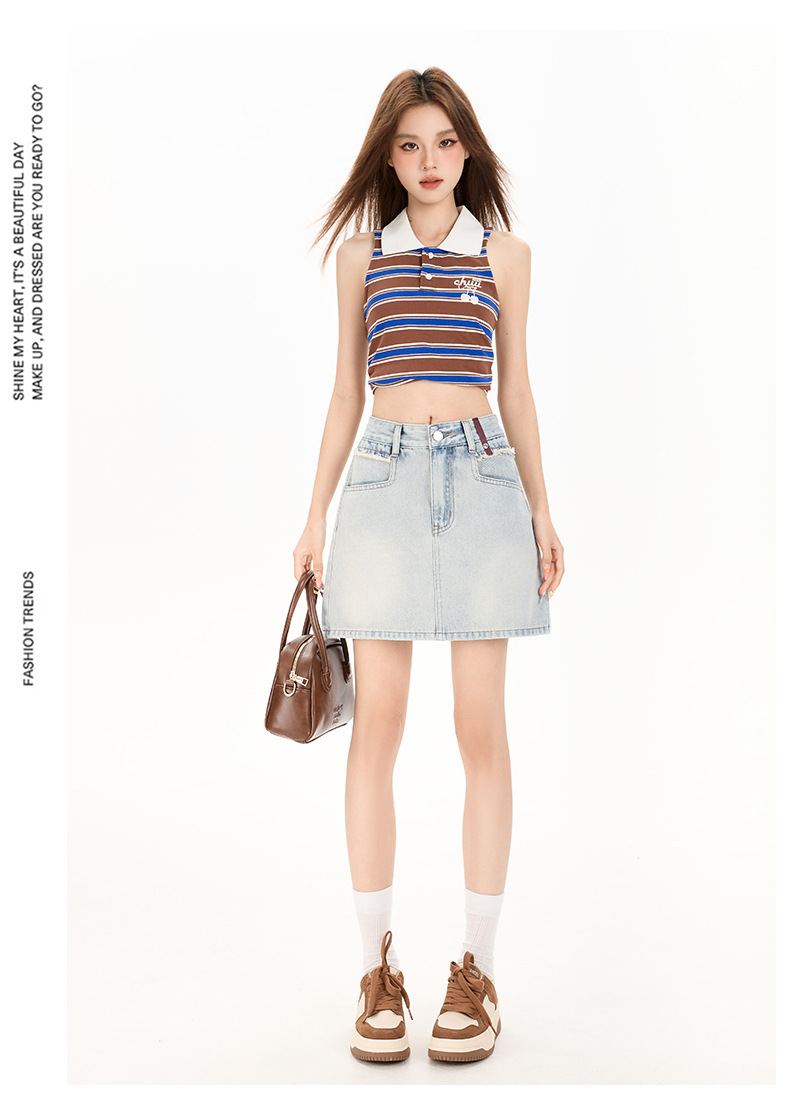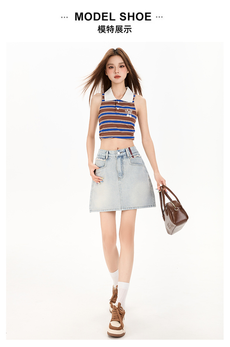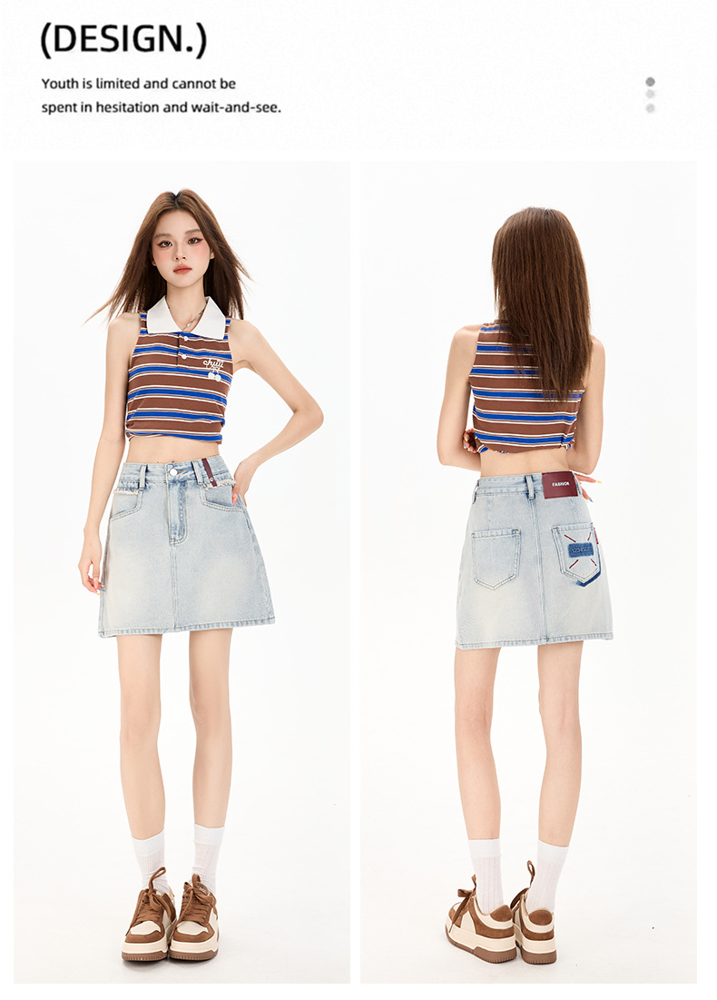 여성을 위한 대비색 데님 스커트 2025 여름 새로운 스타일 노출 방지 다용도 A라인 안감이 있는 슬리밍 힙 스커트 핫걸스토어 가기