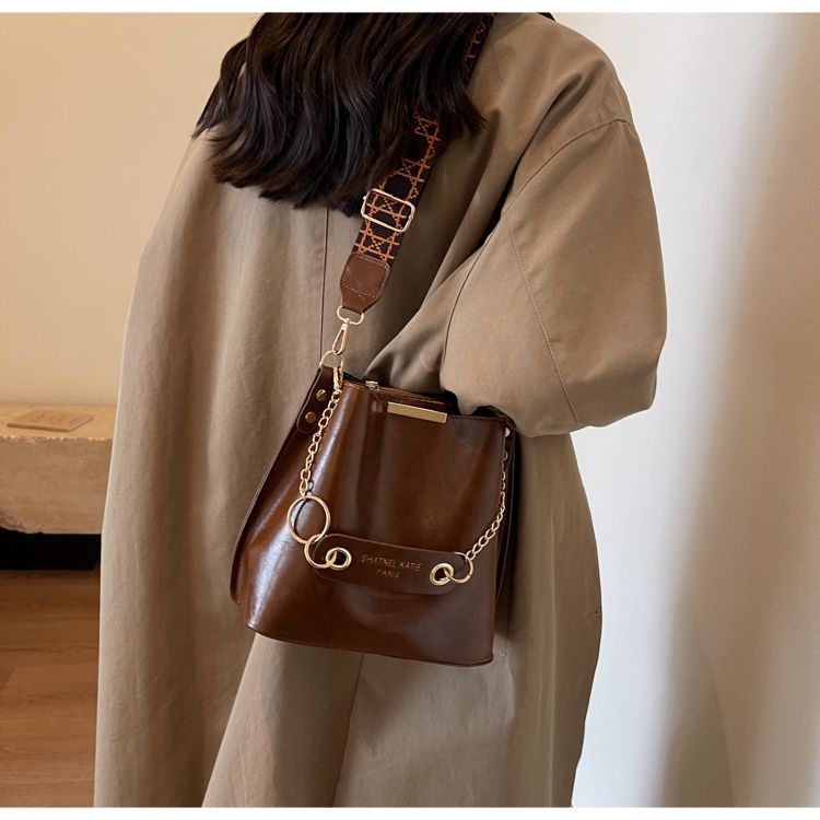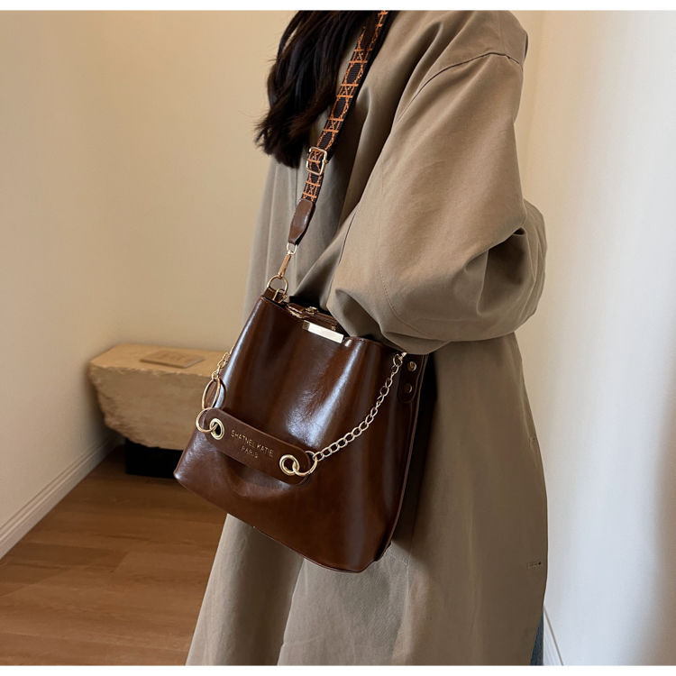 여성을위한 고급 질감 대용량 통근 가방 2023 새로운 가을, 겨울 복고풍 싱글 숄더 다용도 크로스 바디 백 버킷 백