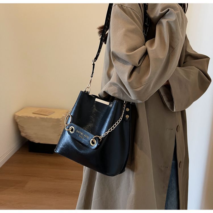 여성을위한 고급 질감 대용량 통근 가방 2023 새로운 가을, 겨울 복고풍 싱글 숄더 다용도 크로스 바디 백 버킷 백스토어 가기