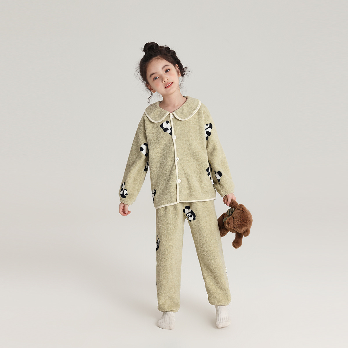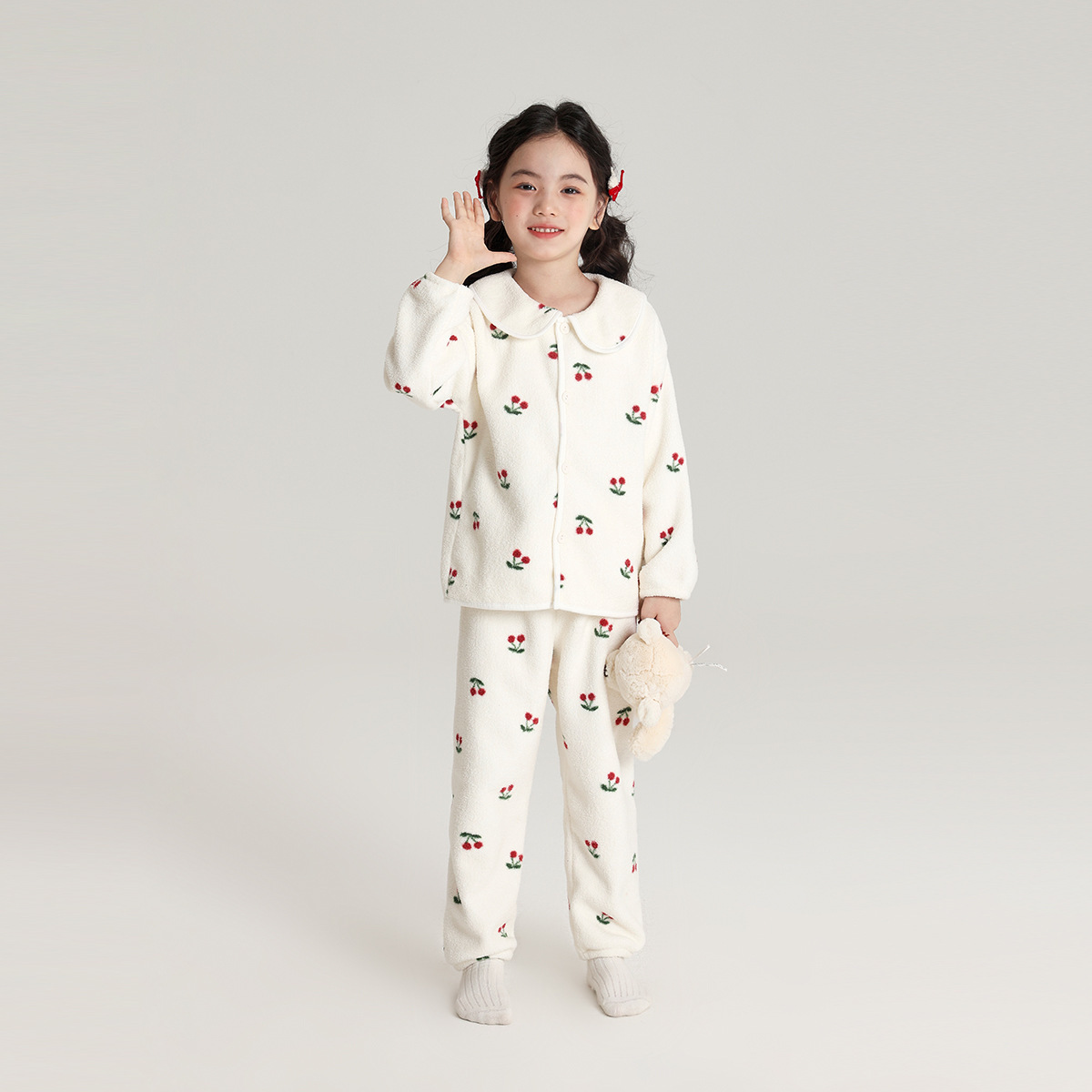 Momojia 여아 가정복 2024 가을 겨울 새로운 스타일 귀여운 피부 친화적인 어린이 잠옷 따뜻한 스노우 벨벳 가정복