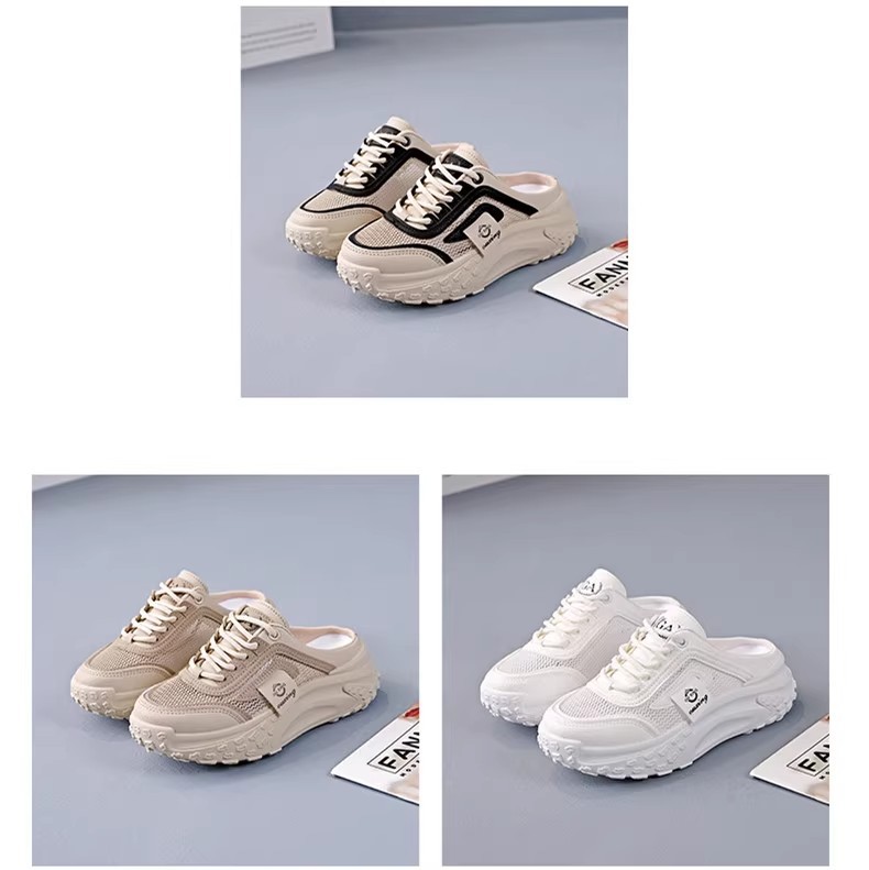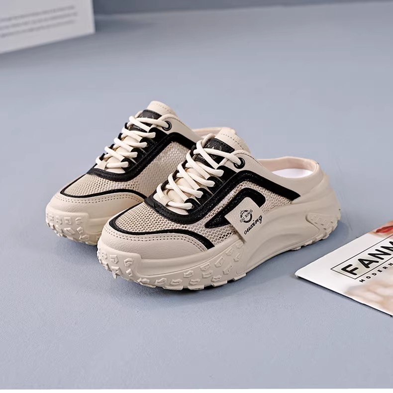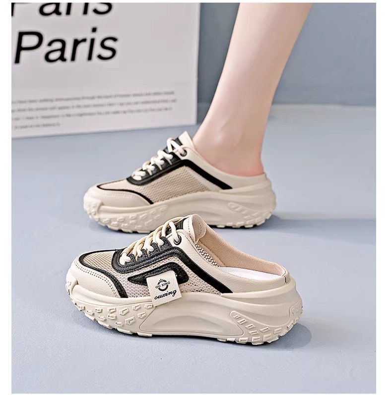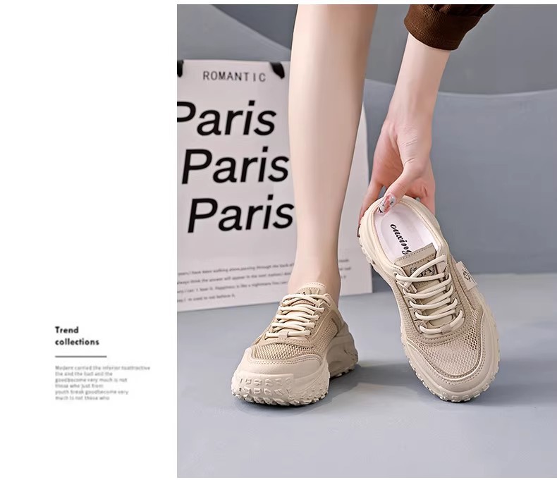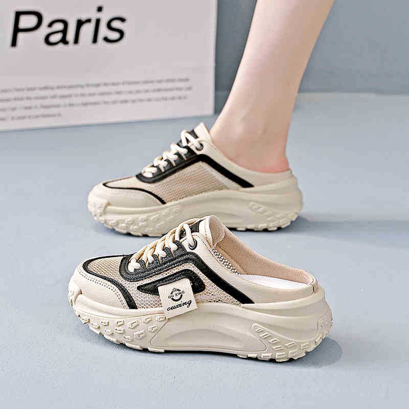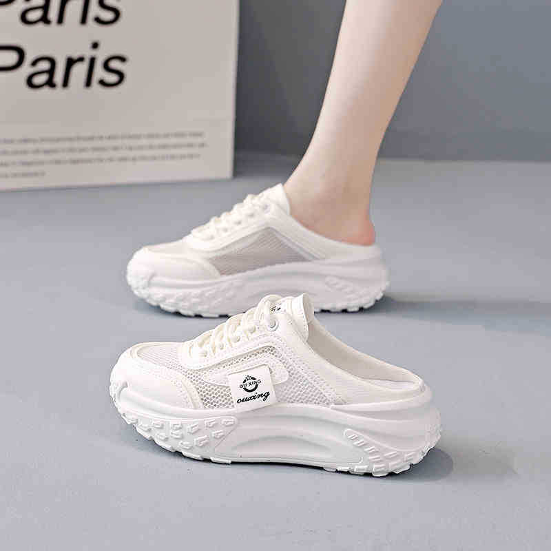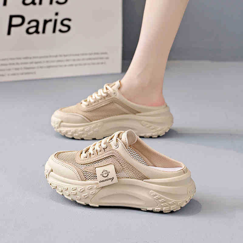 2025년 여름 신상 하프토 아빠 신발 여성용 메쉬 통기성 학생 캐주얼 신발 두꺼운 밑창 높이 증가 샌들스토어 가기