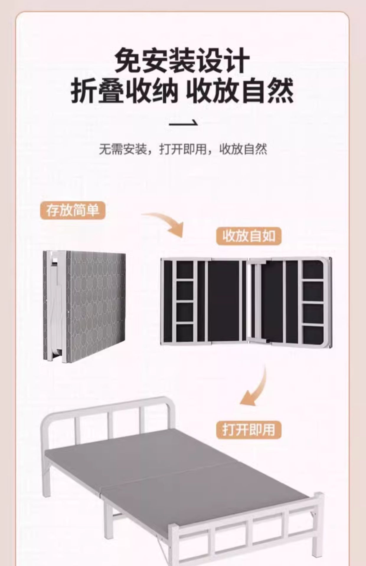 단철 침대 시트, 더블 침대, 가정용 두꺼운 철제 침대 프레임, 접이식 기숙사 침대, 임대 주택, 철제 프레임 J^스토어 가기
