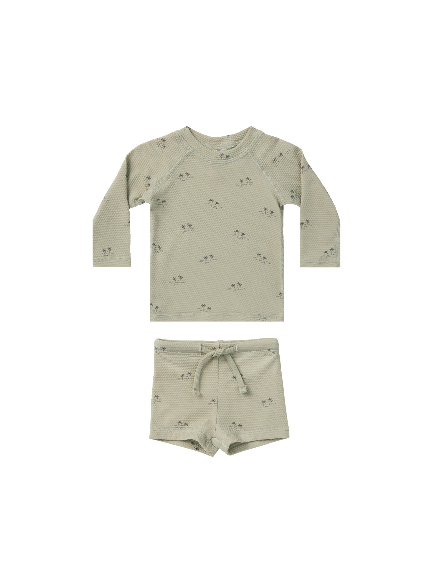 25ss 새로운 북유럽 스타일 여름 소년 인쇄 빠른 건조 태양 보호 스플릿 긴 소매 수영복 반바지 세트 수영복스토어 가기