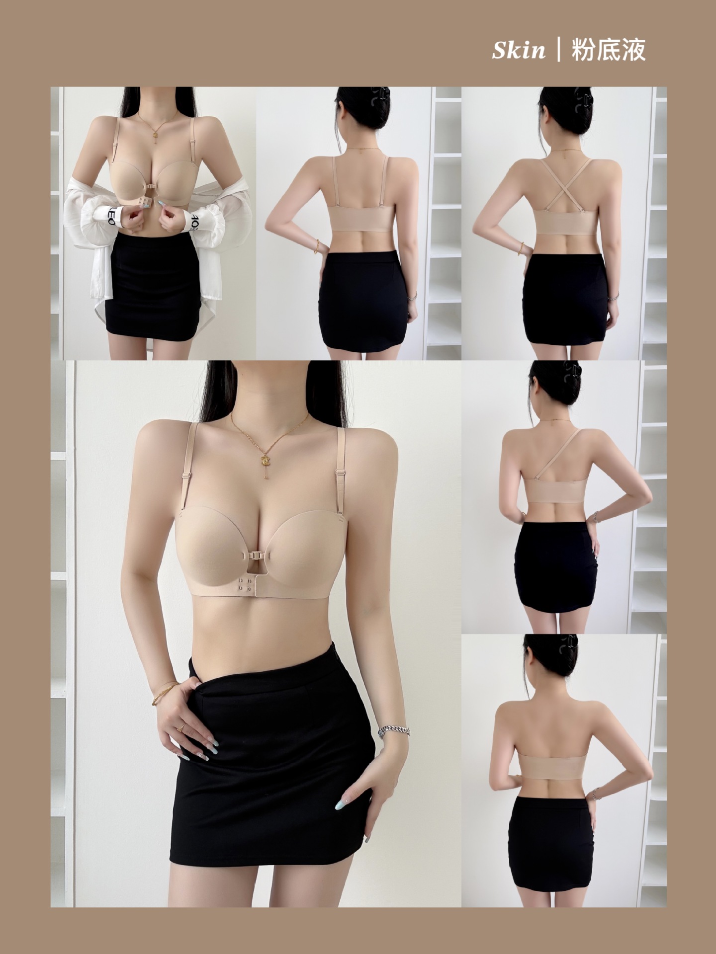 Xing의 같은 스타일 코튼 프론트 버튼 끈이 없는 리퀴드 파운데이션 보이지 않는 속옷 여성용 작은 유방 푸시업 미끄럼 방지 비 떨어지는 브래지어스토어 가기