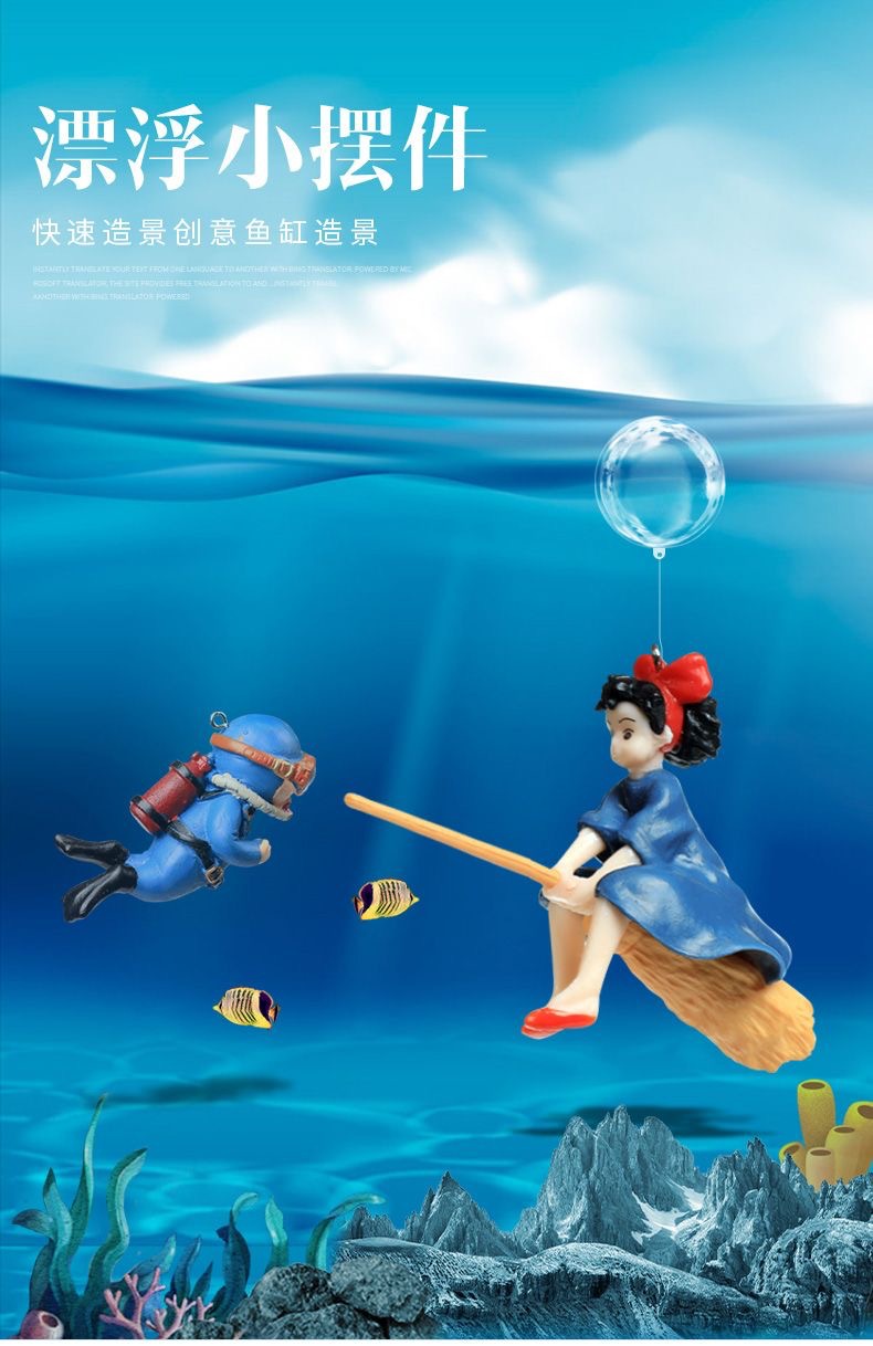 수조 조경 장식 작은 마녀 인어 수족관 플로팅 만화 블루 지방 다이버 작은 장식품 크리 에이 티브스토어 가기