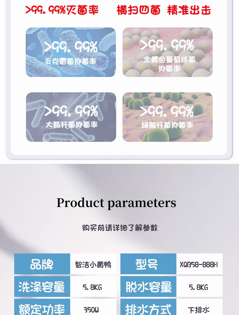 • 5.8KG 터치스크린 무오염 블루라이트 세척