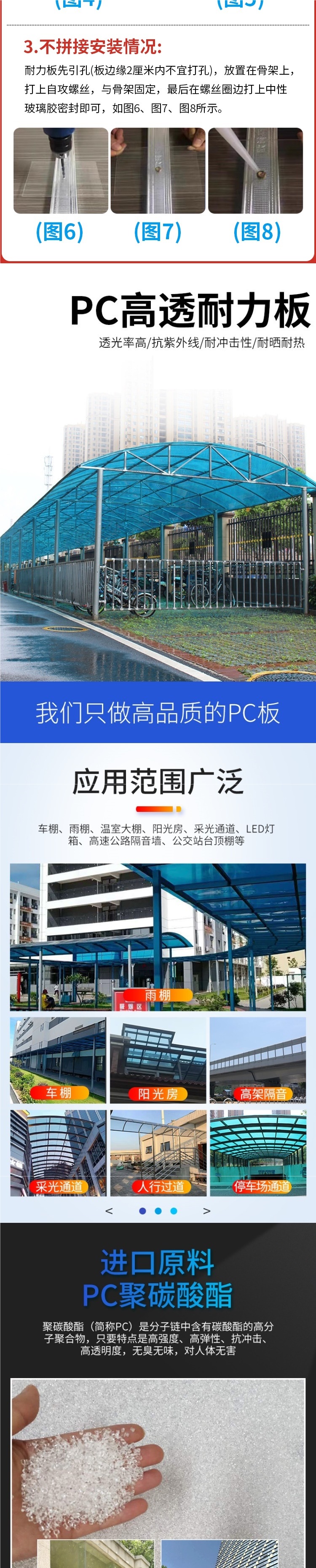 PC 내구성 패널 지붕 레인 스크린 새로운 차고 창고 두꺼운 태양 방실내 내구성 패널 태양 패널 투명 캐노피 플라스틱